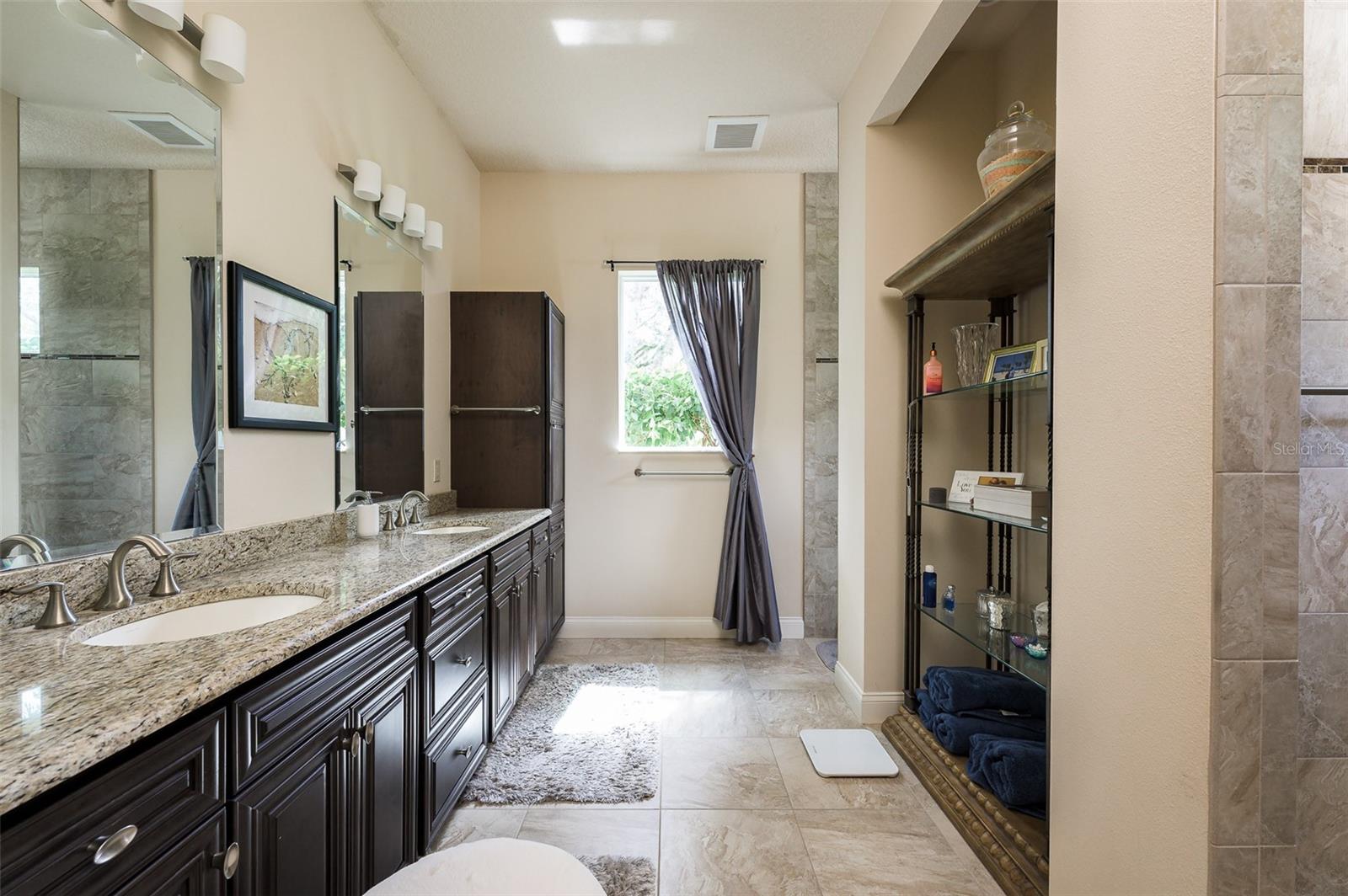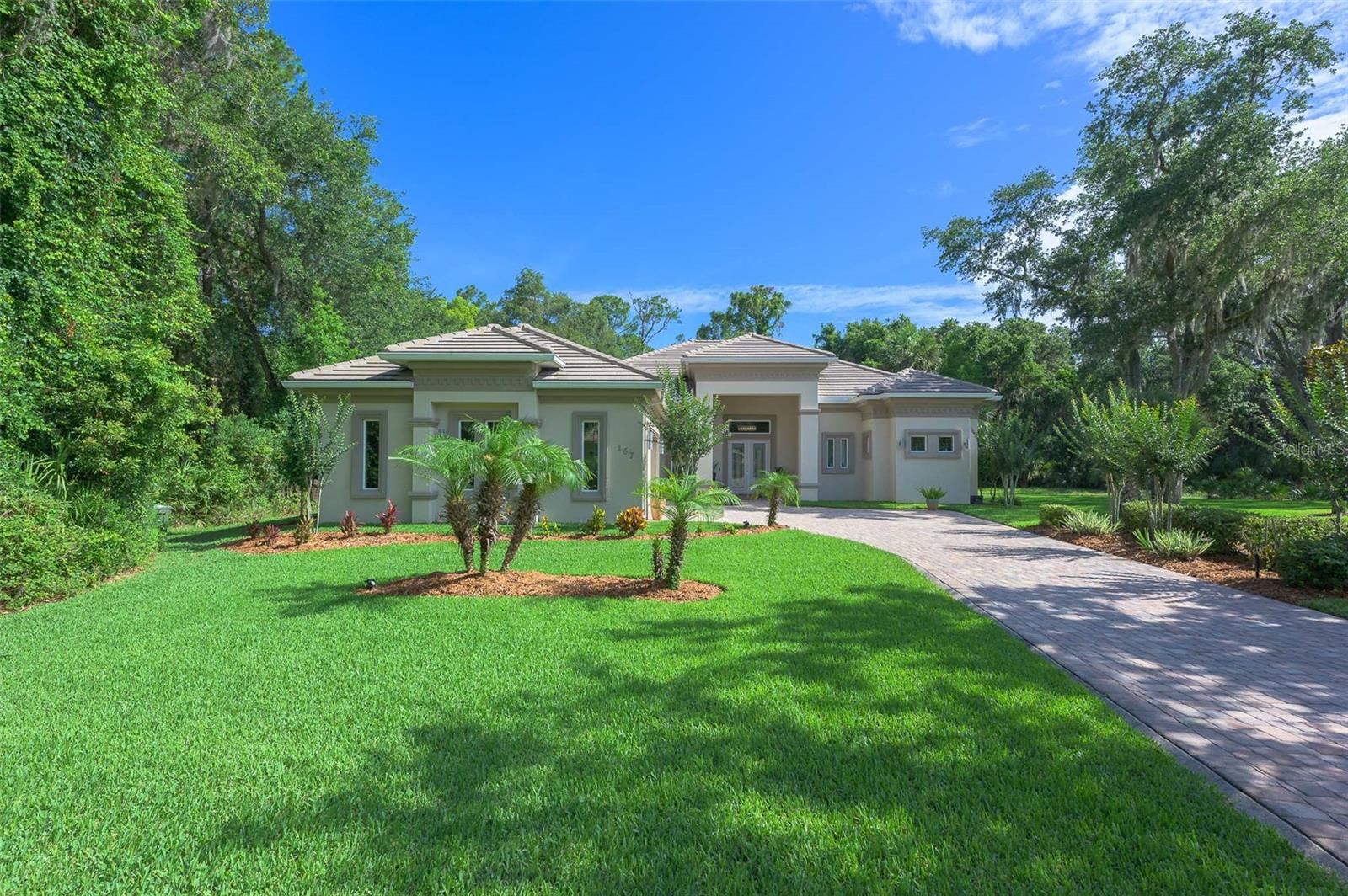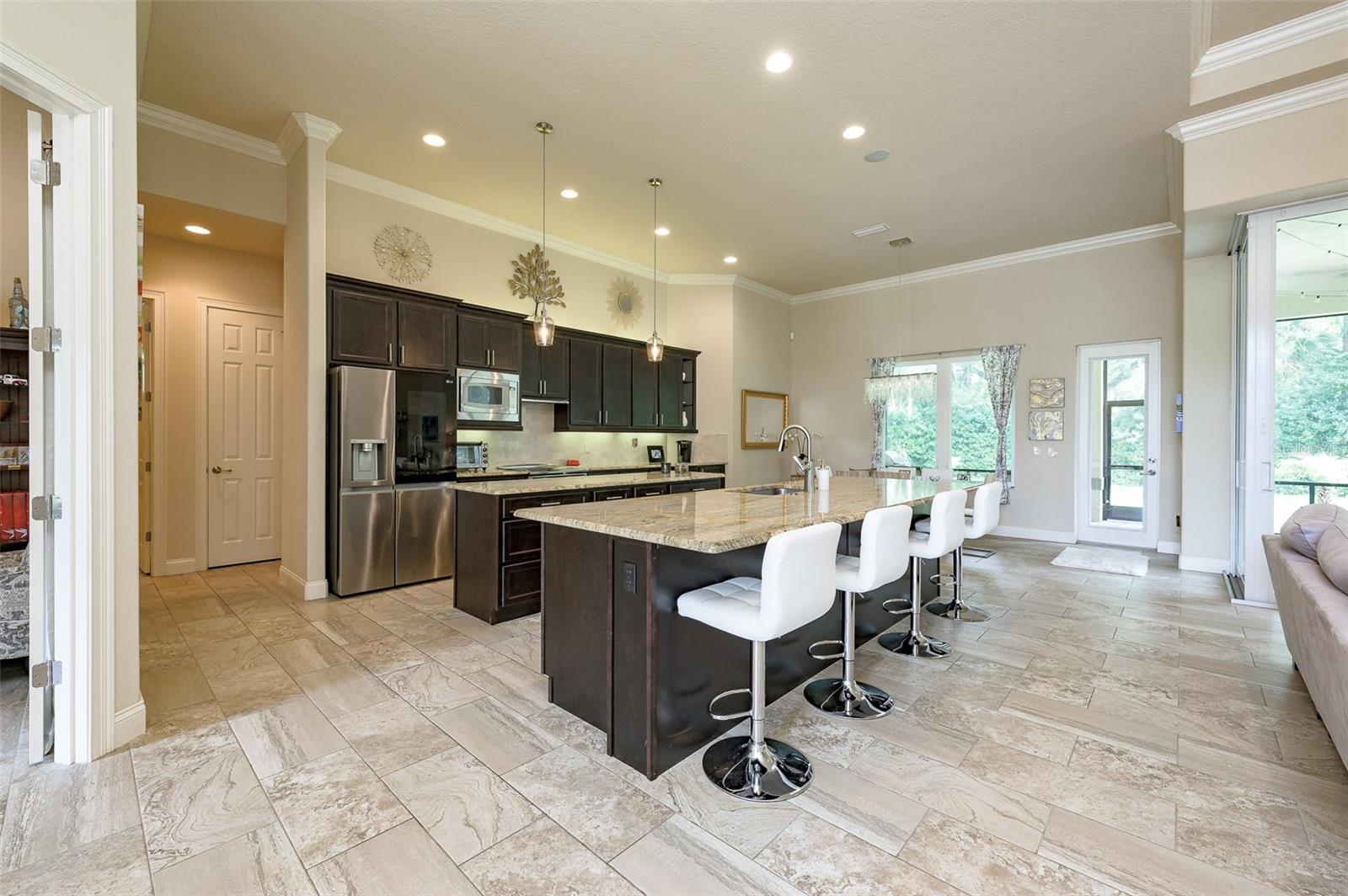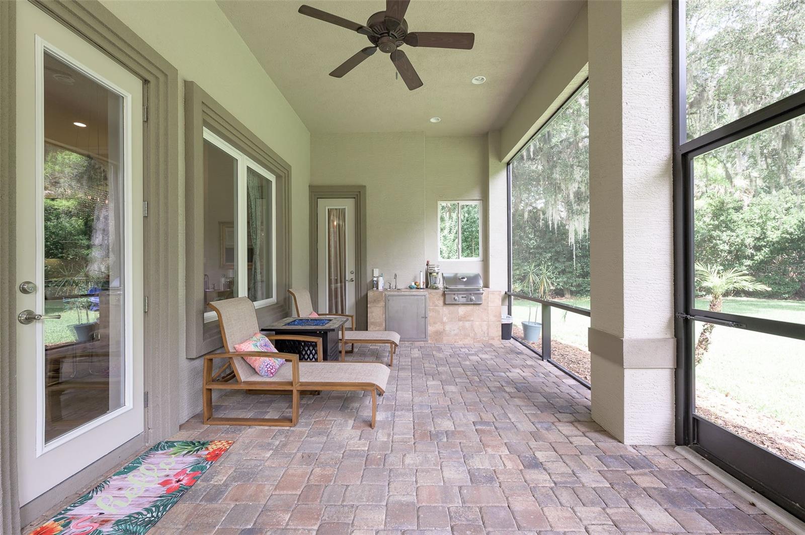 Have you ever wanted to own a custom home builder's model home that includes all the upgrades showcasing all the extras/options they are offering to customers who build with them? On one of the largest private lots (great for children or grandchildren to play in) that has been immaculately maintained in the sought-after estate home section of Grand Haven (Wild Oaks) is where this dream home is being offered by its only owner since the builder built and showcased it in 2015. This split bedroom concept with an open floor plan (kitchen, dining & living room) home is designed for gathering/entertaining family and/or friends and extending the living out to the screened in lanai by opening the nesting/pocket 8' tall sliders. The home has 3 spacious bedrooms complimented by 3 full bathrooms and is also equipped with a den/office. Come see for yourself! Every room features upgrades! Double island in the kitchen w/bar stool seating for 4+... Primary bedroom on-suite includes his & hers walk-in closets along with a walk around/through shower with multiple heads including a rain shower head from above... Solid Surface counters and windowsills throughout... Light fixture and fan upgrades throughout (many include remotes and/or dimmer switches)... Integrated surround speakers/sound system in the living room/kitchen/lanai... Oversized plank tile throughout... Screened in lanai (which may be your favorite retreat) has a built-in outdoor kitchen & grill and is complimented by a top-of-the-line jetted jacuzzi/hot tub (with transferable full service/coverage warranty)... Oversized garage can fit 3 cars if needed and is protected with a new hurricane strength garage door (decked in attic storage above garage as well)... Interior laundry room and separate interior HVAC/Utility room are also part of this fully loaded, with all the bells and whistles, custom builder model home. Schedule an appointment to come see it for yourself today!! Room Feature: Linen Closet In Bath (Primary Bedroom).