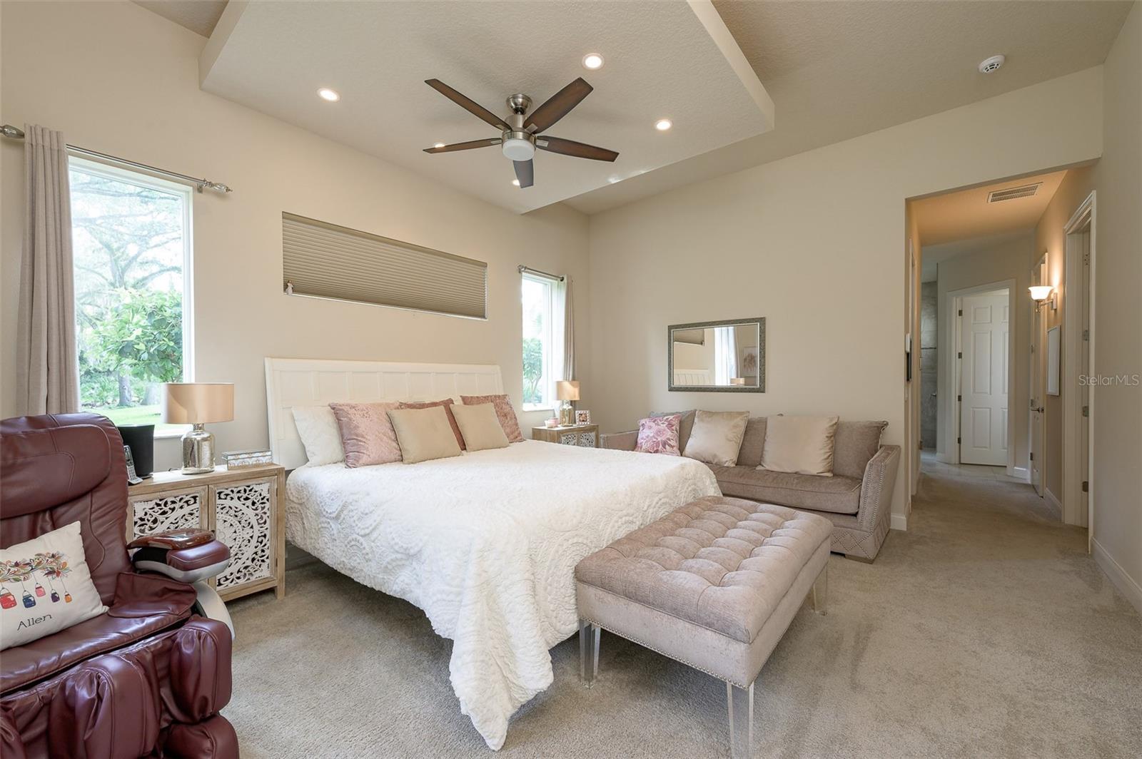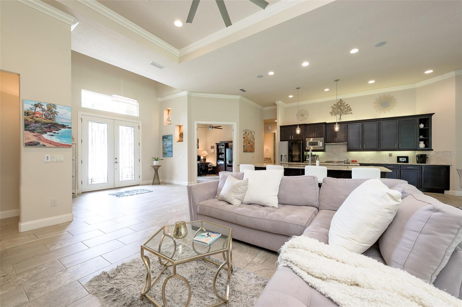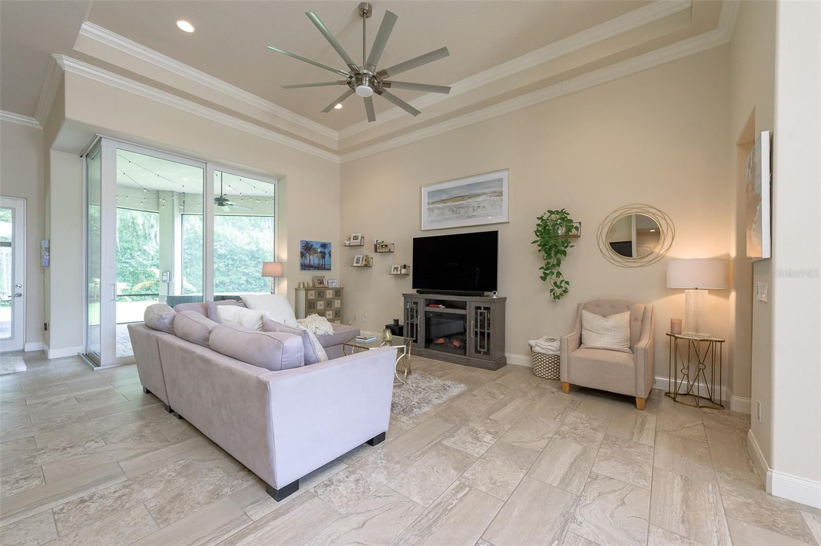 Have you ever wanted to own a custom home builder's model home that includes all the upgrades showcasing all the extras/options they are offering to customers who build with them? On one of the largest private lots (great for children or grandchildren to play in) that has been immaculately maintained in the sought-after estate home section of Grand Haven (Wild Oaks) is where this dream home is being offered by its only owner since the builder built and showcased it in 2015. This split bedroom concept with an open floor plan (kitchen, dining & living room) home is designed for gathering/entertaining family and/or friends and extending the living out to the screened in lanai by opening the nesting/pocket 8' tall sliders. The home has 3 spacious bedrooms complimented by 3 full bathrooms and is also equipped with a den/office. Come see for yourself! Every room features upgrades! Double island in the kitchen w/bar stool seating for 4+... Primary bedroom on-suite includes his & hers walk-in closets along with a walk around/through shower with multiple heads including a rain shower head from above... Solid Surface counters and windowsills throughout... Light fixture and fan upgrades throughout (many include remotes and/or dimmer switches)... Integrated surround speakers/sound system in the living room/kitchen/lanai... Oversized plank tile throughout... Screened in lanai (which may be your favorite retreat) has a built-in outdoor kitchen & grill and is complimented by a top-of-the-line jetted jacuzzi/hot tub (with transferable full service/coverage warranty)... Oversized garage can fit 3 cars if needed and is protected with a new hurricane strength garage door (decked in attic storage above garage as well)... Interior laundry room and separate interior HVAC/Utility room are also part of this fully loaded, with all the bells and whistles, custom builder model home. Schedule an appointment to come see it for yourself today!! Room Feature: Linen Closet In Bath (Primary Bedroom).