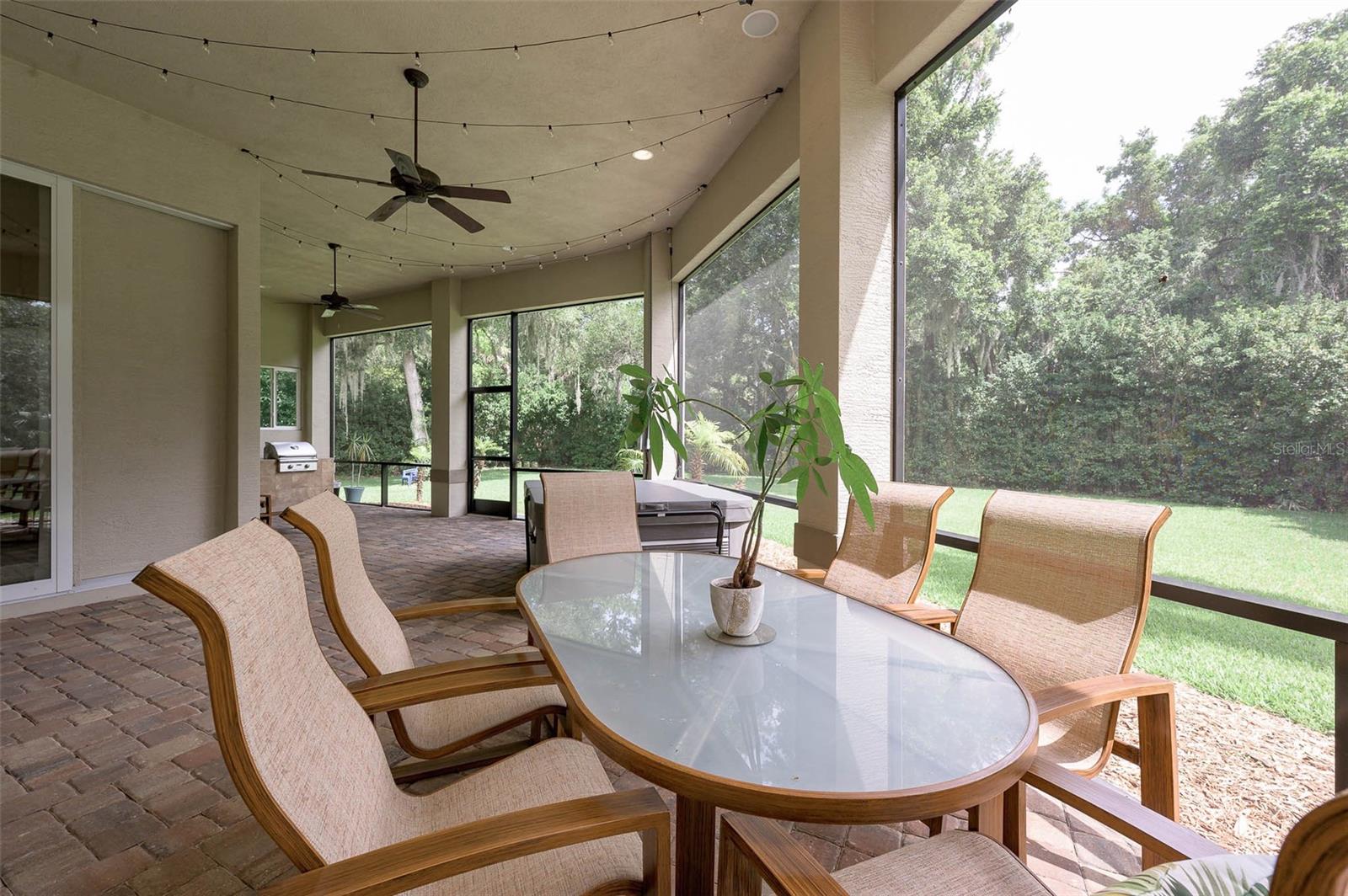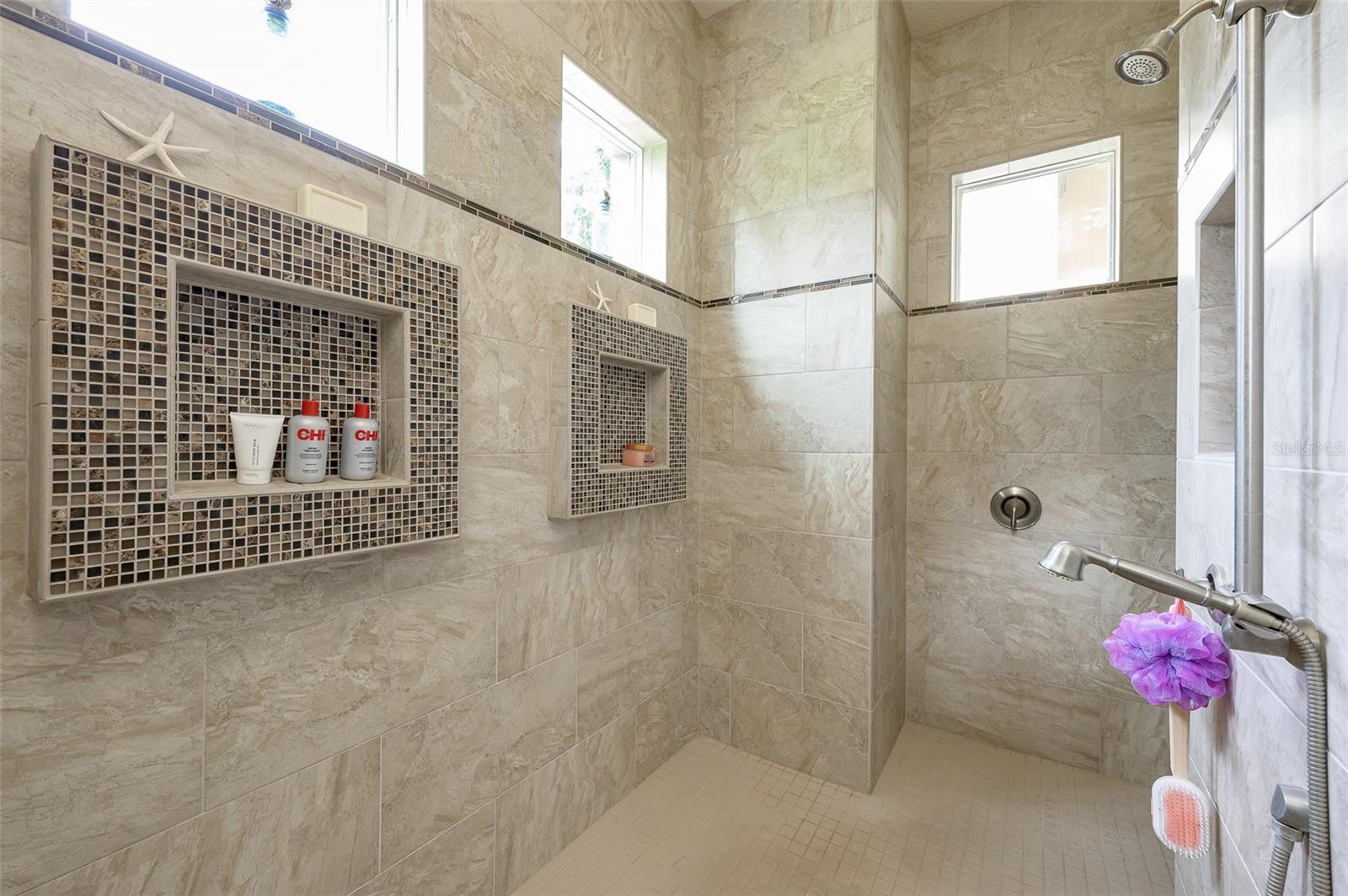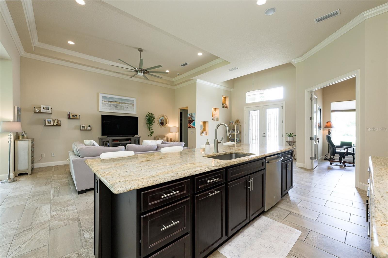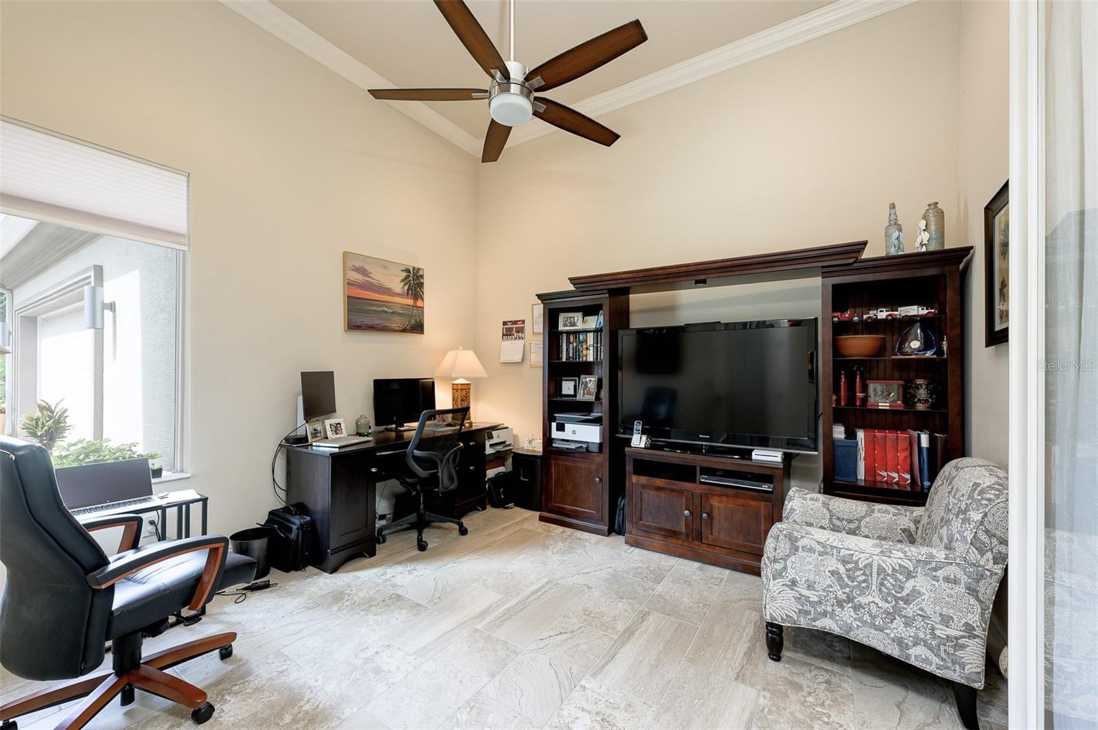 Have you ever wanted to own a custom home builder's model home that includes all the upgrades showcasing all the extras/options they are offering to customers who build with them? On one of the largest private lots (great for children or grandchildren to play in) that has been immaculately maintained in the sought-after estate home section of Grand Haven (Wild Oaks) is where this dream home is being offered by its only owner since the builder built and showcased it in 2015. This split bedroom concept with an open floor plan (kitchen, dining & living room) home is designed for gathering/entertaining family and/or friends and extending the living out to the screened in lanai by opening the nesting/pocket 8' tall sliders. The home has 3 spacious bedrooms complimented by 3 full bathrooms and is also equipped with a den/office. Come see for yourself! Every room features upgrades! Double island in the kitchen w/bar stool seating for 4+... Primary bedroom on-suite includes his & hers walk-in closets along with a walk around/through shower with multiple heads including a rain shower head from above... Solid Surface counters and windowsills throughout... Light fixture and fan upgrades throughout (many include remotes and/or dimmer switches)... Integrated surround speakers/sound system in the living room/kitchen/lanai... Oversized plank tile throughout... Screened in lanai (which may be your favorite retreat) has a built-in outdoor kitchen & grill and is complimented by a top-of-the-line jetted jacuzzi/hot tub (with transferable full service/coverage warranty)... Oversized garage can fit 3 cars if needed and is protected with a new hurricane strength garage door (decked in attic storage above garage as well)... Interior laundry room and separate interior HVAC/Utility room are also part of this fully loaded, with all the bells and whistles, custom builder model home. Schedule an appointment to come see it for yourself today!! Room Feature: Linen Closet In Bath (Primary Bedroom).