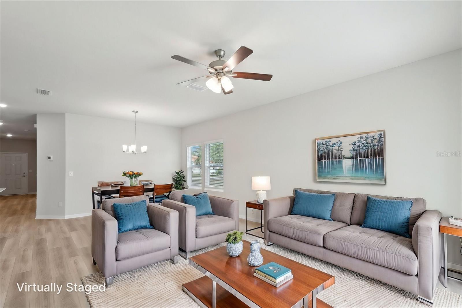 The Merritt offers the perfect balance of space, style, and comfort with its 4-bedroom, 2-bathroom layout and a large game room—ideal for movie nights, playtime, or a second living area. Designed with entertaining in mind, the kitchen features a built-in island, stainless steel appliances including a refrigerator, and upgraded level 2 cabinetry with crown molding and decorative hardware. Quartz countertops and a classic subway tile backsplash elevate the design in both the kitchen and bathrooms. Additional highlights include: Stone-accented front elevation for eye-catching curb appeal 9’ ceilings and extra windows that fill the home with natural light LED lighting throughout for energy efficiency Blinds on all operable windows for privacy and convenience Luxury laminate plank flooring throughout the main areas Plush carpeting in all bedrooms for cozy comfort Covered patio for relaxing or entertaining outdoors Whether you’re hosting guests or enjoying a quiet night in, The Merritt delivers flexible living, upgraded finishes, and a spacious layout designed to fit your lifestyle.