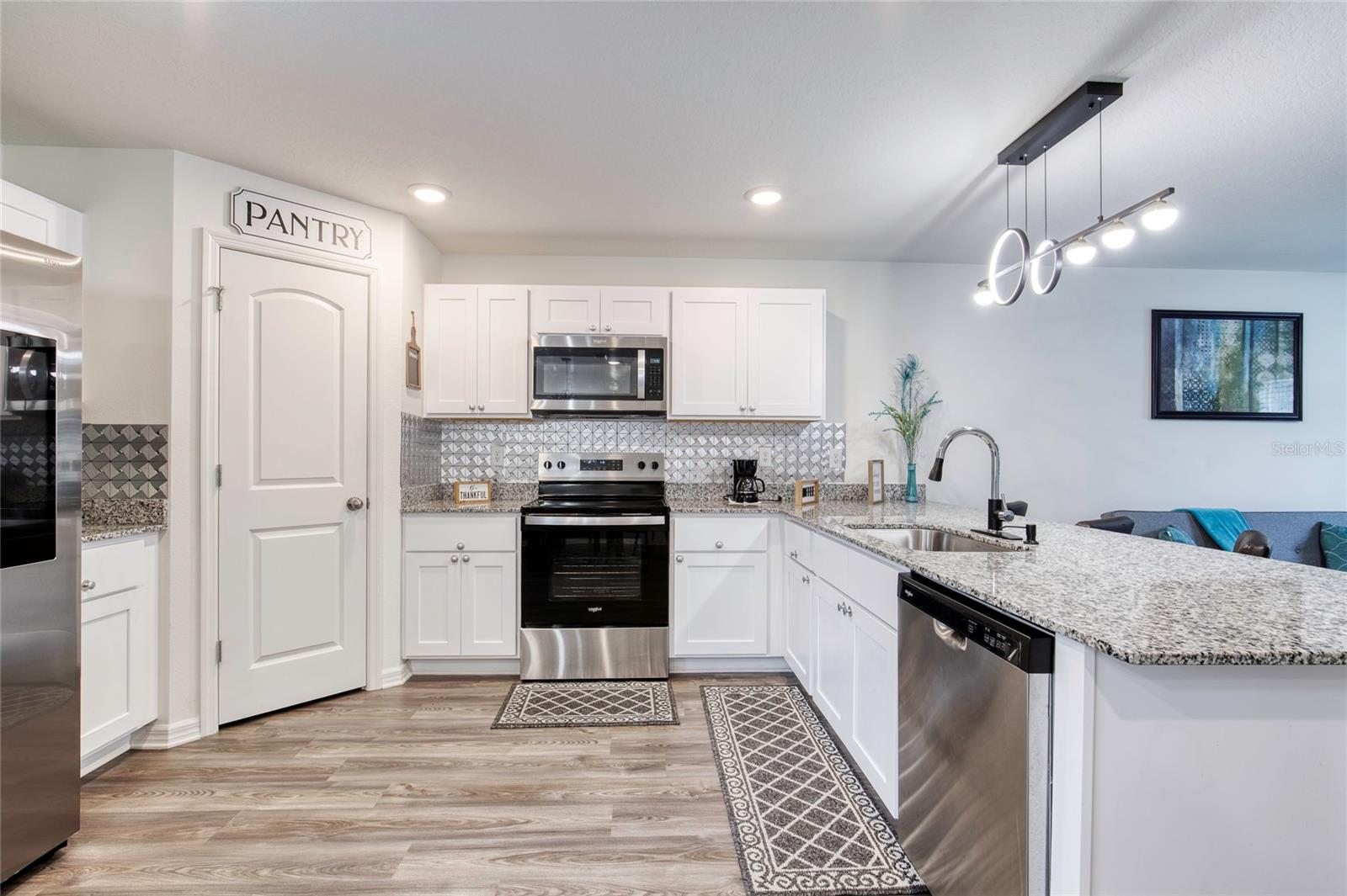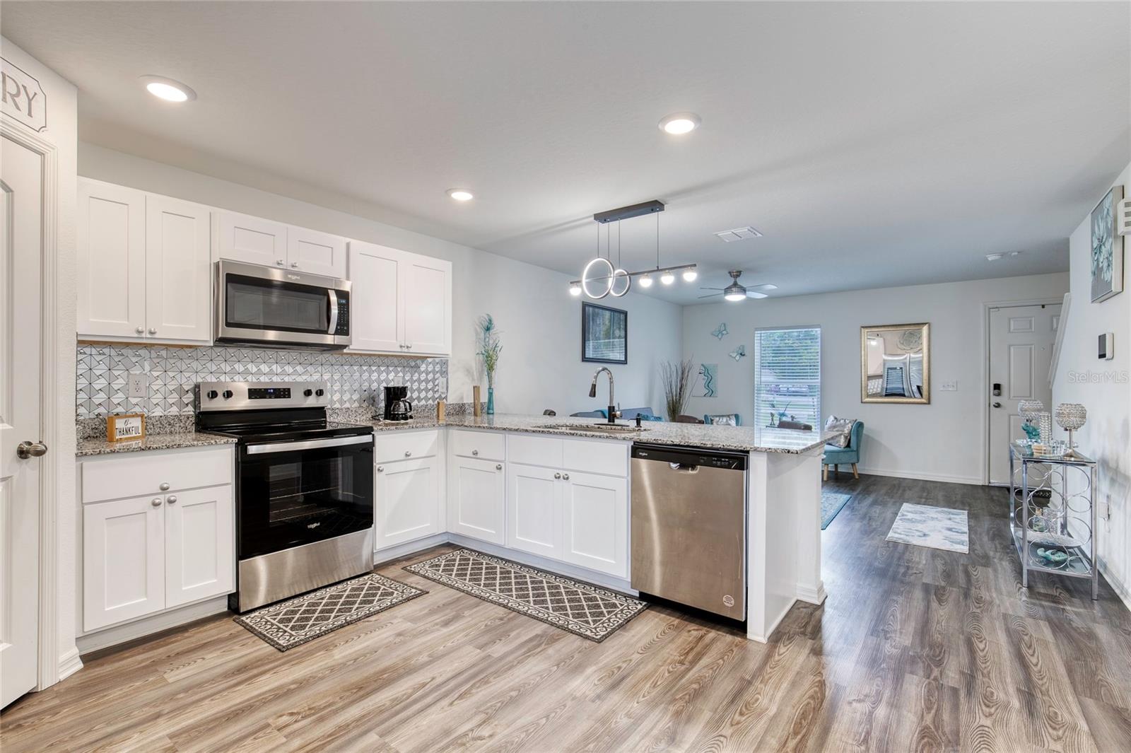 Tucked away on a quiet cul-de-sac in beautiful Palm Coast, this barely-lived-in two-story home feels fresh, modern, and move-in ready. With no HOA, no CDD, and not in a flood zone, it’s the perfect blend of comfort and convenience — just minutes from US-1, I-95, shopping, schools, and hospitals. Inside, you’ll find nearly 2,000 sq ft of living space with 4 bedrooms and 3 full baths. The open layout on the main floor offers a bright living area, dining space, and a stylish kitchen with white cabinets, granite countertops, stainless steel appliances, and a beautiful tile backsplash. There’s also a first-floor bedroom and full bath — perfect for guests, family, or a home office. Upstairs, you’ll find three additional bedrooms, including a spacious primary suite, two full baths, and a cozy loft that can be used as a second living area, playroom, or office. This home has been thoughtfully upgraded with modern lighting, ceiling fans, chandeliers, custom blinds on every window, a sleek pull-down kitchen faucet, and a glass shower door in the main bath. The staircase features subtle wall lighting for a warm touch, and the exterior shines with new blue shutters, an added garage light, and updated landscaping with decorative rock. A 10x8 shed provides plenty of extra storage, and there’s ample room in the backyard for a future pool. Best of all, the home comes with a one-year home warranty at closing, giving you added peace of mind as you settle in. Why wait to build when you can move right into this like-new home today? Come see 36 Kaywood Place — your next chapter starts here. Square footage received from tax rolls. All information recorded in the MLS intended to be accurate but cannot be guaranteed.