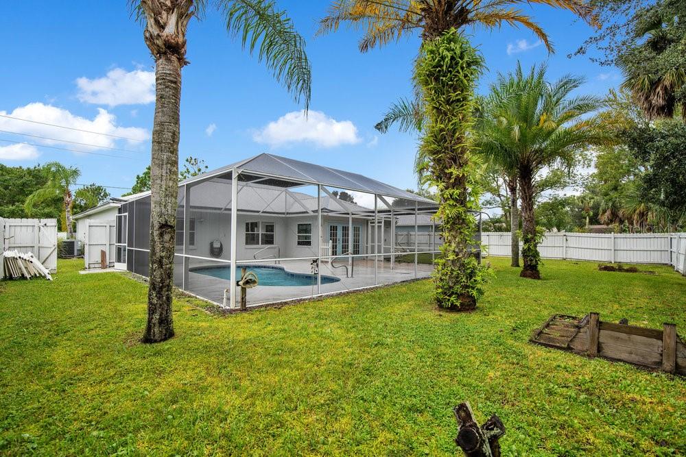 Welcome to 156 Bird of Paradise Drive, a beautifully maintained concrete block pool home that captures the best of Florida living. This spacious 4-bedroom, 2.5-bath residence offers a perfect blend of quality construction, thoughtful updates, and comfortable style throughout. Situated on a fully fenced lot, the property features a large screened-in pool and patio area—ideal for entertaining or relaxing in complete privacy. A circular driveway provides convenient access and enhances curb appeal. Significant upgrades add long-term value and peace of mind, including a metal roof (2020), refurbished pool cage (2025), saltwater pool conversion with resurfaced finish and color-changing LED lighting, and solar panels for energy-efficient pool heating. Inside, the open-concept great room flows seamlessly into the kitchen, creating an inviting space for gatherings. The kitchen features solid wood cabinetry, granite countertops, and stainless steel appliances, with ample space to add a center island or cozy bistro table. Throughout the home, you’ll find updated lighting, new ceiling fans, and luxury vinyl plank flooring in the sunroom, combining comfort with functionality. Guest bath has been tastefully remodeled with ADA-compliant handles, new faucets, and upgraded exhaust fans. Additional enhancements include a Carrier A/C system (2024), garage ventilation fan, pantry door spice rack, and custom master closet system, all reflecting true pride of ownership. Whether hosting friends by the pool or enjoying quiet evenings under the screened lanai, this home offers the perfect balance of modern comfort, enduring craftsmanship, and easy Florida living—move-in ready and waiting for you.