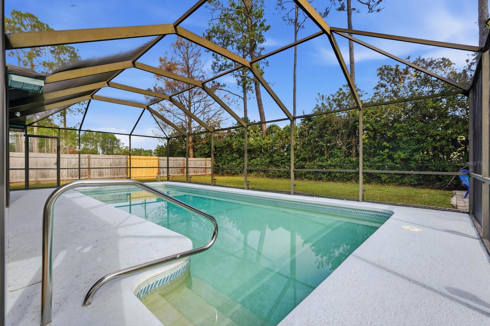 Charming Palm Coast Pool Home Welcome to this beautifully maintained 3-bedroom, 2-bath Palm Coast pool home, ideally situated on a corner lot with a fenced backyard designed for Florida living. This home offers peace of mind with thoughtful upgrades and major improvements, including a new roof (2025), new lanai roof (2021), HVAC (2019 with regular maintenance), new windows (2020), and hot water heater (2023). Inside, enjoy an open floor plan connecting the kitchen, dining, and living areas—perfect for both everyday living and entertaining. The kitchen features bar seating for casual dining. The primary suite offers an ensuite bath and a walk-in closet, providing comfort and functionality. The highlight of the home is the additional living space, featuring vaulted ceilings, skylights, and a stone-bordered fireplace, all overlooking the pool. This versatile area is ideal for a den, playroom, or home office and opens through French doors to a private backyard oasis with a screened-in pool and lanai perfect for relaxing or entertaining year-round. Enjoy an exceptional location within walking distance to Ralph Carter Park, and just minutes from the Southern Recreation Center offering pickleball, tennis, and more, as well as the Flagler County Fairgrounds and Flagler Executive Airport. Convenient access to US-1, I-95, and major shopping centers makes this home ideal for commuters and everyday convenience.