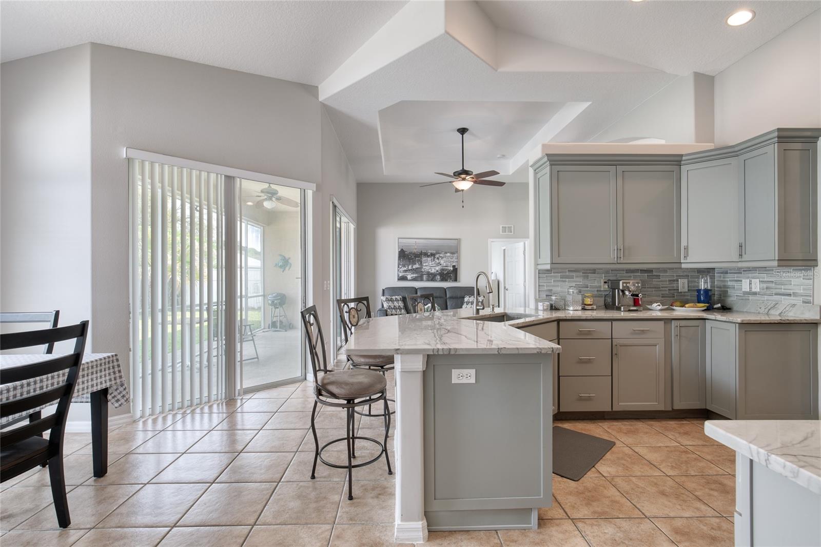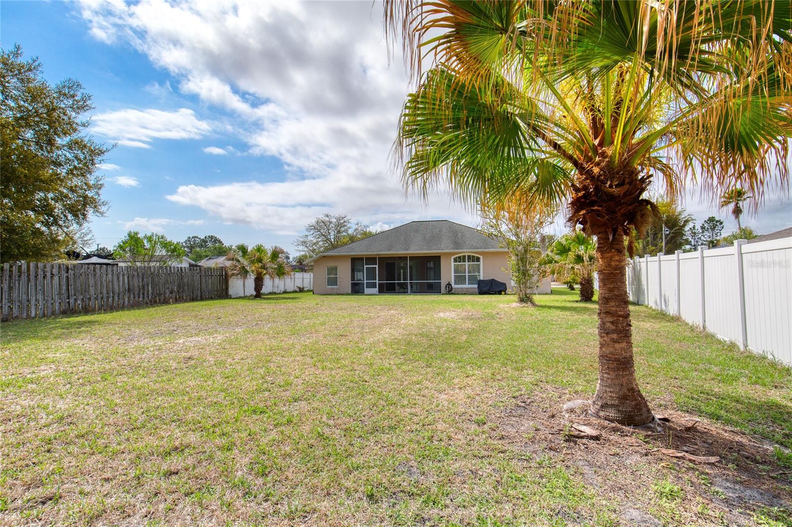Immaculate, move-in ready custom home in the highly desirable Palm Harbor neighborhood of Palm Coast -- set on an oversized lot with plenty of room to add a pool or create your dream outdoor living space. Step inside to an elegant columned entry and bright open floor plan with volume and tray ceilings, arched windows and doorways, and a formal dining room. The split bedroom layout offers privacy: 3 bedrooms, 2 baths, a spacious living room, breakfast nook and an updated kitchen with new stunning granite countertops. The primary suite is a relaxing retreat w/ 2 walk-in closets, a spa-like bath featuring separate vanities, garden tub and a tiled walk-in shower. Outdoor living is effortless -- sliders from the living room & primary suite open to a covered screened porch, perfect for morning coffee or evening sunsets. Practical upgrades include a sprinkler system on a well, epoxy floors in garage and back porch, termite baiting system, and gutters w/ rain diverting system to back yard.