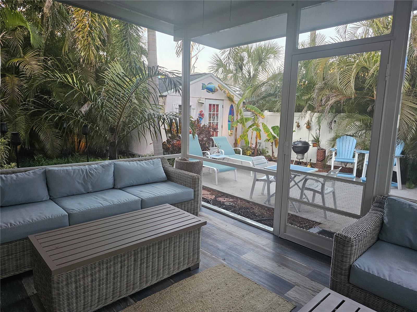 Welcome to your dream home in the heart of Ozona, the golf cart friendly, highly sought-after coastal community in Palm Harbor! This 3 bedroom, 3 bath home with a bonus room, man shed/office and additional bath SUFFERED NO DAMAGE from the hurricanes, giving homeowners valuable peace of mind in a coastal setting! The updated kitchen features a butcher block island, newer appliances and plenty of storage with upper cabinets to the ceiling. This home also includes updated bathrooms, a laundry room, an updated fireplace, an open family room/dining room/kitchen combo and luxury vinyl tile throughout. Step outside to the large, screened Florida room that overlooks the private, tropical backyard which is home to nine different types of palm trees. A fence encloses the property which includes a swim spa, and a finished shed with a bath that can be used as a pool shed, office or man cave. There is also an additional shed for storage along one side of the home as well as a storage area in the garage. The backyard boasts a large concrete area for lounging and entertaining. Ozona has no deed restrictions, no HOA fees and no rental restrictions. Drive your golf cart or walk to nearby restaurants, bars, the post office, downtown Palm Harbor, and waterfront piers to enjoy Florida’s beautiful sunsets. The Pinellas Trail across the street is perfect for bike rides and leisurely strolls, as is the Dunedin Causeway leading to the Honeymoon Island State Park entrance just three miles away. With Publix just a mile away, it is an easy walk to pick up a few groceries while getting exercise. The Ozona community is zoned for the highly desired Palm Harbor University High School, Palm Harbor Middle School and Ozona Elementary. The very quaint village of Ozona is one of Florida's oldest and most unique coastal communities and a wonderful place to call home.