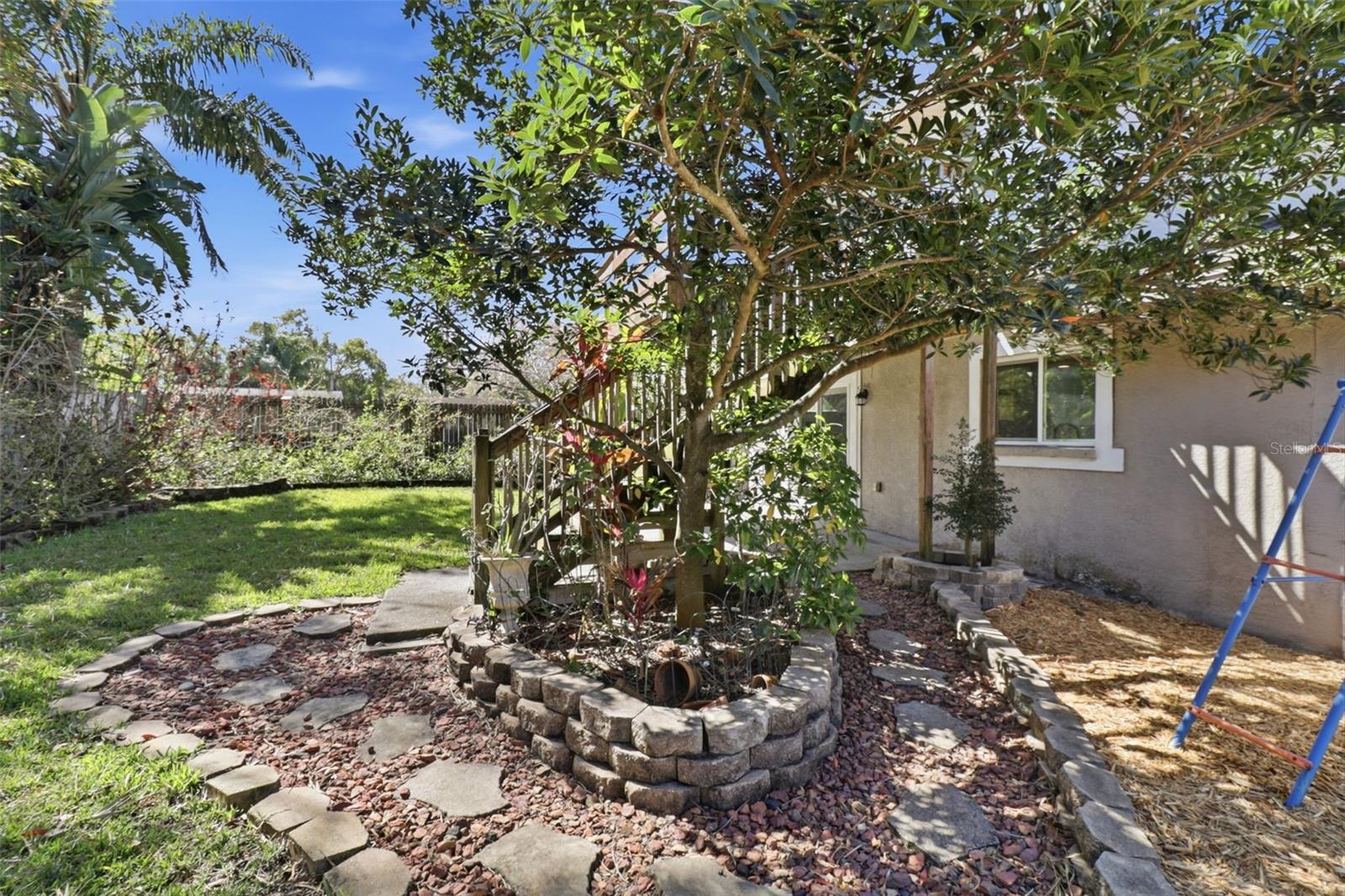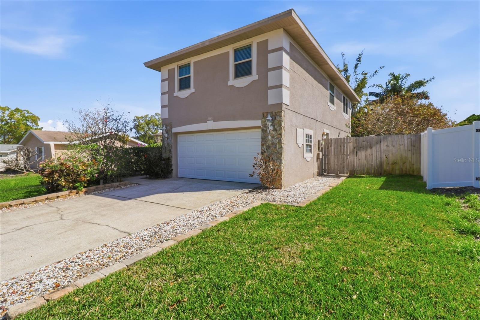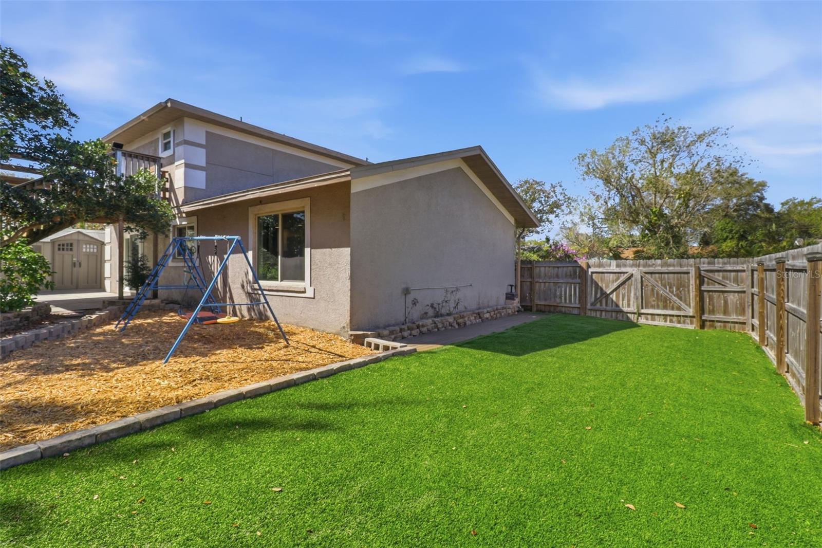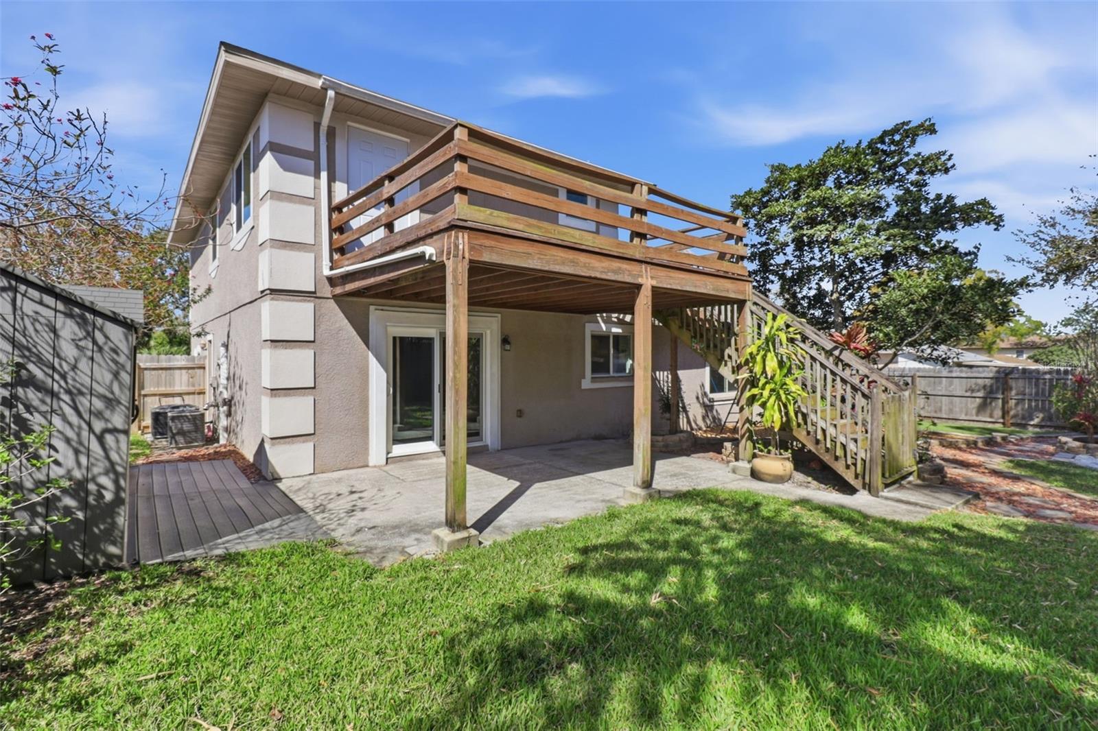 Bold, beautiful, and wonderfully positioned between the bustle and the beaches, this two-story home offers space, comfort, and flexibility in a no-HOA community. Featuring 4 bedrooms and 2.5 bathrooms, the property is also located outside evacuation zones with no known history of flooding for added peace of mind. A generator backflow hookup adds practical convenience along with impact-resistant windows, back sliding doors and a newer garage door! All bedrooms are located upstairs, including the primary suite, which features new LVP flooring, an updated walk-in closet, an en suite bathroom, and it's own upper-level deck—great for morning coffee or relaxing under the stars. The additional bedrooms have plush carpeting, thoughtful comfort for family, guests, or a home office. All three bathrooms have been recently renovated. Downstairs, brand-new flooring flows through the open living, kitchen, and dining areas, filled with natural light AND the downstairs has all new paint! The living room is bright and inviting with large bookend windows, while the dining area offers its own dedicated space for gatherings. Step outside to a fully fenced backyard designed for versatility and enjoyment. A turf-lined side yard provides a play-friendly space, while a separate grassy could be for pets. The firepit is a scene set for entertaining guests! Additional highlights include: two AC units for zoned climate control, a spacious two-car garage, an enclosed laundry room with outdoor access, and a charming screened front porch that adds both privacy and curb appeal. This thoughtfully maintained home combines modern updates, flexible outdoor living, and coastal proximity—all without HOA restrictions.