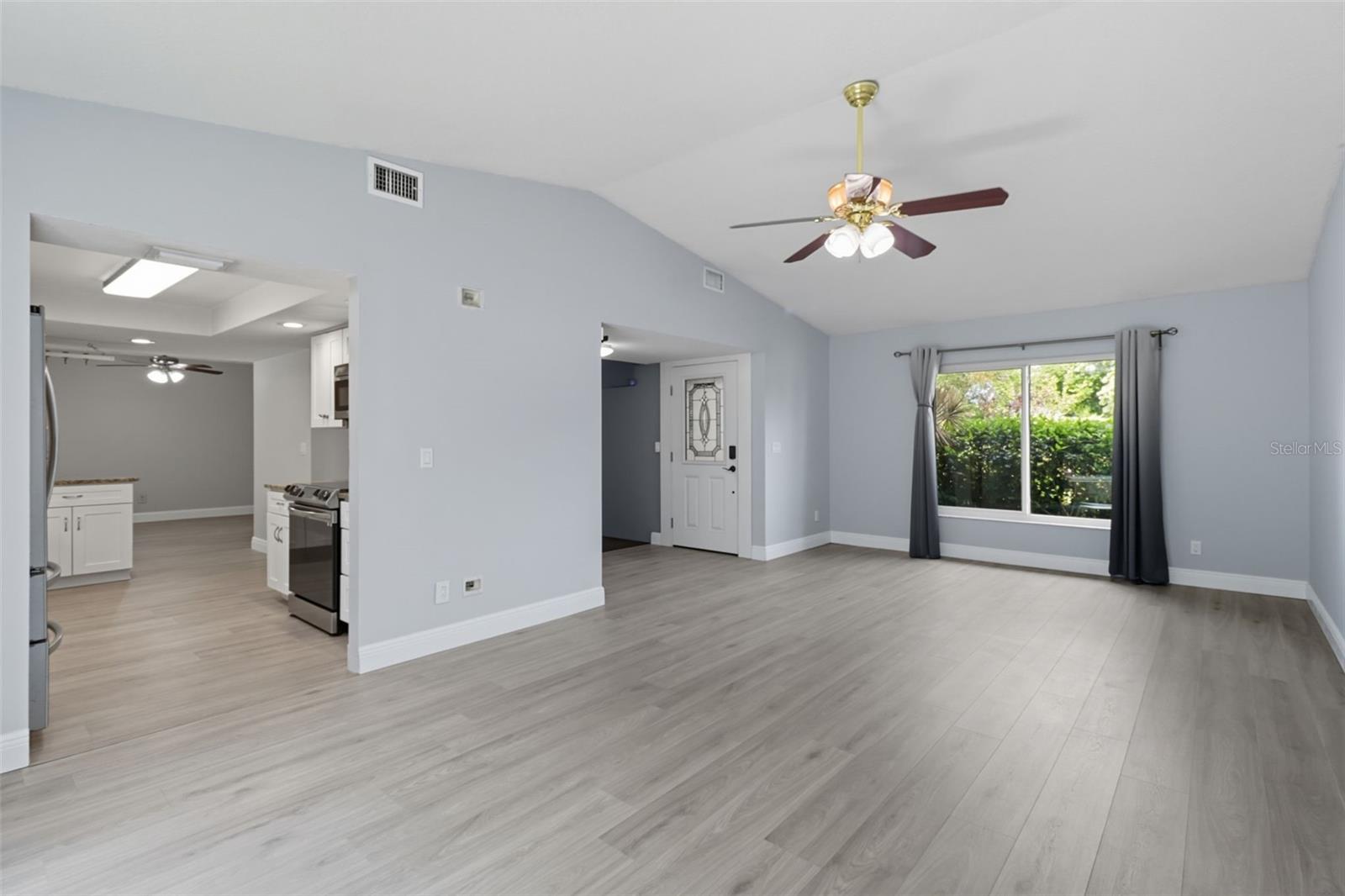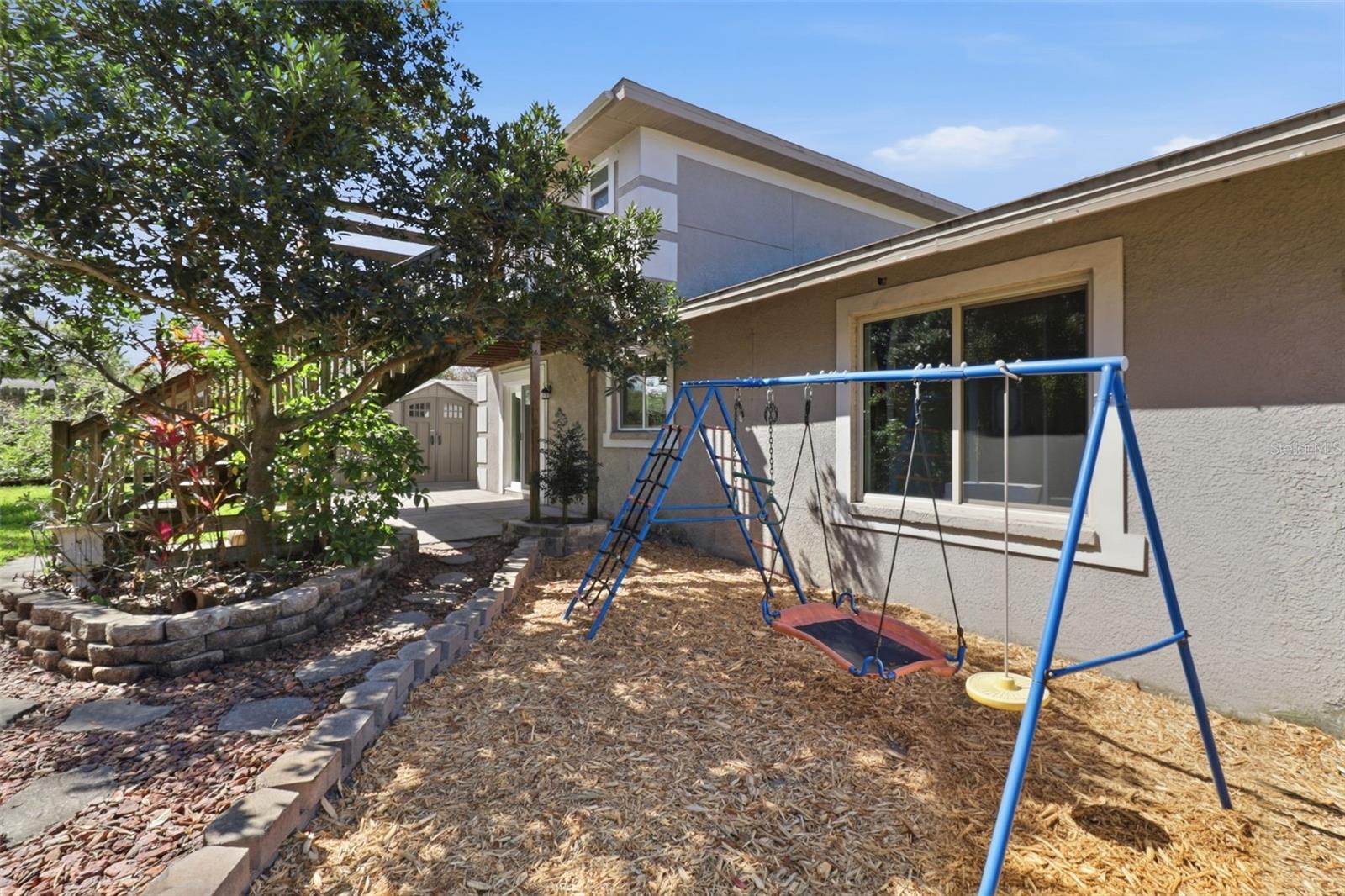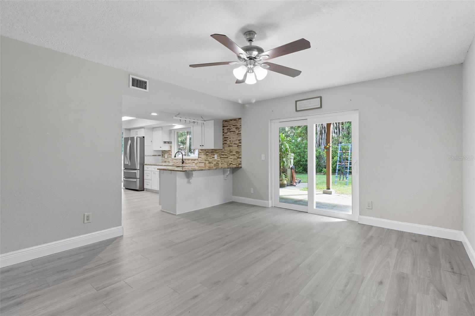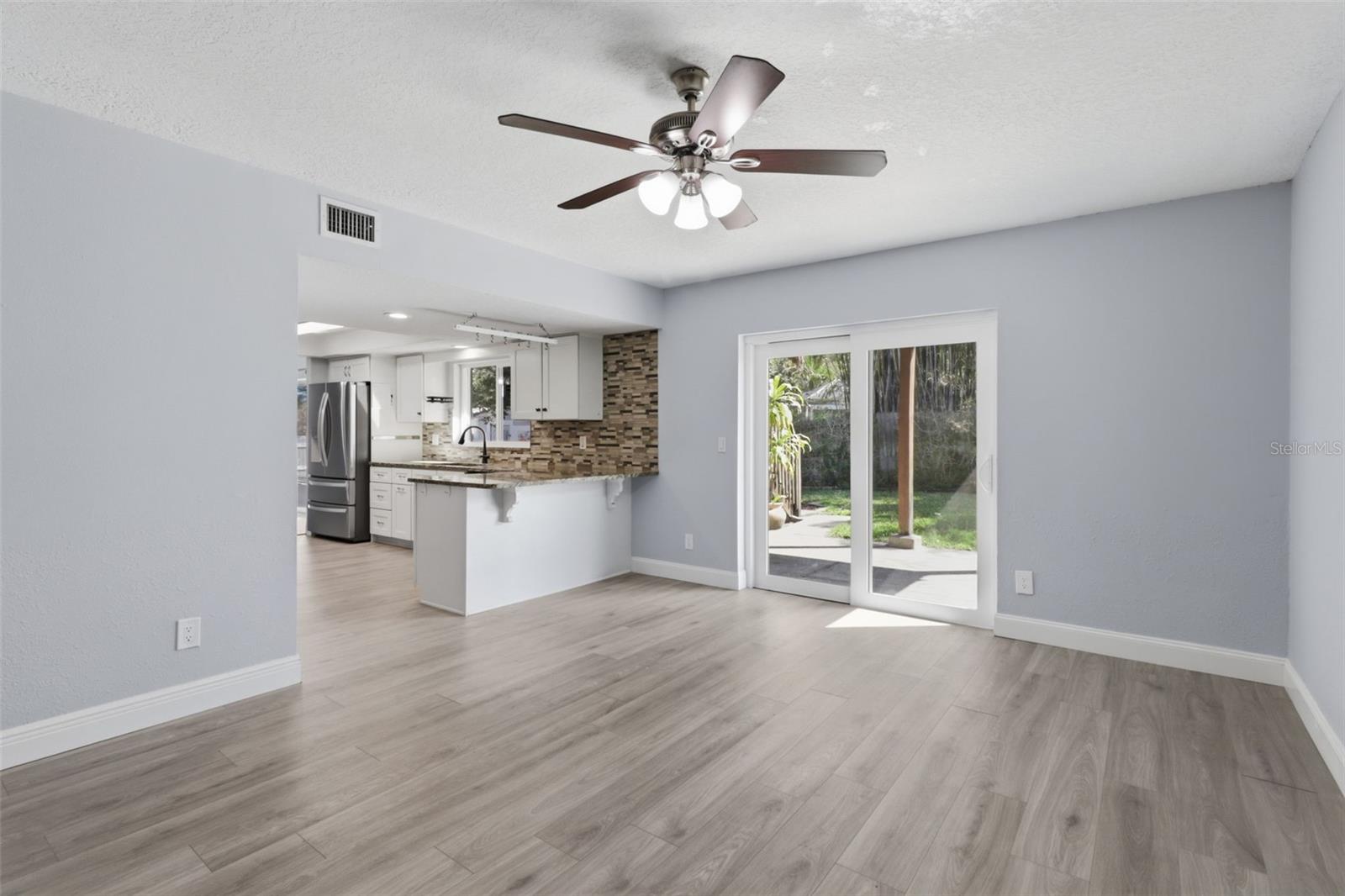 Bold, beautiful, and wonderfully positioned between the bustle and the beaches, this two-story home offers space, comfort, and flexibility in a no-HOA community. Featuring 4 bedrooms and 2.5 bathrooms, the property is also located outside evacuation zones with no known history of flooding for added peace of mind. A generator backflow hookup adds practical convenience along with impact-resistant windows, back sliding doors and a newer garage door! All bedrooms are located upstairs, including the primary suite, which features new LVP flooring, an updated walk-in closet, an en suite bathroom, and it's own upper-level deck—great for morning coffee or relaxing under the stars. The additional bedrooms have plush carpeting, thoughtful comfort for family, guests, or a home office. All three bathrooms have been recently renovated. Downstairs, brand-new flooring flows through the open living, kitchen, and dining areas, filled with natural light AND the downstairs has all new paint! The living room is bright and inviting with large bookend windows, while the dining area offers its own dedicated space for gatherings. Step outside to a fully fenced backyard designed for versatility and enjoyment. A turf-lined side yard provides a play-friendly space, while a separate grassy could be for pets. The firepit is a scene set for entertaining guests! Additional highlights include: two AC units for zoned climate control, a spacious two-car garage, an enclosed laundry room with outdoor access, and a charming screened front porch that adds both privacy and curb appeal. This thoughtfully maintained home combines modern updates, flexible outdoor living, and coastal proximity—all without HOA restrictions.
