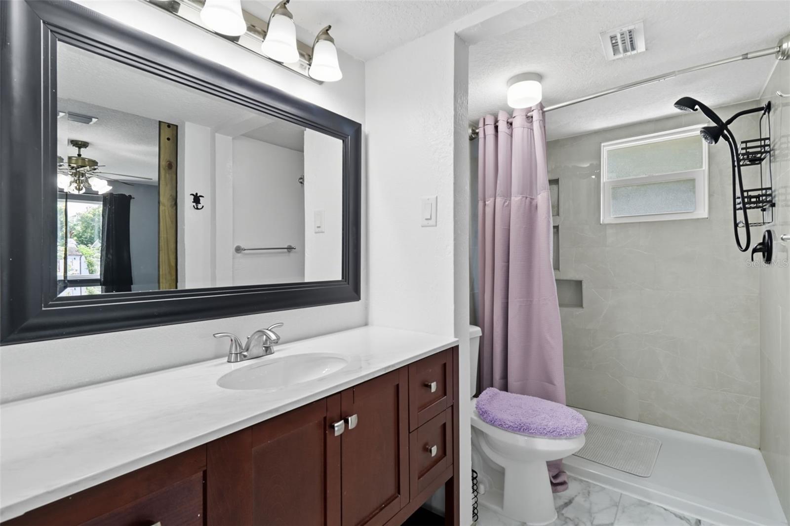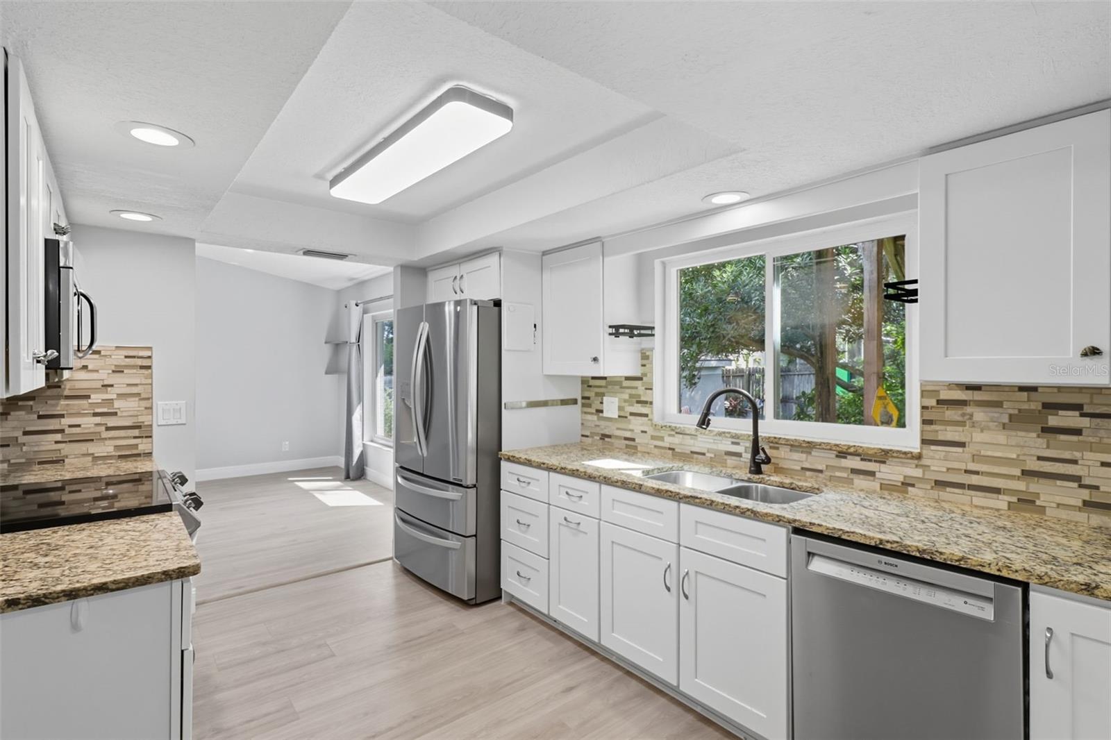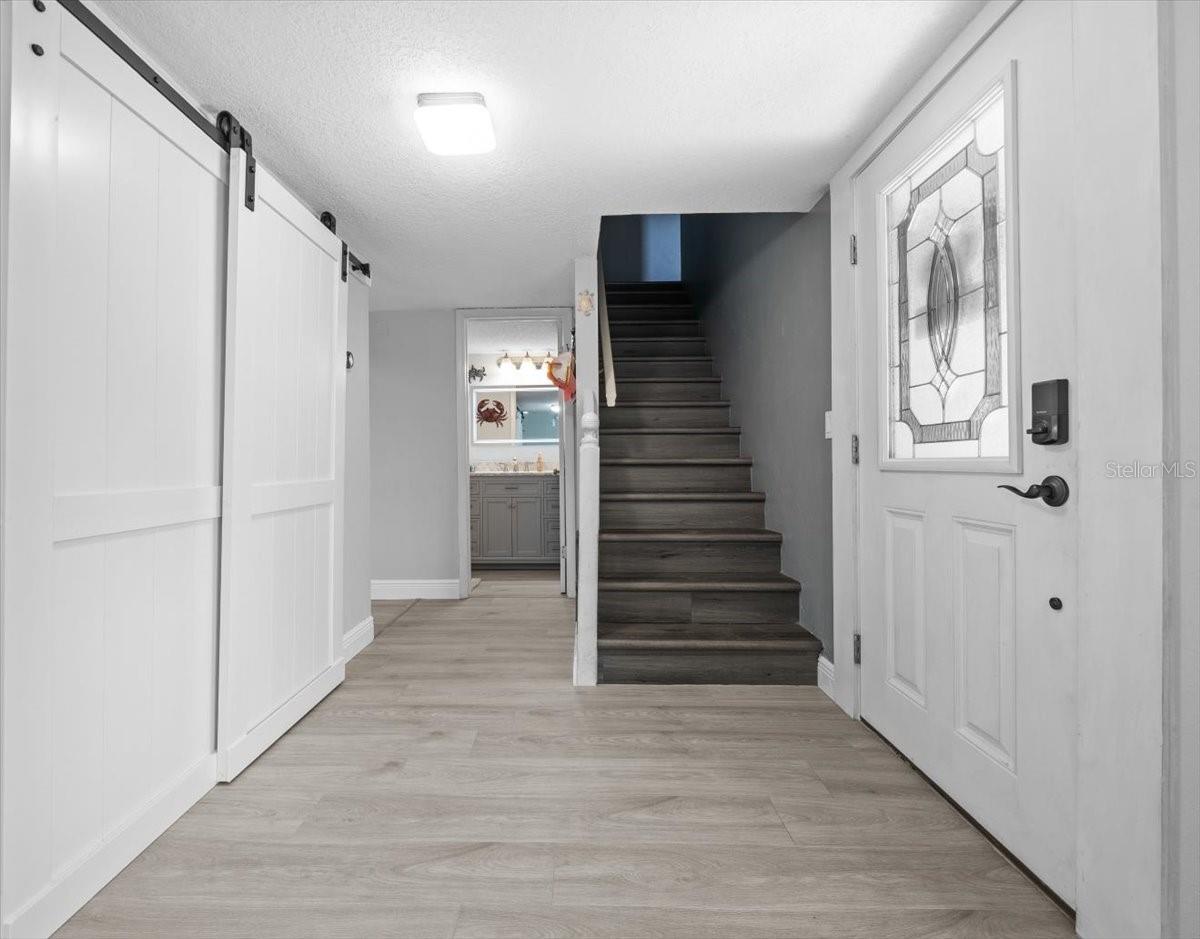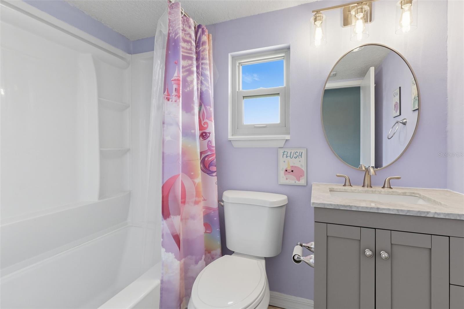 Bold, beautiful, and wonderfully positioned between the bustle and the beaches, this two-story home offers space, comfort, and flexibility in a no-HOA community. Featuring 4 bedrooms and 2.5 bathrooms, the property is also located outside evacuation zones with no known history of flooding for added peace of mind. A generator backflow hookup adds practical convenience along with impact-resistant windows, back sliding doors and a newer garage door! All bedrooms are located upstairs, including the primary suite, which features new LVP flooring, an updated walk-in closet, an en suite bathroom, and it's own upper-level deck—great for morning coffee or relaxing under the stars. The additional bedrooms have plush carpeting, thoughtful comfort for family, guests, or a home office. All three bathrooms have been recently renovated. Downstairs, brand-new flooring flows through the open living, kitchen, and dining areas, filled with natural light AND the downstairs has all new paint! The living room is bright and inviting with large bookend windows, while the dining area offers its own dedicated space for gatherings. Step outside to a fully fenced backyard designed for versatility and enjoyment. A turf-lined side yard provides a play-friendly space, while a separate grassy could be for pets. The firepit is a scene set for entertaining guests! Additional highlights include: two AC units for zoned climate control, a spacious two-car garage, an enclosed laundry room with outdoor access, and a charming screened front porch that adds both privacy and curb appeal. This thoughtfully maintained home combines modern updates, flexible outdoor living, and coastal proximity—all without HOA restrictions.