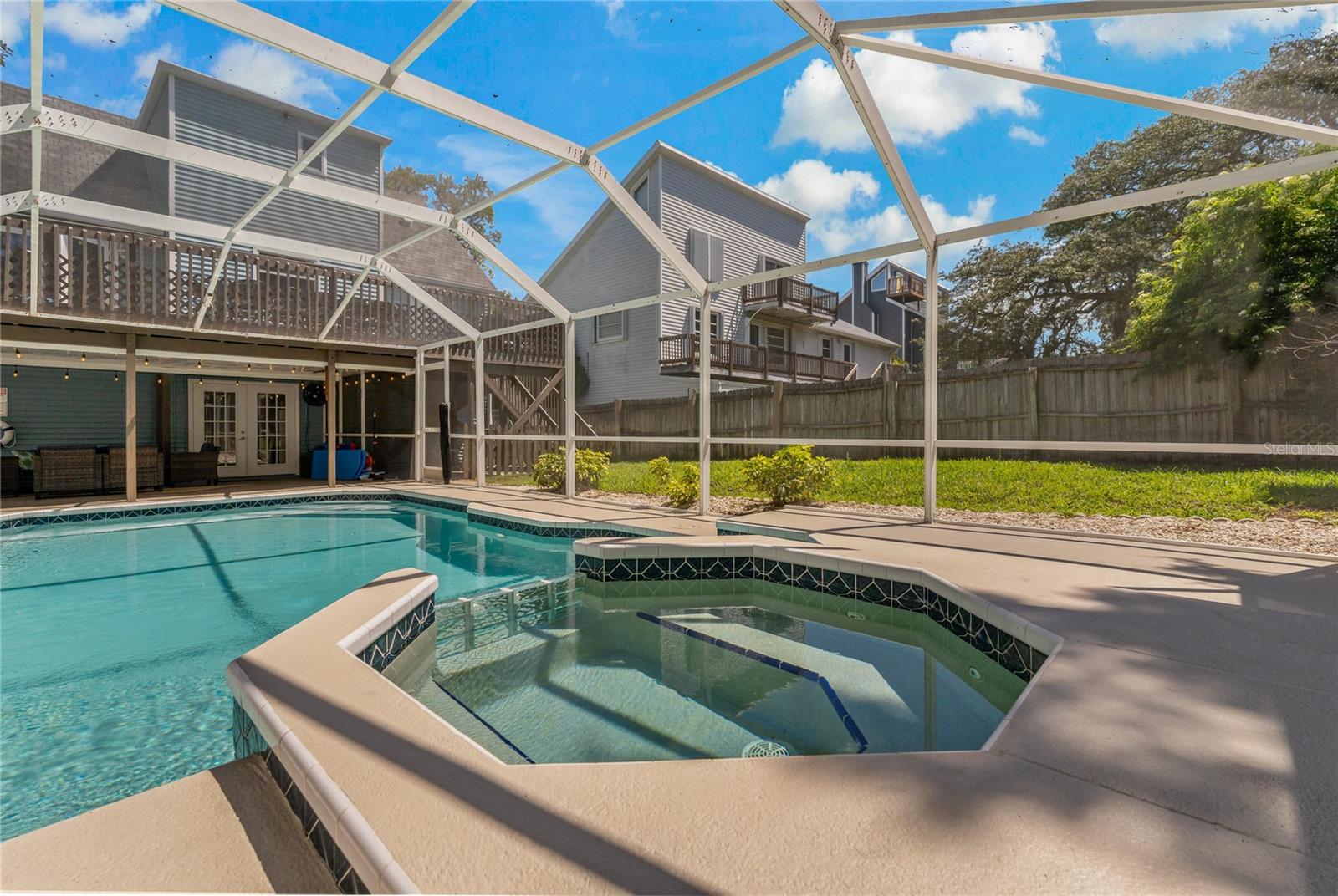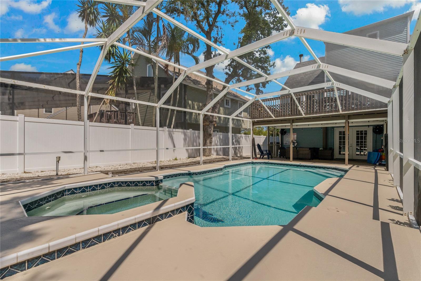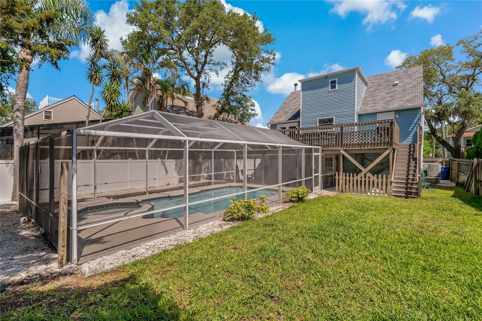 Welcome to your very own coastal retreat nestled in the highly desirable and charming Crystal Beach community! This 4-bedroom, 3-bathroom, pool home offers the perfect blend of luxury, comfort, and entertainment, making it the ideal place to call home. From its prime location to its exquisite interior features, this home truly has it all. Step inside and prepare to be captivated by the beauty of this Crystal Beach gem. With luxury, life-proof vinyl flooring throughout and a white cathedral-style ceiling adorned with gorgeous exposed wood beams, this home exudes coastal elegance at every turn. Meticulous attention to architectural detail is evident, from the molding in all the right places to the thoughtfully designed layout that maximizes space and functionality. Entertaining is a breeze in this home, thanks to its spacious and open floor plan. The beautifully appointed kitchen offers stainless steel appliances, solid wood cabinetry, and granite countertops, providing the perfect setting for culinary creations. And when it's time to unwind, the cozy wood-burning fireplace in the family room provides the perfect ambiance for relaxation. Plus, with access to the expansive second-floor balcony, you can enjoy al fresco dining with ease. Need extra space for a big family or lots of vacationing guests? No problem! The ground level garage has been conveniently converted to heated and cooled living space and is a retreat in itself, with a media room, game room combo, spacious bedroom and full bathroom. Upstairs, the private, primary suite provides walk-in closets, a spacious primary bath, and access to the rear balcony, offering a peaceful sanctuary to escape to at the end of the day. Outside, your very own backyard oasis awaits! Take a dip in the screened-in pool with spa, lounge on the spacious covered patio, or enjoy outdoor activities in the additional yard space. Plus, with private balconies sprinkled around the home, you can soak in the serene surroundings, smell the salt air, and enjoy the fresh coastal breeze. Walk or bike to the famous 47 mile Pinellas Trail just around the corner, stroll over to The Crystal Beach Pier and Park, easily visit any of the award-winning white sand Gulf Coast Beaches, challenge your golf skills at The Innisbrook Copperhead Golf Course which hosts the annual PGA Valspar Championship Event, or take in many of the social activities at either downtown Palm Harbor, Dunedin, Safety Harbor, or the Sponge Docks of Tarpon Springs!! All amazing Old Florida Coastal Communities that pack in the enjoyment of living here!! If you are looking for Top-Rated Schools, you're in luck as you are zoned for some of the best schools in the state! Don't miss out on the opportunity to live where most people dream of vacationing ~ schedule your private tour today! Start living your Best Florida Lifestyle Now!!