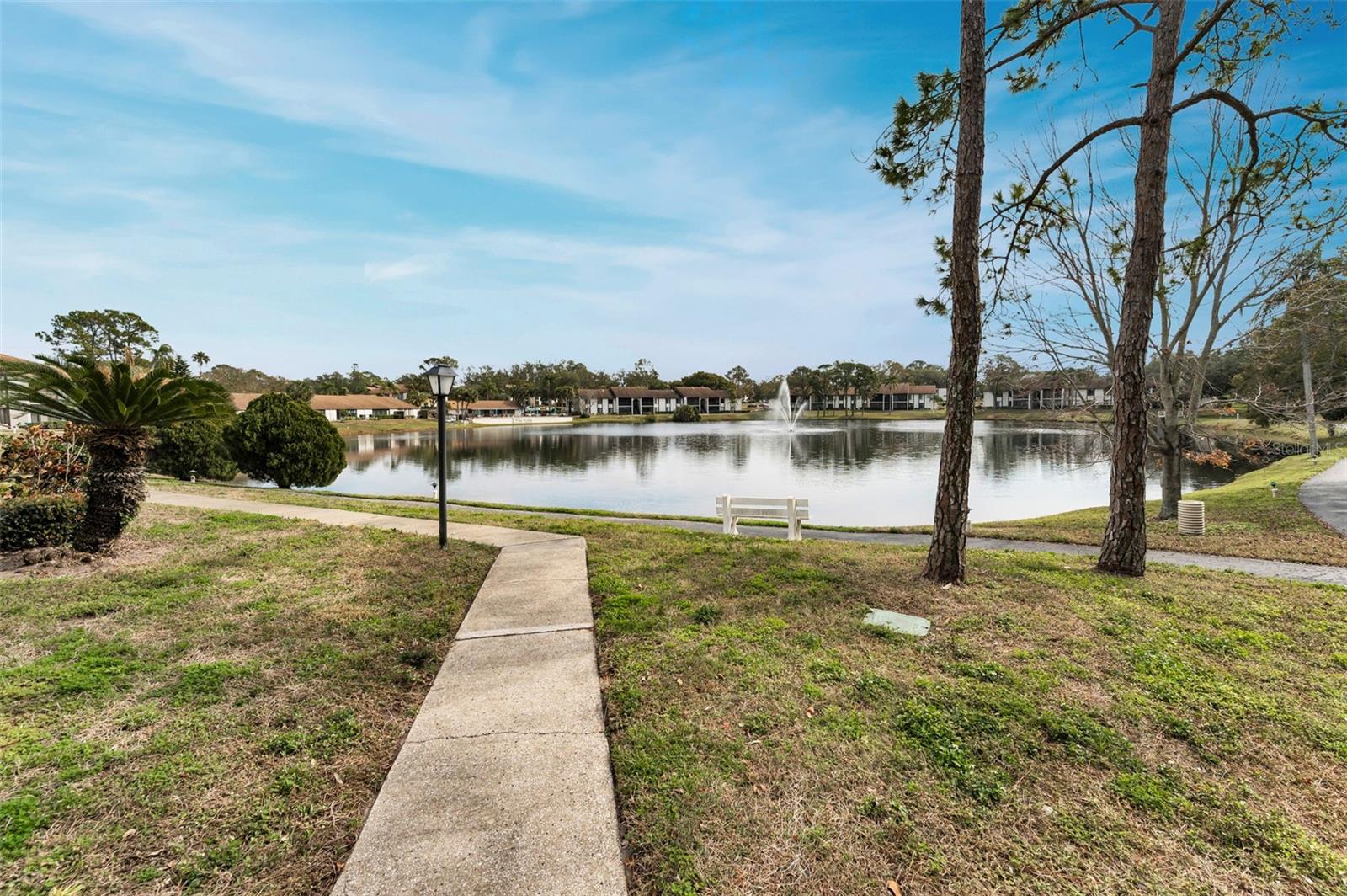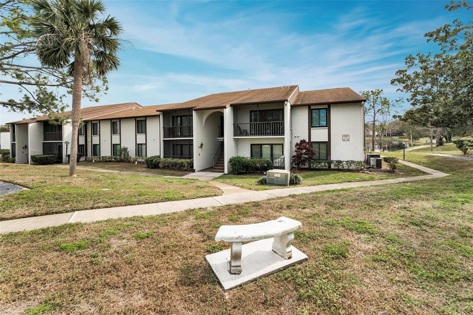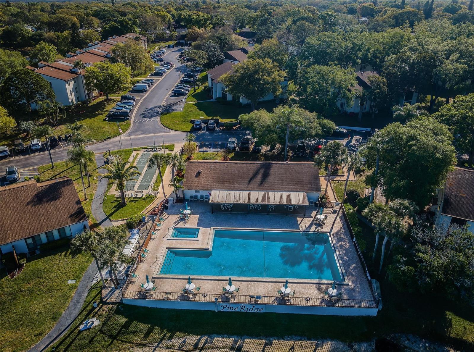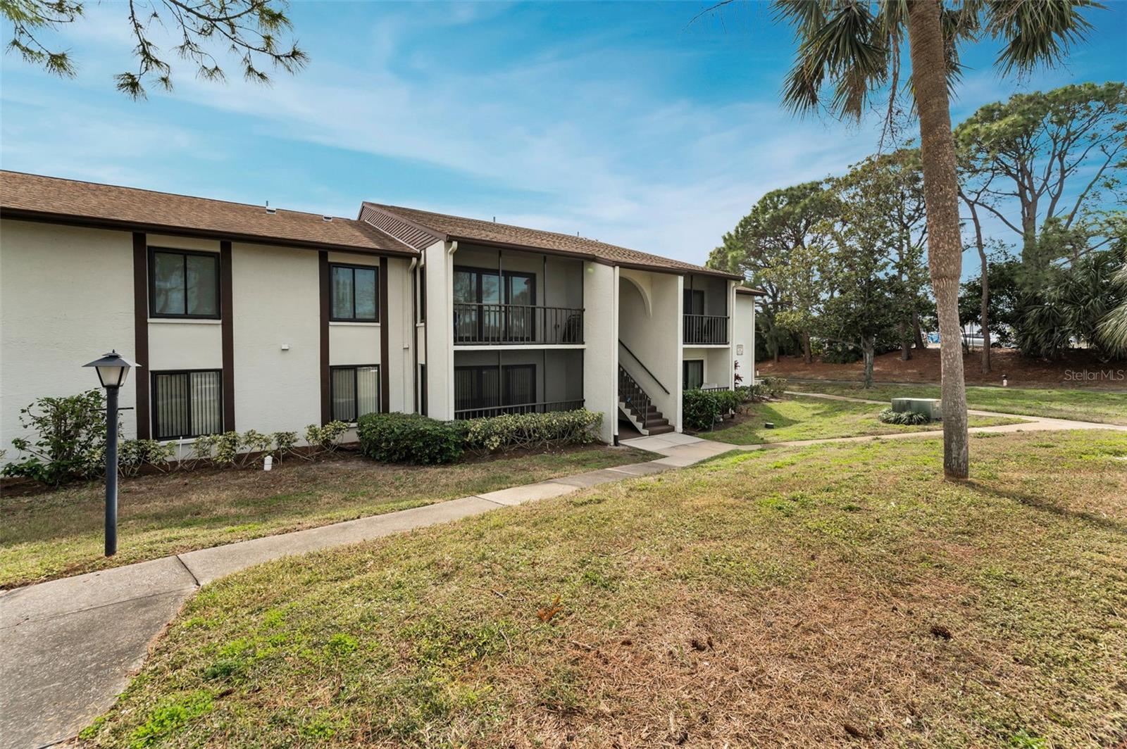 Welcome to Pine Ridge At Palm Harbor, a 55+ age, pet friendly, retirement community! This is a lovely 2 bedroom, 2 full bathroom, 1st floor unit with many updates! Featuring an open concept and a beautiful kitchen with Cherry wood cabinetry, Travertine backsplash, under-mount LED lighting and Granite counters! Brand new kitchen faucet with soap dispenser installed Feb/2025, Brand new Dishwasher March/2025, and Brand new updated shut off water valves March/2025! Range, refrigerator and microwave (2019)! Many units in Pine Ridge have a washer/dryer closet in the hallway however this unit has a laundry room with shelving and a full-sized washer(2019) and dryer is included! The HVAC system was installed in 2019! Tile flooring throughout. The living room has a remote controlled ceiling fan & sliding doors that open to a covered and screened patio. The spacious Primary bedroom includes a large, walk-in closet and an en-suite bathroom with Granite counters. The Guest bathroom includes a full-size bathtub and Granite counters. Both bedrooms and closets feature quality wood-look tile and ceiling fans. A dedicated shut-off valve for the dishwasher located under the kitchen sink has also been replaced new! Upgraded double-pane windows and sliding door. Low HOA fees include Cable, Internet, Roof, Sewer, Trash, Water, Heated Pool, Heated Spa, On-site Manager, Clubhouse, Shuffleboard Court, Exterior Pest Control and Grounds Maintenance. Pine Ridge is a very social community with a Men's Club and Women's club and, has paved walking trails for outdoor enjoyment! Pine Ridge is Very convenient to nearby medical and dental facilities, golf courses, restaurants, minutes to local beaches, Pinellas Trail, and Honeymoon Island State Park. Enjoy the Florida lifestyle! Call for your private in-person or live virtual tour today!