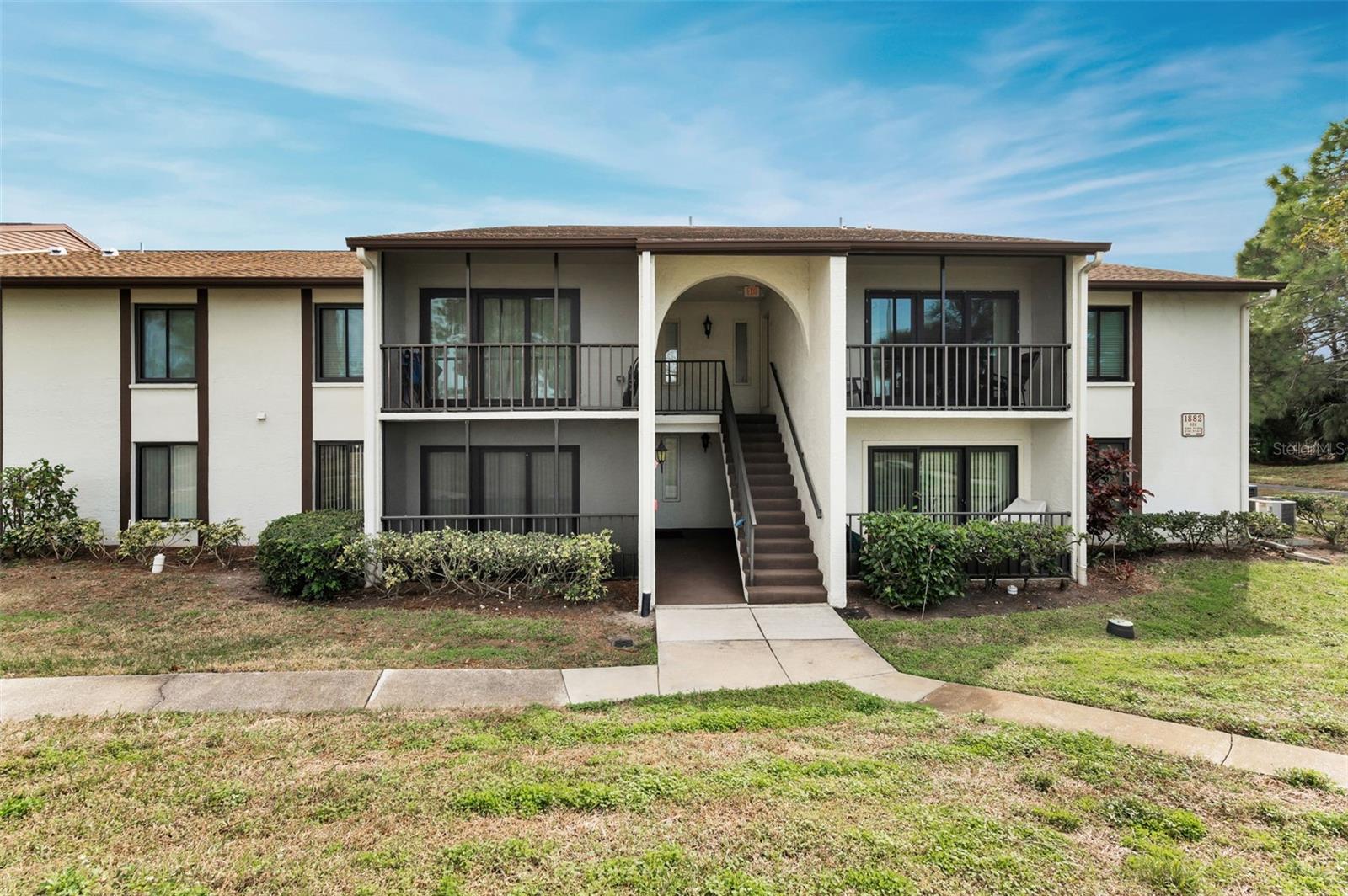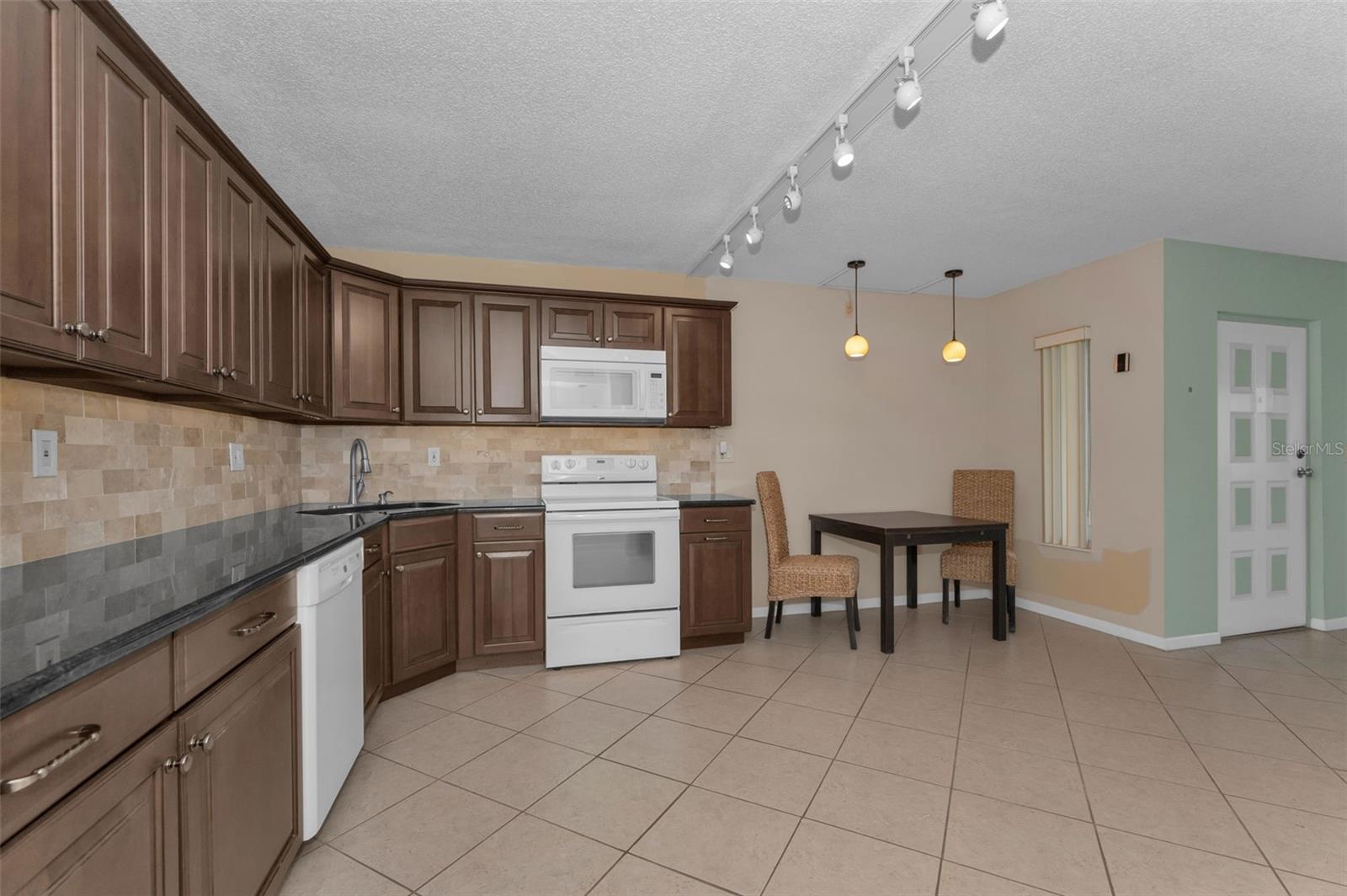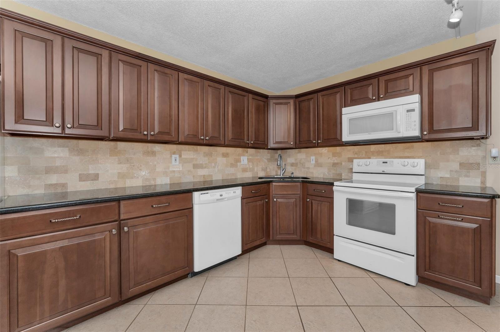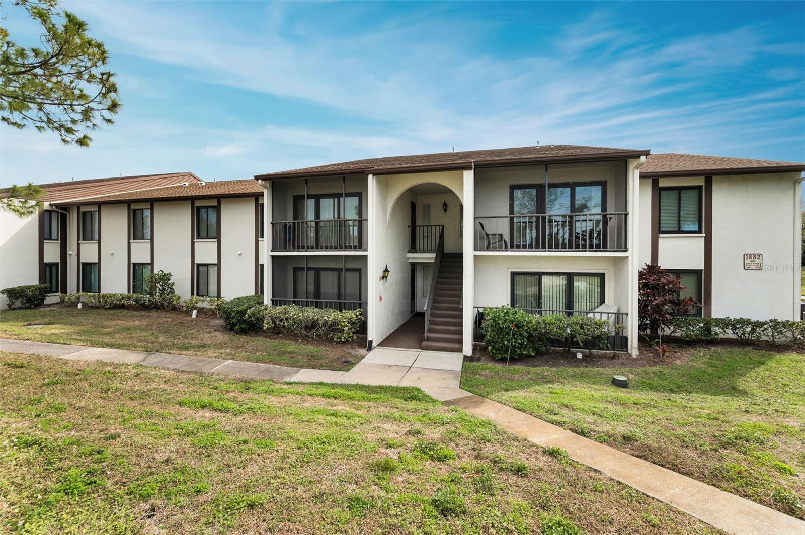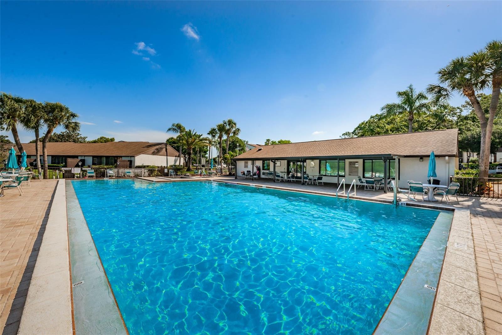 Welcome to Pine Ridge At Palm Harbor, a 55+ age, pet friendly, retirement community! This is a lovely 2 bedroom, 2 full bathroom, 1st floor unit with many updates! Featuring an open concept and a beautiful kitchen with Cherry wood cabinetry, Travertine backsplash, under-mount LED lighting and Granite counters! Brand new kitchen faucet with soap dispenser installed Feb/2025, Brand new Dishwasher March/2025, and Brand new updated shut off water valves March/2025! Range, refrigerator and microwave (2019)! Many units in Pine Ridge have a washer/dryer closet in the hallway however this unit has a laundry room with shelving and a full-sized washer(2019) and dryer is included! The HVAC system was installed in 2019! Tile flooring throughout. The living room has a remote controlled ceiling fan & sliding doors that open to a covered and screened patio. The spacious Primary bedroom includes a large, walk-in closet and an en-suite bathroom with Granite counters. The Guest bathroom includes a full-size bathtub and Granite counters. Both bedrooms and closets feature quality wood-look tile and ceiling fans. A dedicated shut-off valve for the dishwasher located under the kitchen sink has also been replaced new! Upgraded double-pane windows and sliding door. Low HOA fees include Cable, Internet, Roof, Sewer, Trash, Water, Heated Pool, Heated Spa, On-site Manager, Clubhouse, Shuffleboard Court, Exterior Pest Control and Grounds Maintenance. Pine Ridge is a very social community with a Men's Club and Women's club and, has paved walking trails for outdoor enjoyment! Pine Ridge is Very convenient to nearby medical and dental facilities, golf courses, restaurants, minutes to local beaches, Pinellas Trail, and Honeymoon Island State Park. Enjoy the Florida lifestyle! Call for your private in-person or live virtual tour today!