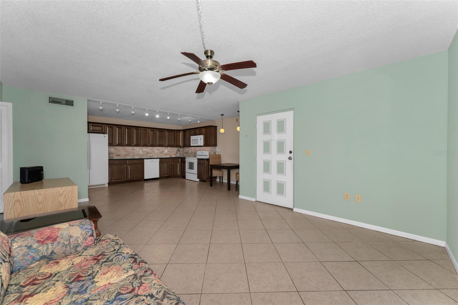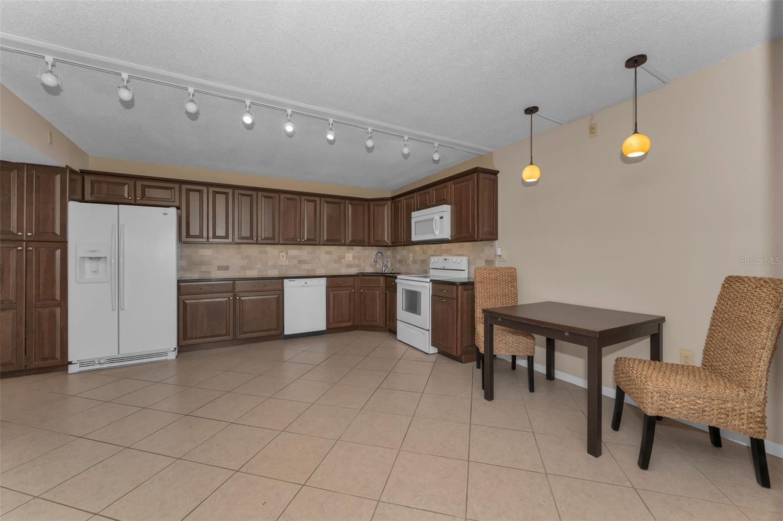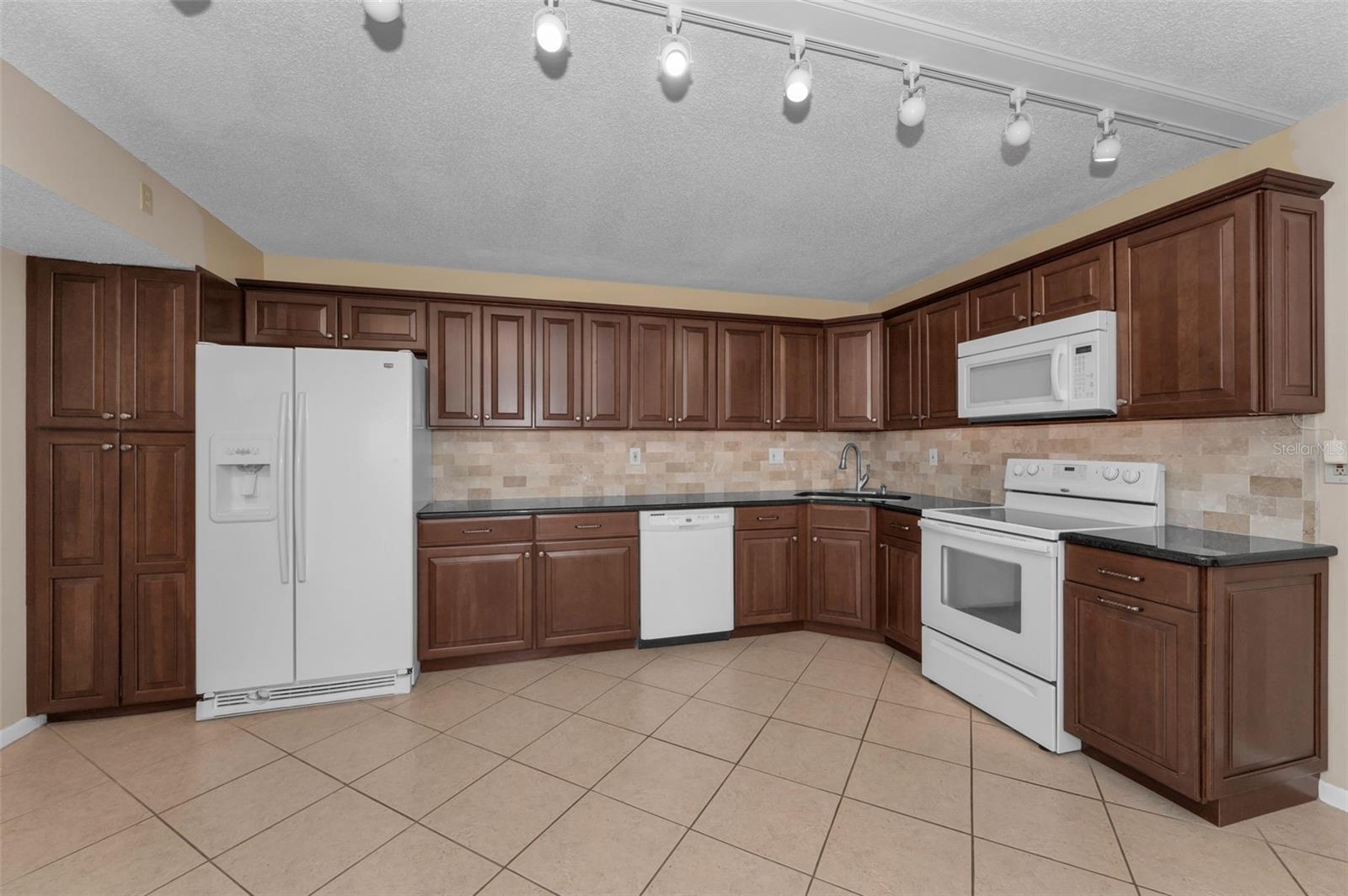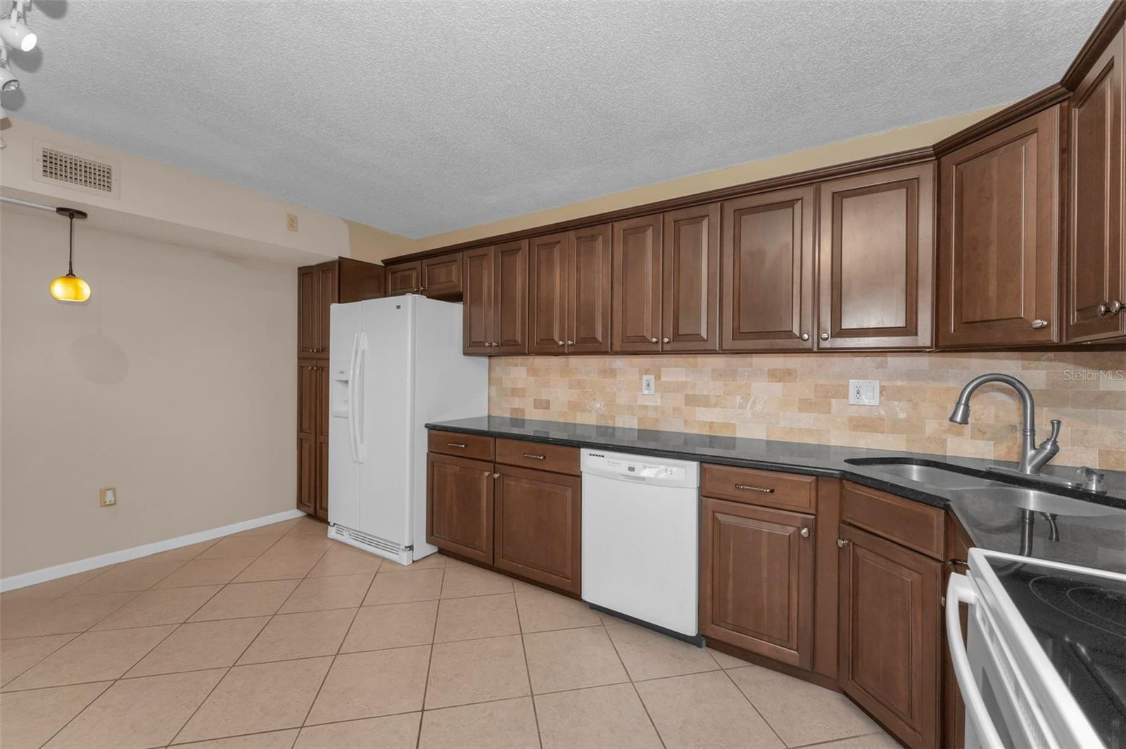 Welcome to Pine Ridge At Palm Harbor, a 55+ age, pet friendly, retirement community! This is a lovely 2 bedroom, 2 full bathroom, 1st floor unit with many updates! Featuring an open concept and a beautiful kitchen with Cherry wood cabinetry, Travertine backsplash, under-mount LED lighting and Granite counters! Brand new kitchen faucet with soap dispenser installed Feb/2025, Brand new Dishwasher March/2025, and Brand new updated shut off water valves March/2025! Range, refrigerator and microwave (2019)! Many units in Pine Ridge have a washer/dryer closet in the hallway however this unit has a laundry room with shelving and a full-sized washer(2019) and dryer is included! The HVAC system was installed in 2019! Tile flooring throughout. The living room has a remote controlled ceiling fan & sliding doors that open to a covered and screened patio. The spacious Primary bedroom includes a large, walk-in closet and an en-suite bathroom with Granite counters. The Guest bathroom includes a full-size bathtub and Granite counters. Both bedrooms and closets feature quality wood-look tile and ceiling fans. A dedicated shut-off valve for the dishwasher located under the kitchen sink has also been replaced new! Upgraded double-pane windows and sliding door. Low HOA fees include Cable, Internet, Roof, Sewer, Trash, Water, Heated Pool, Heated Spa, On-site Manager, Clubhouse, Shuffleboard Court, Exterior Pest Control and Grounds Maintenance. Pine Ridge is a very social community with a Men's Club and Women's club and, has paved walking trails for outdoor enjoyment! Pine Ridge is Very convenient to nearby medical and dental facilities, golf courses, restaurants, minutes to local beaches, Pinellas Trail, and Honeymoon Island State Park. Enjoy the Florida lifestyle! Call for your private in-person or live virtual tour today!