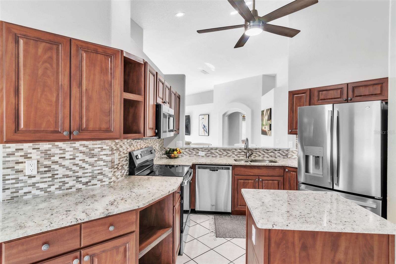 Meticulously maintained, open concept 3-bedroom 2 bath home in East Lake. This lovely, freshly painted, newly remodeled home is nestled in beautiful Brooker Creek Wildlife Preserve. The home is perfect for entertainment, featuring a newly refinished wood burning granite fireplace and new large, lighted ceiling fans throughout. The spacious family room overlooks the solar heated pool, serene pond and protected forest. The kitchen has granite counter tops with mosaic tile backsplash and new stainless-steel appliances. A breakfast area is adjacent to the kitchen. The master suite has a pool and pond view plus a large walk-in closet. The updated master bath has a new large mirror, new dual sinks, new granite counter, new contemporary LED light fixtures and recessed lighting, and new Kohler chair-height, soft close, elongated toilet. The large tiled shower has a vaulted ceiling, LED recessed light and glass door enclosure. The two additional bedrooms with new ceiling fans, share a beautifully updated guest bath with new Kohler chair-height, soft close, elongated toilet, new granite counter, new sink and fixture and new contemporary LED light fixture. The beautifully designed shower is all new, tile walls and floor. Outside, the home, the screened lanai has a thermostatically controlled solar heated pool, covered dining area that overlooks the protected forest of Brooker Creek Wildlife Preserve and a large pond. The pond and its shoreline are maintained weekly by the HOA. Lush tropical landscaping surrounds the home. Enjoy the tranquil setting this home has to give while watching the deer, turkey, and a wide array of shore birds, songbirds, eagles, osprey, owls and hawks right from your lanai. Architectural details include vaulted ceilings, large arched windows, tile and wood flooring. Coventry Village has a low HOA fee, a playground with slides and swings, and well-lit streets. Peaceful and tranquil yet only minutes to Publix, shopping, and local restaurants. Just 10 minutes from a very impressive YMCA and John Chestnut Park. Other home amenities include 2 car garage equipped with utility sink and pulldown attic ladder and new wide paver drive way. New kitchen updates in 2024, recessed LED lights, GE stove, GE refrigerator, GE microwave and new 1/2 hp garbage disposal. All new programmable ceiling fans and high-end LED lighting inside and out. The wall mounted TV's have plugs that are concealed behind the TV for clean appearance. Underground wiring throughout entire subdivision ( No poles) Street lights, including one directly in front of home. No flood or hurricane damage ever sustained. Property is not in the flood zone and did not sustain any flooding or hurricane damage. Make an appointment today!