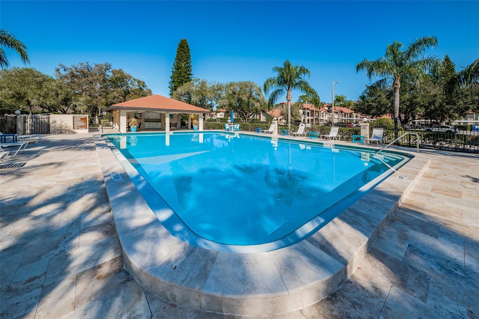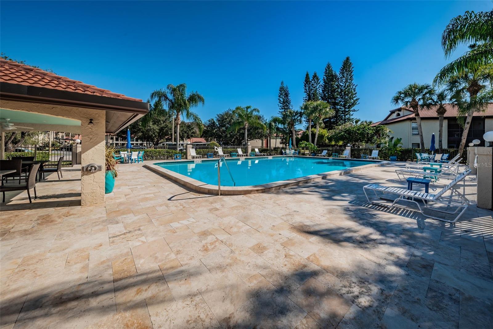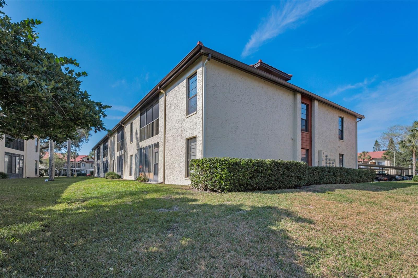 RARE OPPORTUNITY! First-floor, end-unit THREE BEDROOM condo in highly desirable EL PASADO CONDOMINIUMS in the heart of EAST LAKE. This residence offers MODERN UPGRADES and thoughtful design. Step inside to GORGEOUS WOOD-LOOK TILE FLOORING (2023) throughout. The beautifully renovated KITCHEN features GRANITE COUNTERTOPS, STAINLESS STEEL APPLIANCES, an abundance of upscale cabinetry, and a BREAKFAST BAR that opens to the living room. Sliders lead to the SCREENED-GLASS WINDOW, COVERED LANAI—perfect for enjoying serene POND VIEWS IN ANY SEASON!! The SPACIOUS PRIMARY SUITE boasts a LARGE WALK-IN CLOSET and an UPDATED EN SUITE BATH with a DOUBLE VANITY and WALK-IN SHOWER. Enjoy the access to the Lanai from the Primary Bedroom! Two additional bedrooms at the front of the unit are bright and inviting, with easy access to the UPDATED SECOND BATH. A FORMAL DINING AREA off the living room provides excellent space for gatherings. INSIDE LAUNDRY ROOM offers added convenience and storage, and the FRONT-LOAD WASHER AND DRYER STAY! COVERED PARKING right at your door! This WELL-MAINTAINED COMMUNITY features a BEAUTIFUL POOL AREA and is conveniently located near top-rated schools, shopping, dining, and major transportation routes. PRICED TO SELL! Don't forget to check out the virtual tour!