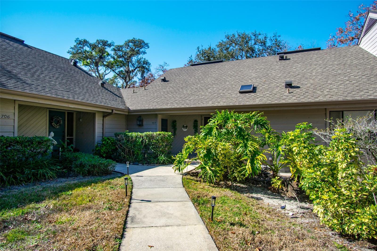 Now presenting this absolutely wonderful 2/2 villa in highly desired Gleneagles of Palm Harbor. Surrounded by mature trees and lush landscaping, you’re sure to love this end, corner unit villa that feels like home. Upon walking in, you are greeted by a spacious and open split floor plan. The living room/dining room combo is open to the kitchen and very comfortably fits large furniture. Past the living area, there are wall to wall double-panned, hurricane rated sliders that open to a large and extra spacious deck. The deck expands to the primary bedroom, where there is separate outdoor access! The primary bedroom is large, also comfortably fits king size furniture, and has a walk-in closet with plenty of storage. The primary suite bathroom is large, featuring dual vanities and a walk-in tub. The guest bedroom is located on the east wing of the villa and is spacious as well. The guest bathroom and laundry closet sit in the hallway leading to the guest bedroom. The guest bathroom is large and features a skylight in the shower! Outside of the villa, there is a large carport with a storage unit and designated carport space. This community is charming and very well maintained. The roof was last done in 2019 and has held up perfectly through the last few hurricane seasons. NO flood zone! This community is high and dry! Schedule your showing today!