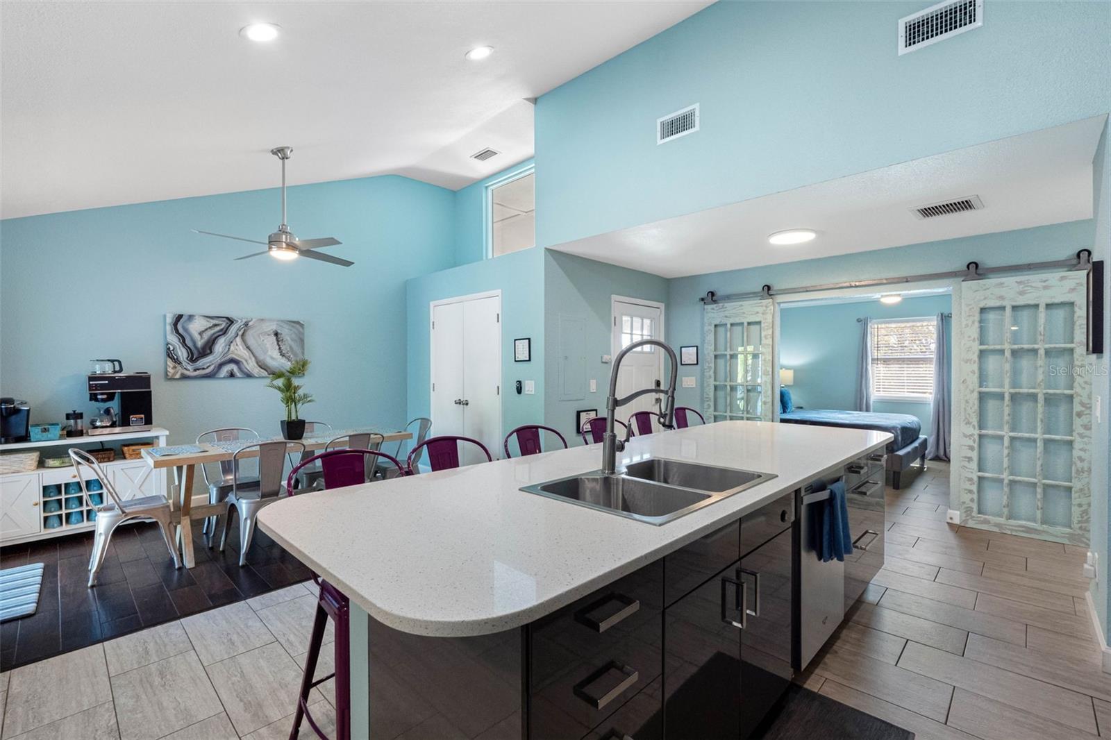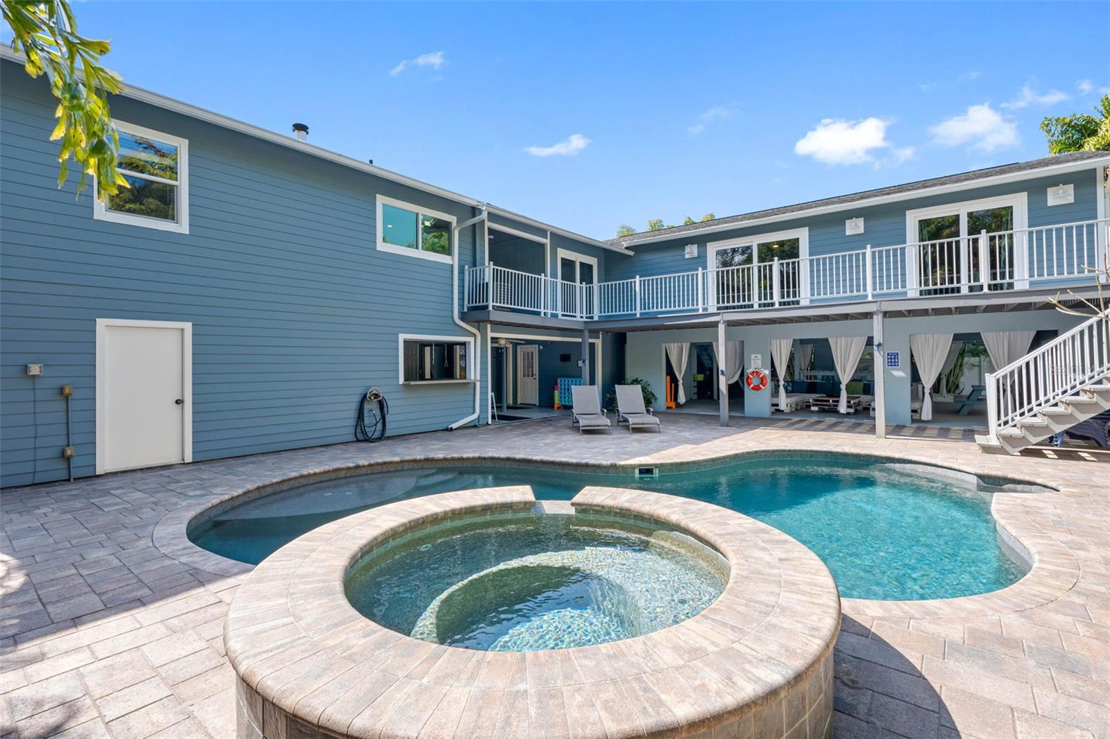 Under contract-accepting backup offers. Wedding parties, do you need a place to rent? Family reunions close to the beach, do you need a place to stay? A Legal short term rental close to the beaches and downtown Dunedin! A beautifully renovated multi-family property is not just a home—it's a gateway to unforgettable experiences and cherished memories. Perfect for hosting larger events, this property offers an incredible opportunity in the heart of Florida's Gulf Coast, where everyday living feels like a dream vacation. Your guests can come and go throughout the property or you can own this home with multiple families living together and have a tropical oasis in your backyard! Step into a world of elegance and comfort, where one unit welcomes you with 3 spacious bedrooms, 2.5 bathrooms, and an adaptable office/den that can become a cozy 4th bedroom. The other side, equally inviting, features 2 bedrooms and 1 bathroom. Each space is adorned with luxurious quartz countertops, sleek tile flooring and high vaulted shiplap ceilings creating an ambiance of modern sophistication. For over 7 years, this property has thrived as a successful short-term rental, offering flexibility and potential for continued income. It's available furnished or unfurnished, ready to embrace new stories and adventures. Recent upgrades, including a newer state-of-the-art drainage system, new water heaters, and a freshly painted deck, outdoor stairs, and exterior, ensure that this home is as reliable as it is beautiful. The outdoor space is nothing short of magical. Imagine hosting gatherings in the expansive entertainment area that mirrors a Miami , surrounded by lush landscaping and the gentle sway of palm trees. The heated pool, with its inviting jacuzzi, is an oasis where laughter and relaxation meet. New pool pump, new pool equipment, new hurricane impact windows and sliding glass doors, new solid core doors, an air conditioned storage room that can be turned into another unit and four garages, this property offers both luxury and practicality in abundance. Nestled just steps from the scenic Pinellas Trail, adventure beckons with miles of walking, biking, and outdoor exploration. Only three blocks from the stunning Crystal Beach, you'll find yourself in a vibrant coastal community known for its serene waters, breathtaking sunsets, and slipping your toes into the sugar white sands of the beach. Picture days spent basking in the sun, fishing, or kayaking, and evenings filled with the flavors of local seafood at Fatty's Fish Shack and the rhythms of live music. This is more than an opportunity; it's a chance to own the most unique property where you can continue developing it as a thriving business or use it for your families. Don't let this rare chance to own a slice of Florida's paradise slip away—embrace the lifestyle you've always dreamed of.