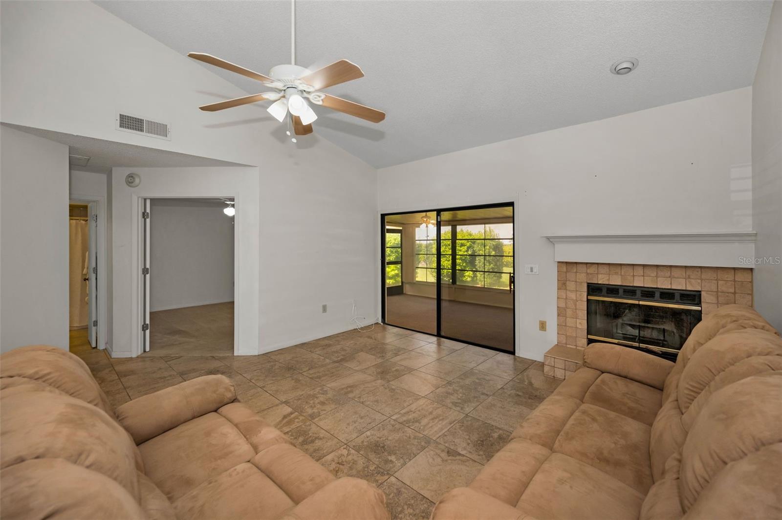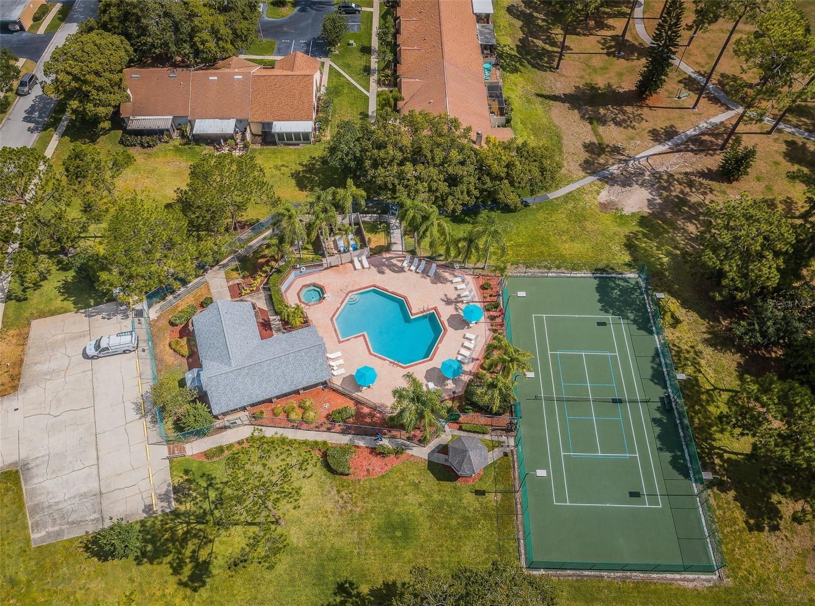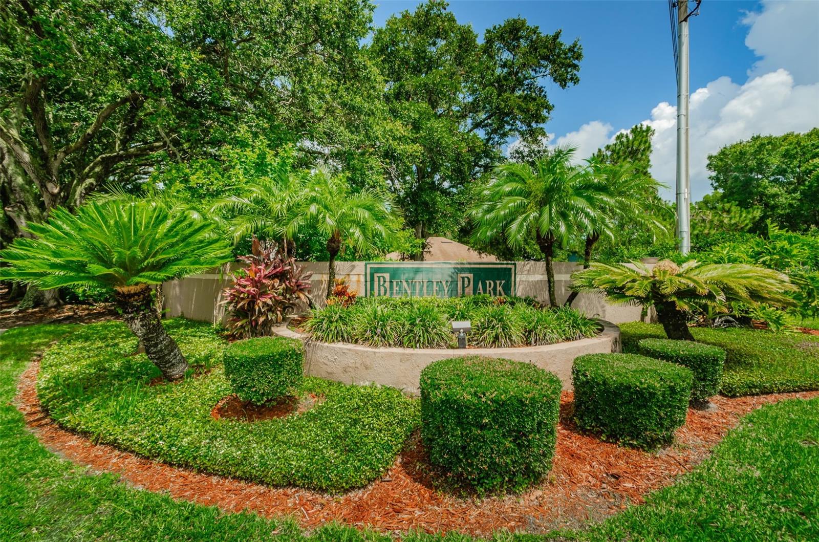 One or more photo(s) has been virtually staged. Welcome Home to Bentley Park in Palm Harbor. Enjoy living in a quiet neighborhood community. Fantastic 2 bedroom villa includes a fireplace and an additional screened “sunroom” with vinyl windows. Two parking spaces, one covered, are comfortably located in front of the villa. Underground electrical and in a “no flood zone” adds extra security with no damage from recent storms. Great floorplan. The kitchen has room for a table, white appliances and a pass thru to the gathering room. Spacious gathering room for dining and relaxing by the fireplace. Bedrooms are in a split plan. The primary bedroom has an ensuite bath. The additional sunroom adds extra living space for reading, exercise, playroom, or for just enjoying the outdoor view. Indoor laundry room with washer and dryer conveying. Live maintenance free! HOA fees include grounds maintenance, water, sewer, trash, cable and access to the year-round heated community pool, Jacuzzi, tennis, cabana and park with playground. Bentley Park is conveniently located with easy access to medical facilities, hospitals, shopping, dining and highly rated schools. This home is zoned for Palm Harbor University High School. A short drive will take you to all Tampa Bay has to enjoy with beautiful beaches, attractions, sporting venues and the Tampa International Airport. Be sure to watch the video for more photos!