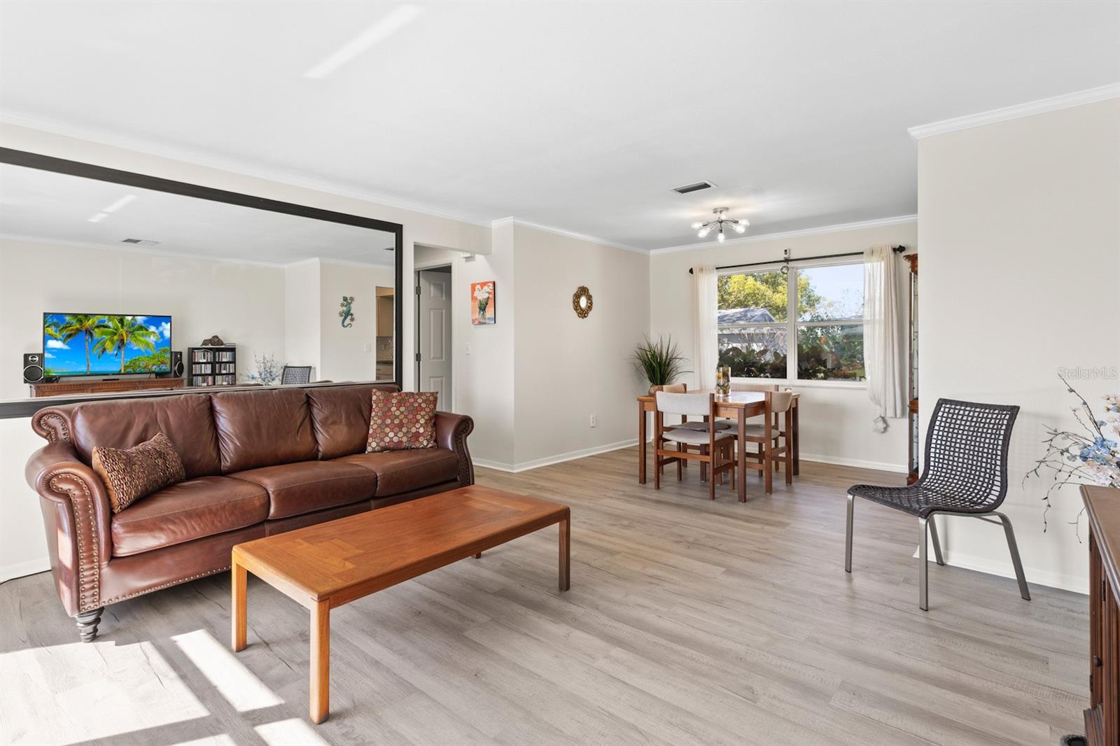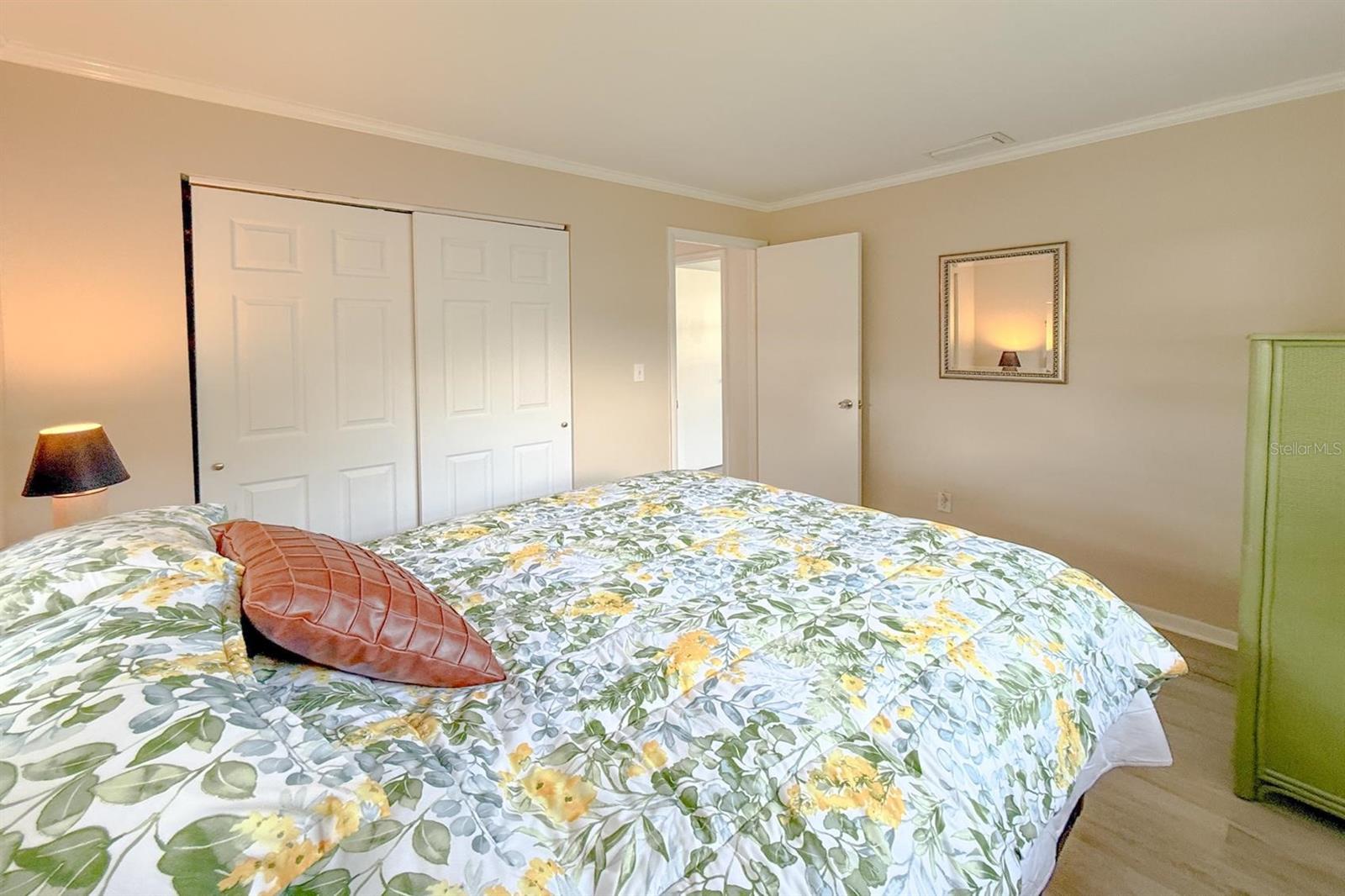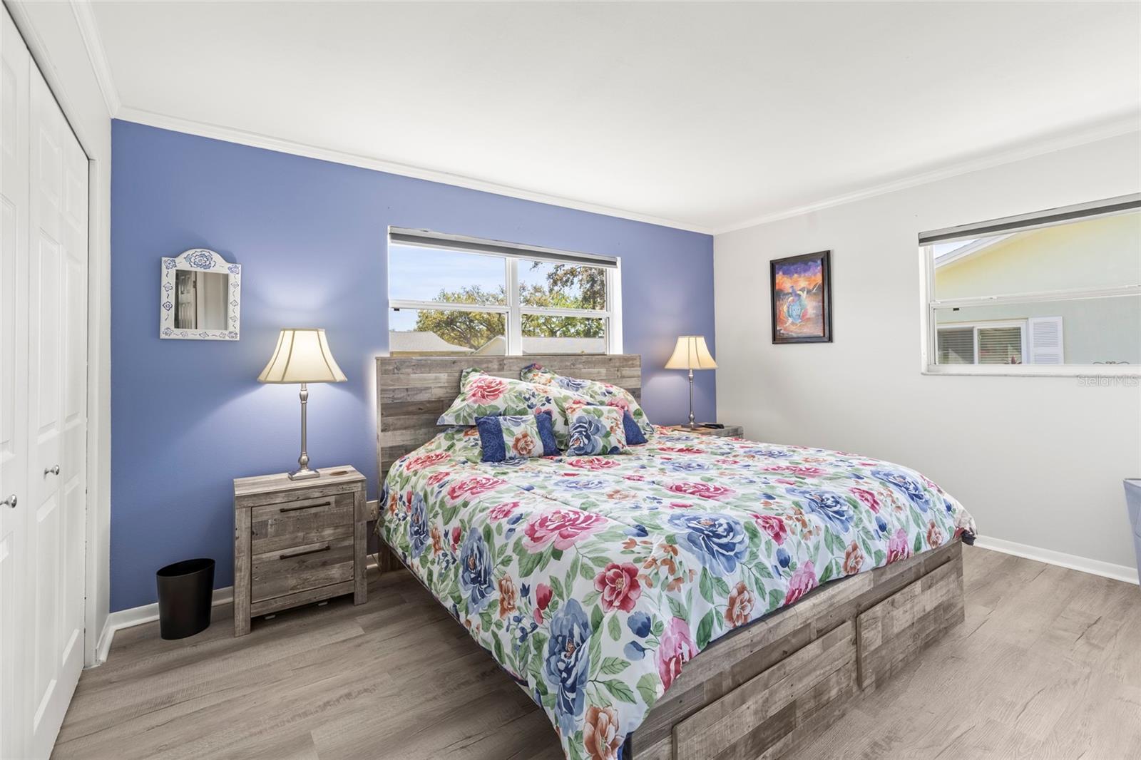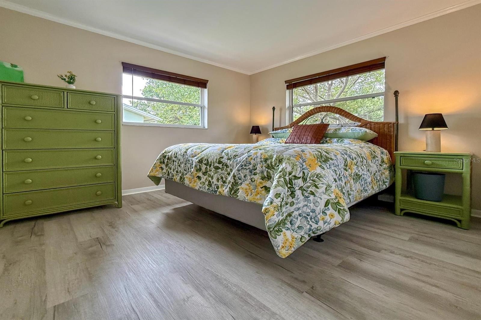 Time to Rediscover this Personality-Packed Palm Harbor Block Home with Tropical Charm NOW SHOWCASING Luxury Vinyl Plank flooring in both bedrooms, creating a cohesive finish to its upgraded style! Thoughtful renovations shine across the 2-bed, 1.5-bath, 1-car garage home with interior laundry and an extra parking pad. Plus, you’ll love the versatility of the enclosed and airy 140 sq ft FL Flex Room, offering extended living (not included in the main sq ft) built in wall A/C, ceiling fan and rustic tile, seamlessly creating flexible bonus space! This is where the lifestyle you’ve dreamed of meets the home you’ve been waiting for in this beautifully maintained residence in Highland Lakes, the premier 55+ active adult pet-friendly community on Lake Tarpon. Blending relaxation, recreation and resort-inspired living all wrapped into a low HOA! Vibrant lush landscaping with palms, colorful flowers, cacti, and two fruit-bearing pineapple plants welcomes you to your personal paradise on .16 acres. In (2023) the yard was resodded with St. Augustine and irrigation installed for easy upkeep. Well-cared-for Roofs (2018) and gutters provide years of remaining life with an attached eco-friendly Rain Barrel. Newer-style Windows with Storm Panels, in a highly elevated location Non-Flood Non-Evac Zone and Electrical/Plumbing updates provide peace of mind! As you enter the covered front patio, along a slate walkway, a graceful oval glass door offers refined convenience and secure keyless entry paired with a storm door for added light and safety. Step inside to waterproof vinyl, contemporary smooth ceilings, dimmable light fixtures, crisp crown molding and baseboards, all accented by fresh neutral paint. The open living/dining areas flow into the fabulous and functional kitchen, featuring top-tier stainless steel appliances, marble countertops, textured backsplash, water purification system (2024) and softener, garbage disposal, pass thru picturesque window to the lanai and a closet pantry behind a stained-glass art piece. Down the hall are two spacious bedrooms featuring (2023) custom built closets in both rooms and hallway closets for maximum storage. The king-sized primary with a lovely accent wall, generous light through its large windows and the equally light-filled 2nd bedroom accommodate a queen bed set with BRAND NEW LVP floors. The standout, full bath features a glass-enclosed walk-in marble shower, a stunning stained glass window, refreshing rainwater shower head and marble tile. Gleaming with a stylish vanity, modern well lit medicine cabinet and newly painted. Off the kitchen, are inside washer and dryer with cabinets, garage access, (2024) renovated half bath leading to the FL Flex Room, access to the shaded rear patio and serene backyard make this a true gem. It’s a Hole in One! 3 private executive golf courses = 27 holes of unlimited play anytime. Take a dip in 2 heated pools and unwind in the jacuzzi. The Lodge provides direct lake access for boating, fishing, pontoon tours & gated Boat/RV storage with a private ramp. The clubhouse hosts indoor/outdoor activities, fitness, book club, pickleball, bocce, tennis, arts & crafts, music, movies, dancing and much more! Once you’ve explored the countless attractions in the neighborhood check out all the local favorites. Whether you’re looking for year around living, seasonal escape, or a turnkey rental, this home checks all the boxes. Schedule your private tour today!