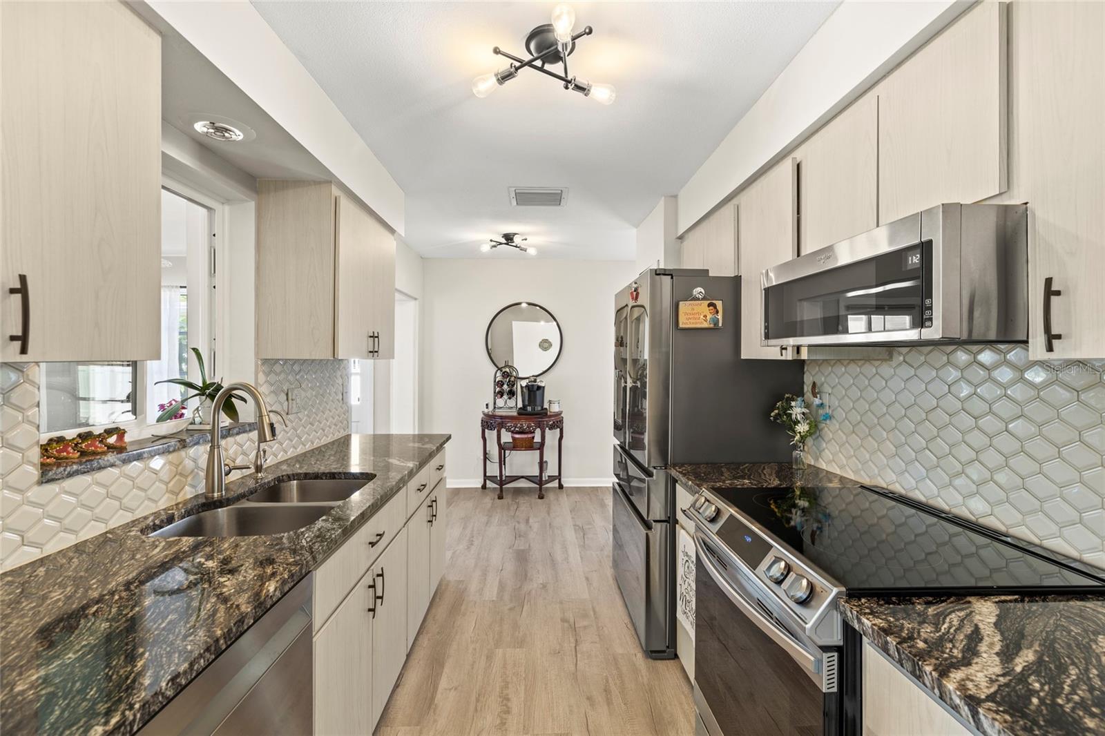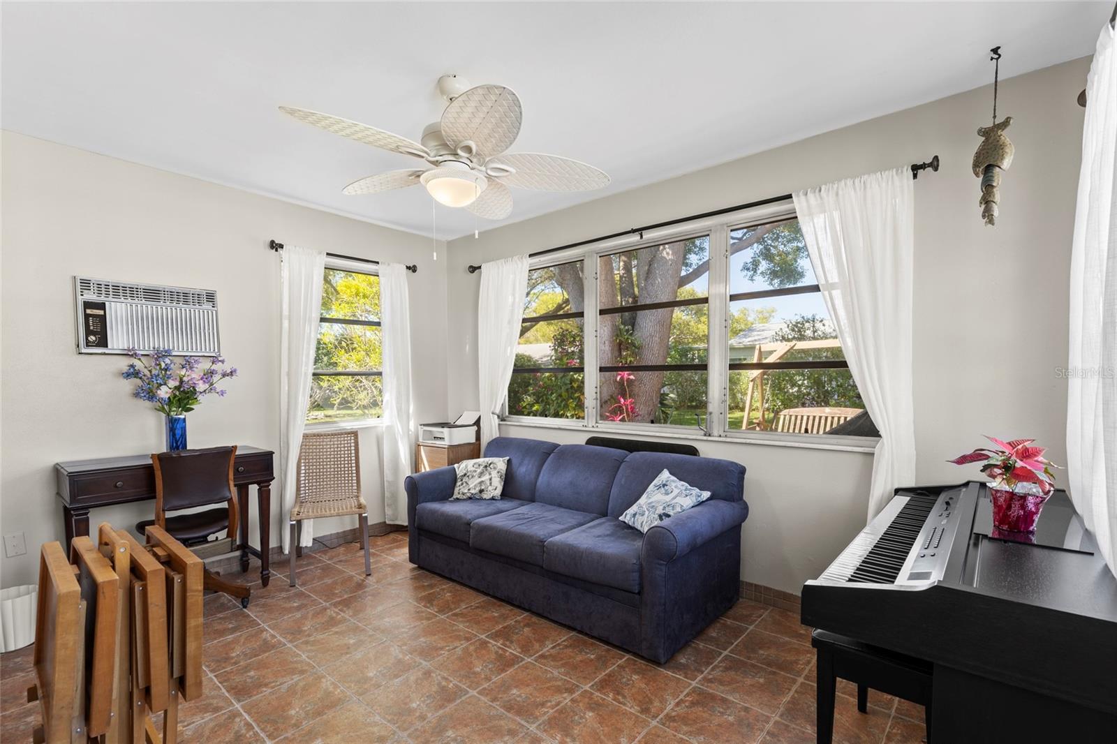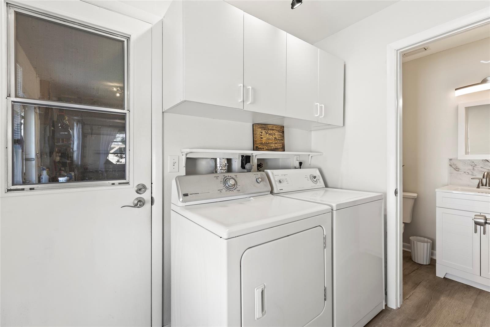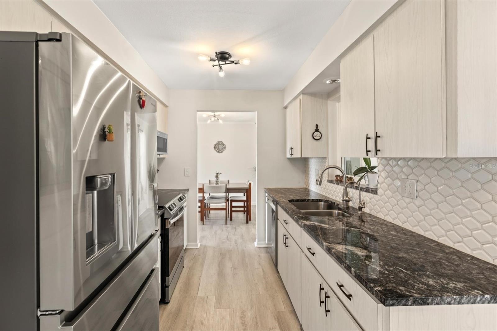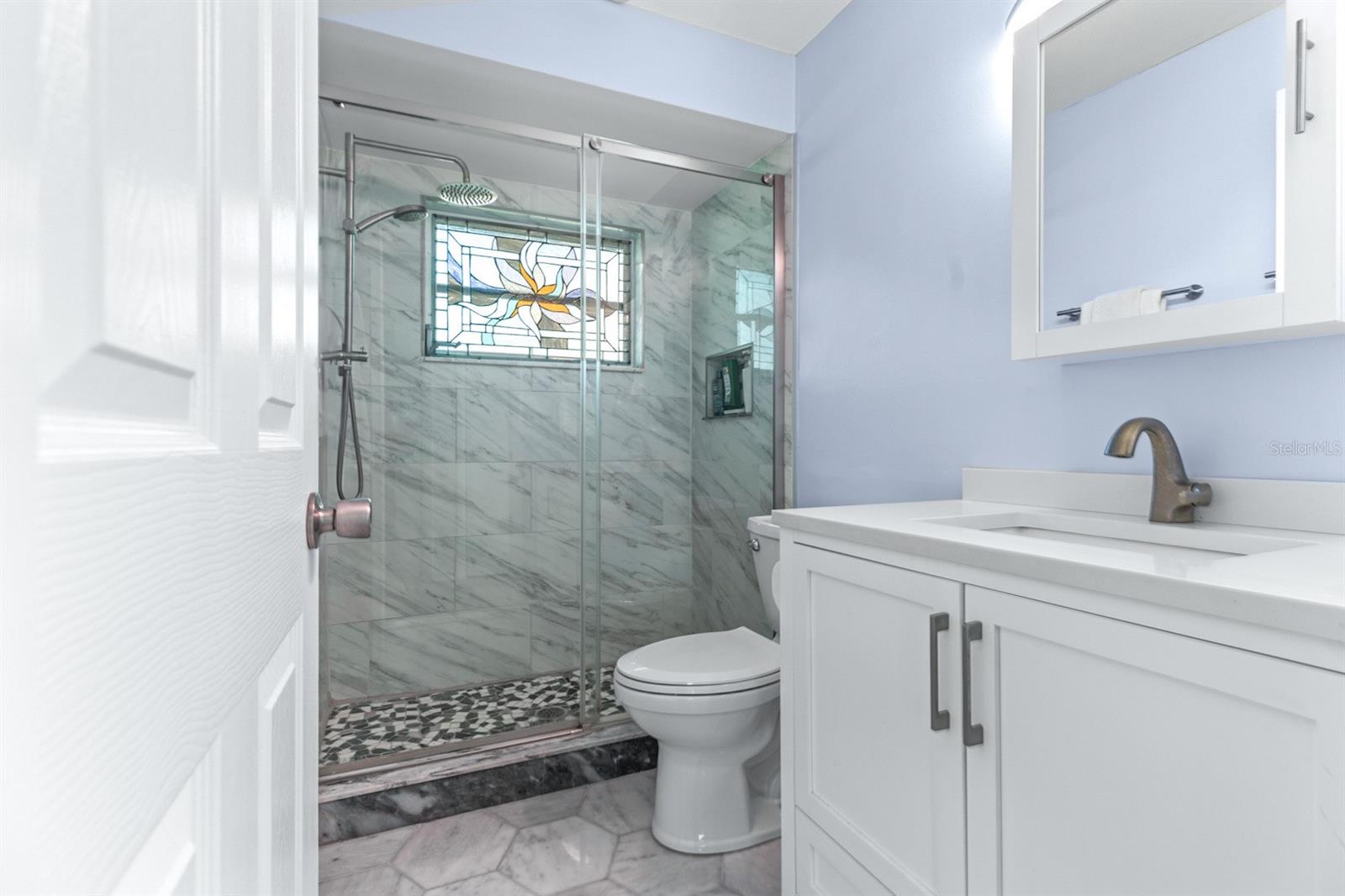Time to Rediscover this Personality-Packed Palm Harbor Block Home with Tropical Charm NOW SHOWCASING Luxury Vinyl Plank flooring in both bedrooms, creating a cohesive finish to its upgraded style! Thoughtful renovations shine across the 2-bed, 1.5-bath, 1-car garage home with interior laundry and an extra parking pad. Plus, you’ll love the versatility of the enclosed and airy 140 sq ft FL Flex Room, offering extended living (not included in the main sq ft) built in wall A/C, ceiling fan and rustic tile, seamlessly creating flexible bonus space! This is where the lifestyle you’ve dreamed of meets the home you’ve been waiting for in this beautifully maintained residence in Highland Lakes, the premier 55+ active adult pet-friendly community on Lake Tarpon. Blending relaxation, recreation and resort-inspired living all wrapped into a low HOA! Vibrant lush landscaping with palms, colorful flowers, cacti, and two fruit-bearing pineapple plants welcomes you to your personal paradise on .16 acres. In (2023) the yard was resodded with St. Augustine and irrigation installed for easy upkeep. Well-cared-for Roofs (2018) and gutters provide years of remaining life with an attached eco-friendly Rain Barrel. Newer-style Windows with Storm Panels, in a highly elevated location Non-Flood Non-Evac Zone and Electrical/Plumbing updates provide peace of mind! As you enter the covered front patio, along a slate walkway, a graceful oval glass door offers refined convenience and secure keyless entry paired with a storm door for added light and safety. Step inside to waterproof vinyl, contemporary smooth ceilings, dimmable light fixtures, crisp crown molding and baseboards, all accented by fresh neutral paint. The open living/dining areas flow into the fabulous and functional kitchen, featuring top-tier stainless steel appliances, marble countertops, textured backsplash, water purification system (2024) and softener, garbage disposal, pass thru picturesque window to the lanai and a closet pantry behind a stained-glass art piece. Down the hall are two spacious bedrooms featuring (2023) custom built closets in both rooms and hallway closets for maximum storage. The king-sized primary with a lovely accent wall, generous light through its large windows and the equally light-filled 2nd bedroom accommodate a queen bed set with BRAND NEW LVP floors. The standout, full bath features a glass-enclosed walk-in marble shower, a stunning stained glass window, refreshing rainwater shower head and marble tile. Gleaming with a stylish vanity, modern well lit medicine cabinet and newly painted. Off the kitchen, are inside washer and dryer with cabinets, garage access, (2024) renovated half bath leading to the FL Flex Room, access to the shaded rear patio and serene backyard make this a true gem. It’s a Hole in One! 3 private executive golf courses = 27 holes of unlimited play anytime. Take a dip in 2 heated pools and unwind in the jacuzzi. The Lodge provides direct lake access for boating, fishing, pontoon tours & gated Boat/RV storage with a private ramp. The clubhouse hosts indoor/outdoor activities, fitness, book club, pickleball, bocce, tennis, arts & crafts, music, movies, dancing and much more! Once you’ve explored the countless attractions in the neighborhood check out all the local favorites. Whether you’re looking for year around living, seasonal escape, or a turnkey rental, this home checks all the boxes. Schedule your private tour today!