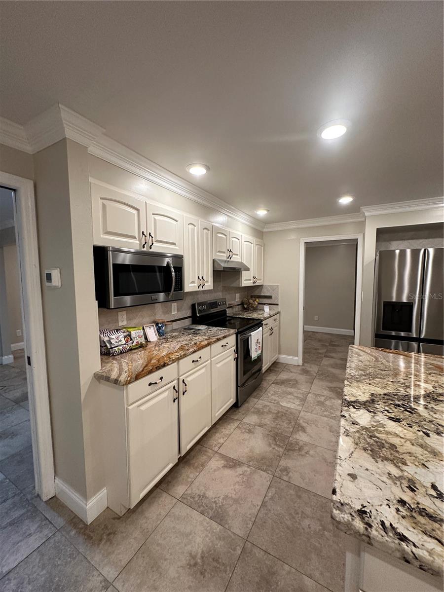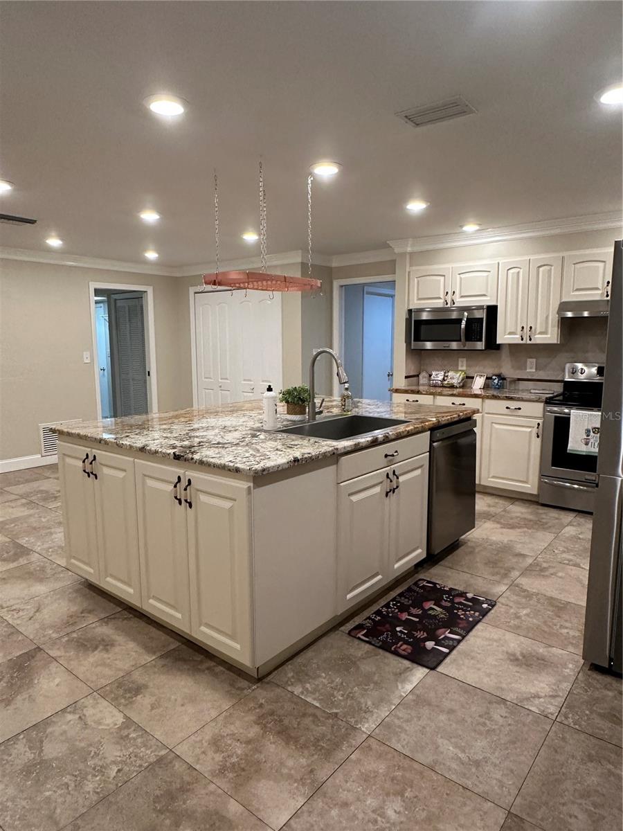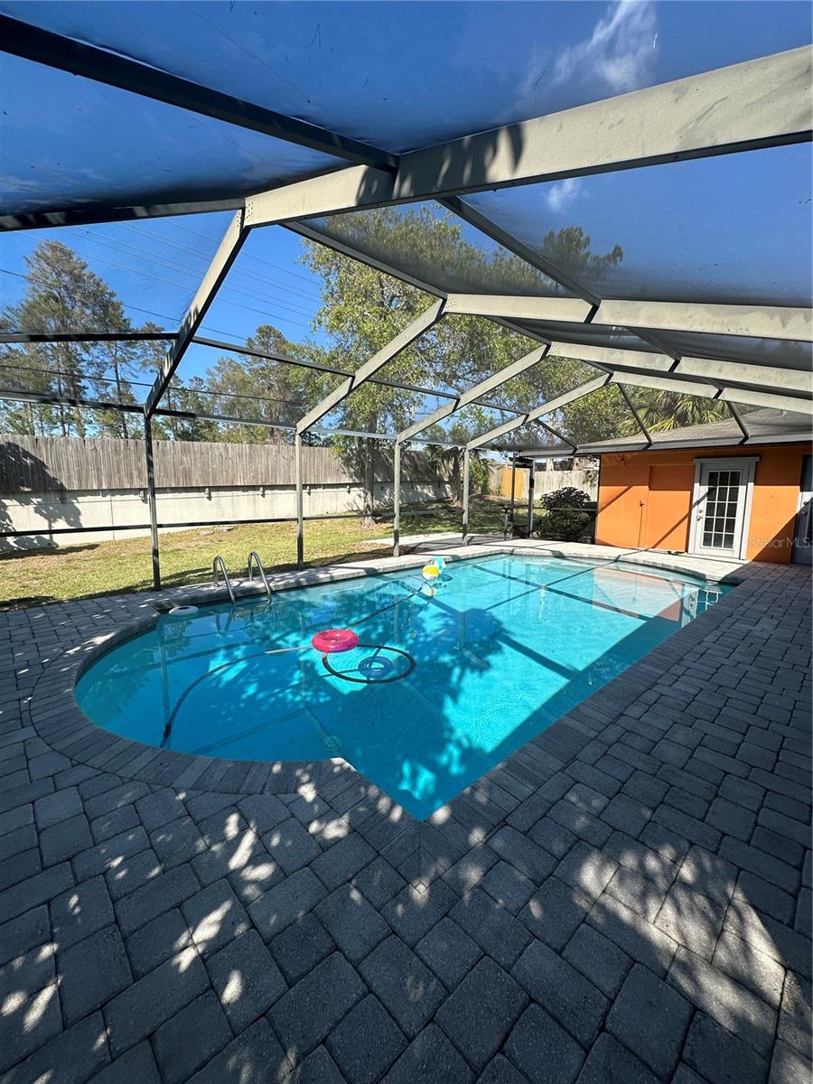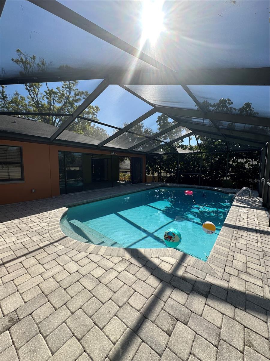 GORGEOUS UPDATED POOL HOME LOCATED IN THE HIGHLY DESIRED COMMUNITY OF WESTLAKE VILLAGE. Large 3 bedroom, 2 bath, 2 car garage pool home situated on .26 acres, All Led lighting and smart switches, crown molding, MASSIVE KITCHEN with custom cabinets and pull-out drawers, granite counter tops, coffee/wine bar, Stainless Steel appliances, Fridge New in 2024, dishwasher new in 2023, huge island for baking and entertaining with stainless steel farm sink plus large closet pantry, Master bath has dual sinks, large walk-in shower with rain shower head and walk in closet plus extra storage, has its own view of pool and entrance to patio/pool area. Second and third bedroom both have large closet space, second bath and bonus room have access to pool, Pool is screened with brick pavers, plus extra outside paver patio for BBQ, pool can be heated, has great extra entertaining space with paver patio off Kitchen, with access from dining room and master bedroom all under cover. PALM HARBOR SCHOOLS, community has playground, pool, close to shopping Publix, Walmart. THE HOT SUMMER IS JUST AROUND THE CORNER COME AND GET YOUR OWN FLORIDA OASIS!