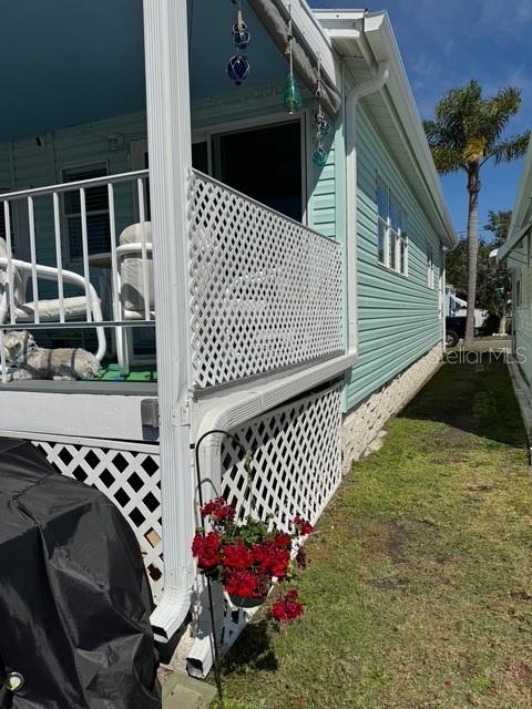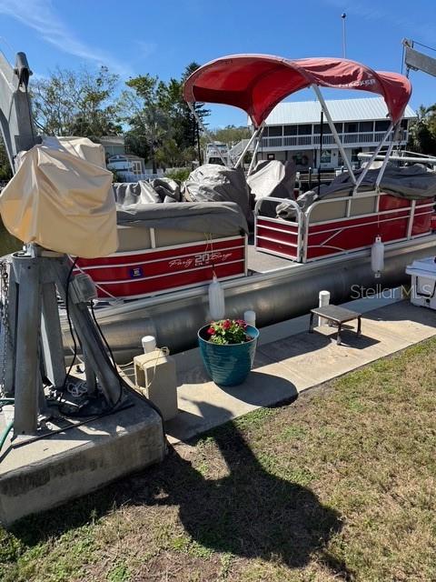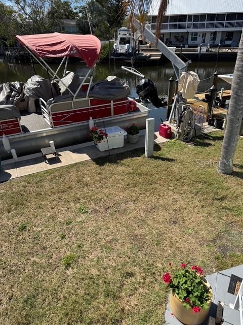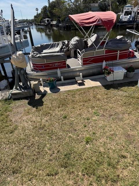 This stunning waterfront home on Avery Bayou is located in a peaceful 55+ community with a low HOA fee that covers water, sewer, trash, lawn care, and tree trimming. Experience the best of coastal living with davits for up to a 24-foot boat, or, with approval, you can install a dock for a larger boat. Enjoy breathtaking sunrises and sunsets right from your home! The open floor plan features soaring vaulted ceilings and an abundance of windows, filling the home with natural light. There’s ample storage throughout, including a raised 42-inch foundation with plenty of space underneath. The community offers fantastic amenities, including a heated pool with a stunning view of the Gulf, a beautiful clubhouse, and a community room. Residents can also enjoy shuffleboard, fishing from the dock, and easy access to the community boat ramp. Plus, the Pinellas Trail is conveniently located right outside the community. The home has been freshly painted and boasts a well-designed layout that maximizes the beautiful views. The new Pergo flooring throughout adds a modern touch, and the oversized closet in the bedroom, along with the spacious bathroom, offers plenty of storage. A new mini-split system was installed in 2024, ensuring comfort year-round. Relax on the back porch, which is covered and overlooks the serene bayou, or enjoy the front porch, also covered. This home comes fully furnished, ready for you to move in and enjoy the best of waterfront living!