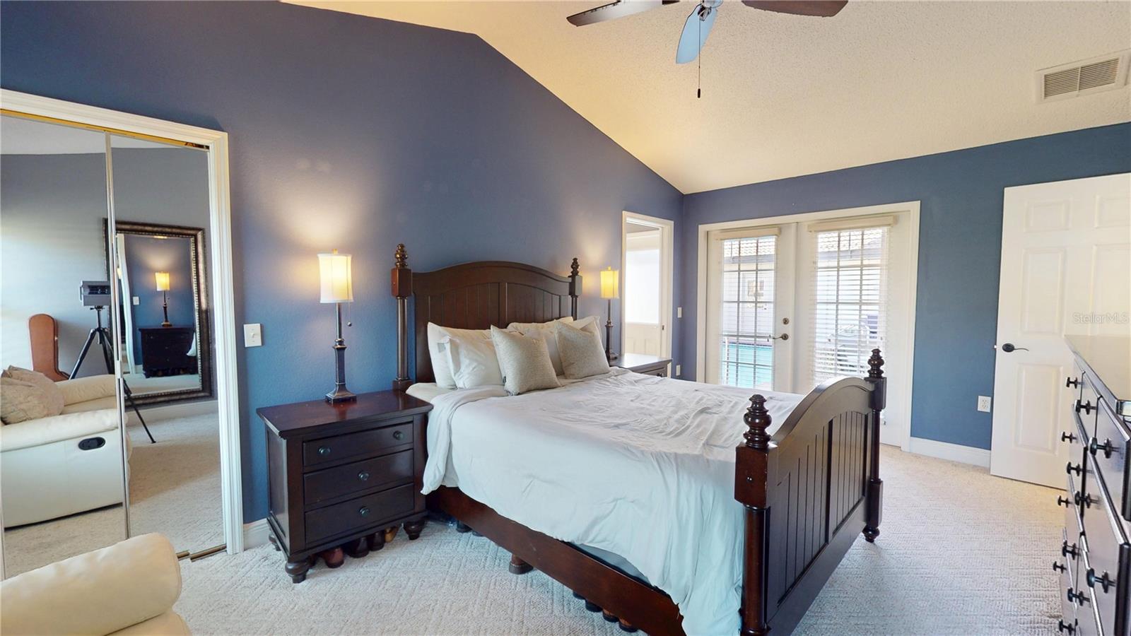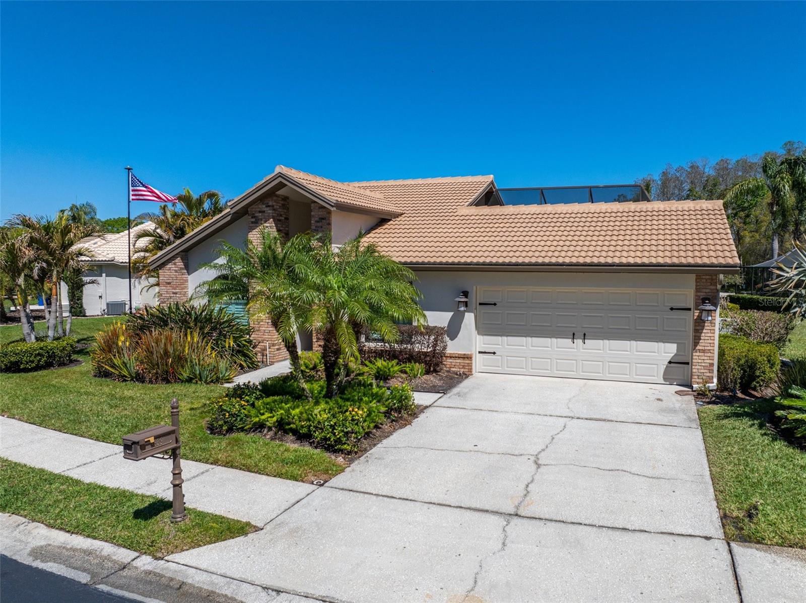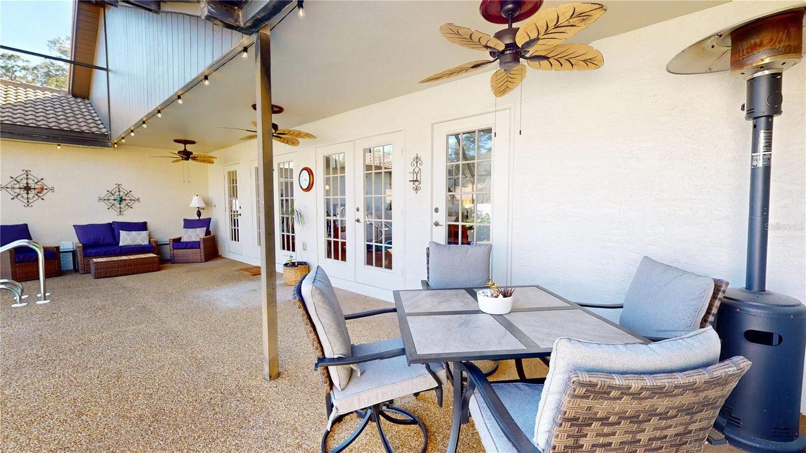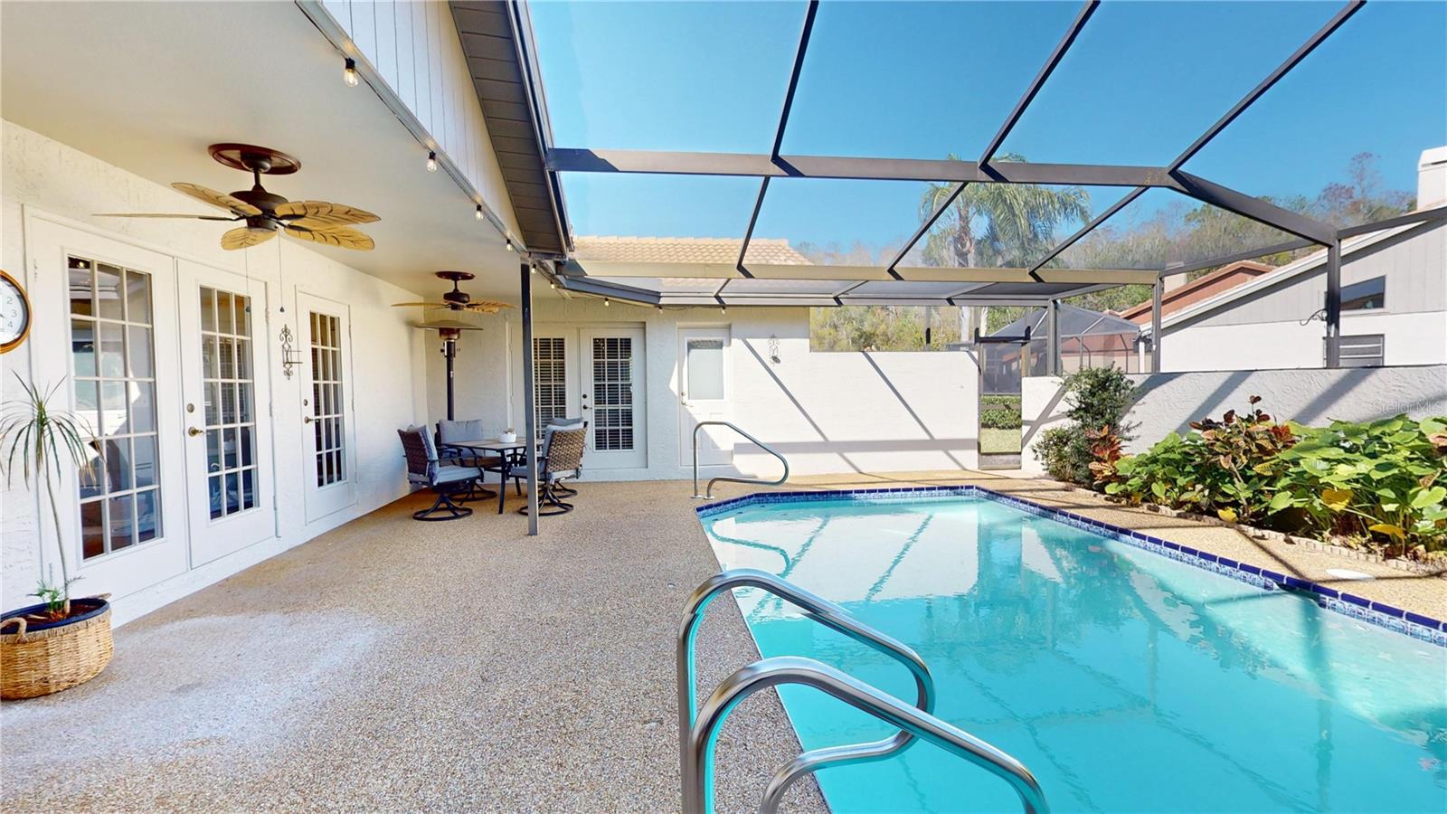 Maintenance free living is waiting in this gorgeous home located in highly desirable Chattam Landing! Natural light flows easily through the rooms with cathedral ceilings and French doors to the private, outdoor pool. The kitchen has been tastefully updated (June 2022) with quartz countertops, stainless steel appliances, and wood cabinets. Boasting 4 bedrooms (front bedroom is currently being used as an office) and two full baths, the use of space is amazing! The primary bedroom offers an ensuite with a walk-in shower, dual sinks, and private entrance to the pool and lanai area. Plantation shutters adorn the windows throughout the home. Recent upgrades include the tile roof (2018), water heater (2019), hurricane rated garage door (2021), and hurricane rated windows (2024). HVAC (2012) has been well maintained. WHOLE HOUSE GENERATOR that conveys with purchase. Chattam Landing HOA fees include lawn care, landscaping, and exterior maintenance of the home, all at a low monthly fee, and irrigation is well fed. Owners also enjoy the amenities of Ridgemoor, known for a variety of wildlife, a community park, tennis courts, and basketball courts. Please view our virtual tour at https://my.matterport.com/show/?m=wJN1zGLA7b6