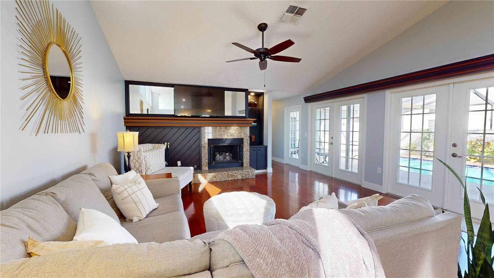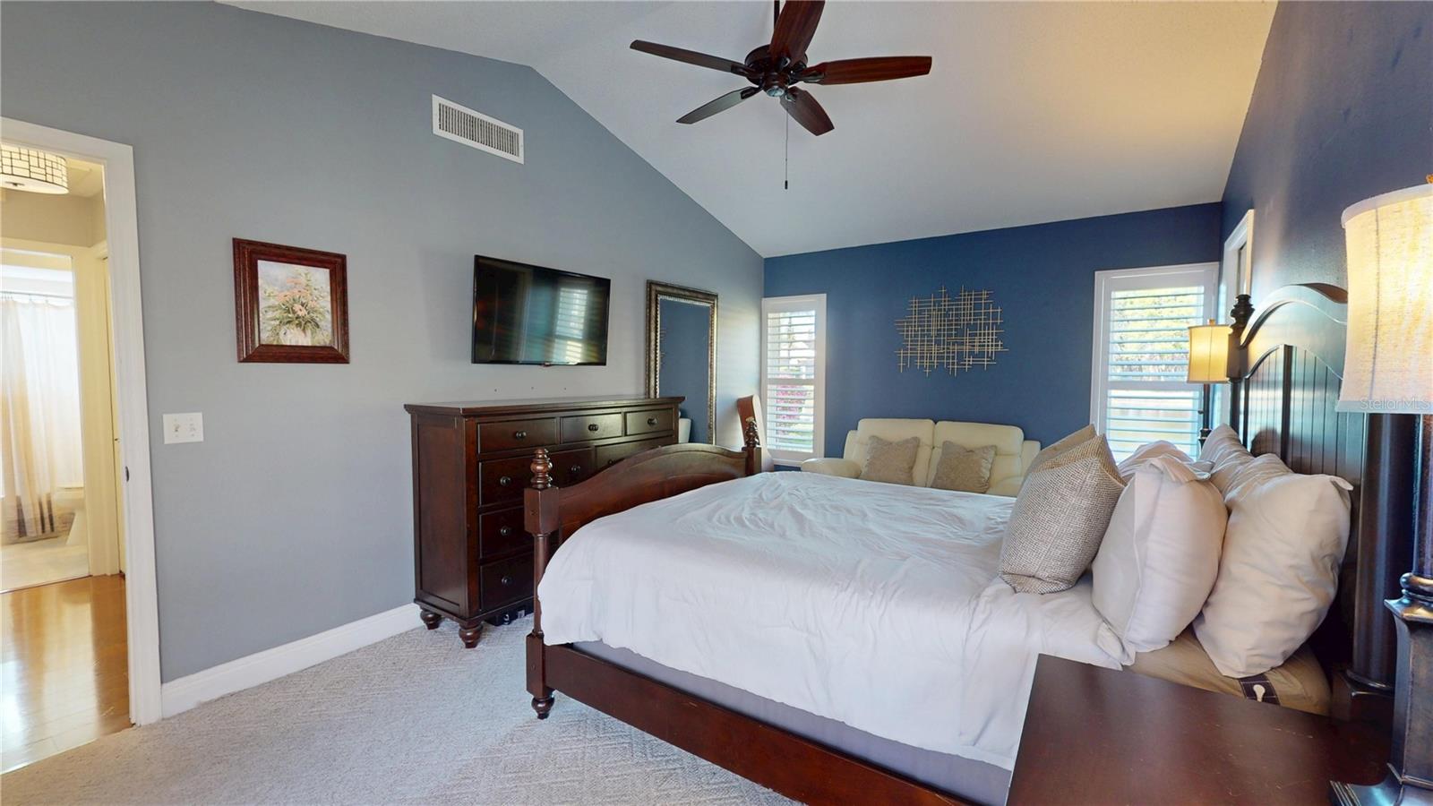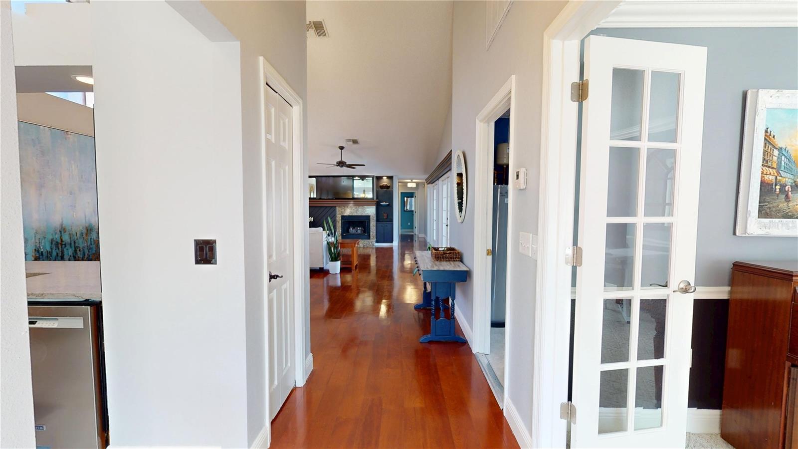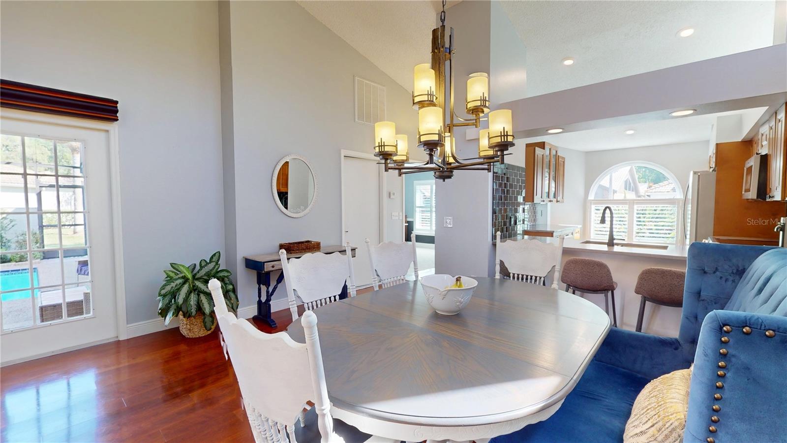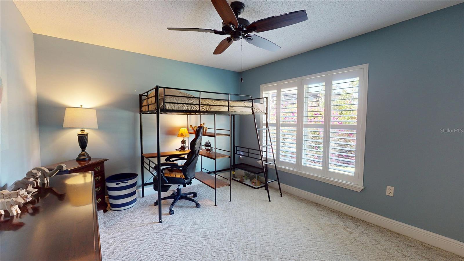 Maintenance free living is waiting in this gorgeous home located in highly desirable Chattam Landing! Natural light flows easily through the rooms with cathedral ceilings and French doors to the private, outdoor pool. The kitchen has been tastefully updated (June 2022) with quartz countertops, stainless steel appliances, and wood cabinets. Boasting 4 bedrooms (front bedroom is currently being used as an office) and two full baths, the use of space is amazing! The primary bedroom offers an ensuite with a walk-in shower, dual sinks, and private entrance to the pool and lanai area. Plantation shutters adorn the windows throughout the home. Recent upgrades include the tile roof (2018), water heater (2019), hurricane rated garage door (2021), and hurricane rated windows (2024). HVAC (2012) has been well maintained. WHOLE HOUSE GENERATOR that conveys with purchase. Chattam Landing HOA fees include lawn care, landscaping, and exterior maintenance of the home, all at a low monthly fee, and irrigation is well fed. Owners also enjoy the amenities of Ridgemoor, known for a variety of wildlife, a community park, tennis courts, and basketball courts. Please view our virtual tour at https://my.matterport.com/show/?m=wJN1zGLA7b6