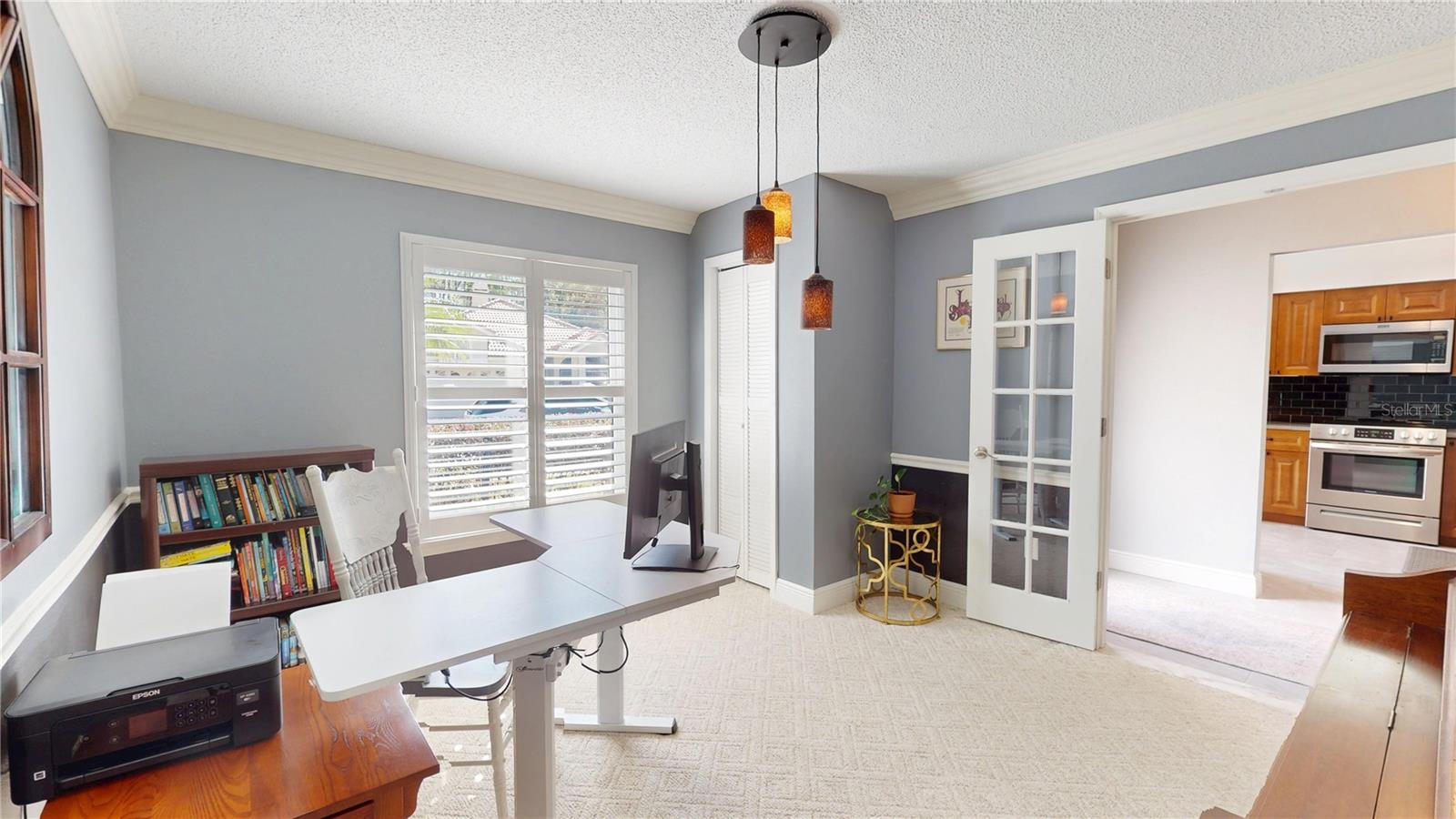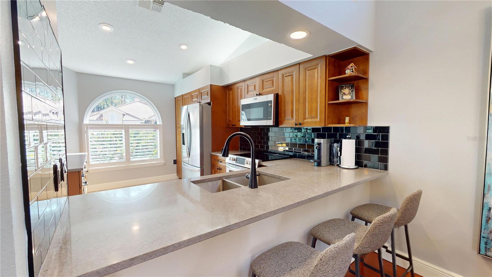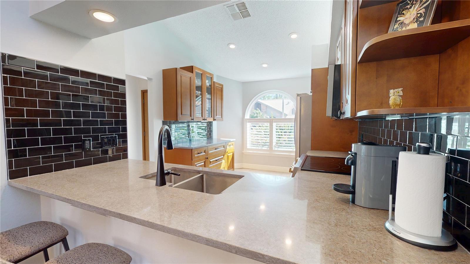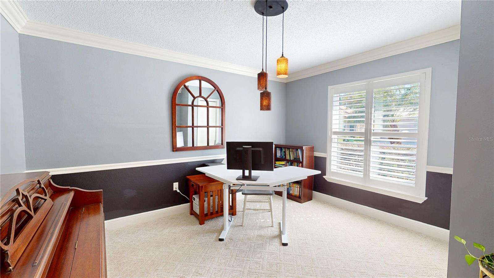 Maintenance free living is waiting in this gorgeous home located in highly desirable Chattam Landing! Natural light flows easily through the rooms with cathedral ceilings and French doors to the private, outdoor pool. The kitchen has been tastefully updated (June 2022) with quartz countertops, stainless steel appliances, and wood cabinets. Boasting 4 bedrooms (front bedroom is currently being used as an office) and two full baths, the use of space is amazing! The primary bedroom offers an ensuite with a walk-in shower, dual sinks, and private entrance to the pool and lanai area. Plantation shutters adorn the windows throughout the home. Recent upgrades include the tile roof (2018), water heater (2019), hurricane rated garage door (2021), and hurricane rated windows (2024). HVAC (2012) has been well maintained. WHOLE HOUSE GENERATOR that conveys with purchase. Chattam Landing HOA fees include lawn care, landscaping, and exterior maintenance of the home, all at a low monthly fee, and irrigation is well fed. Owners also enjoy the amenities of Ridgemoor, known for a variety of wildlife, a community park, tennis courts, and basketball courts. Please view our virtual tour at https://my.matterport.com/show/?m=wJN1zGLA7b6
