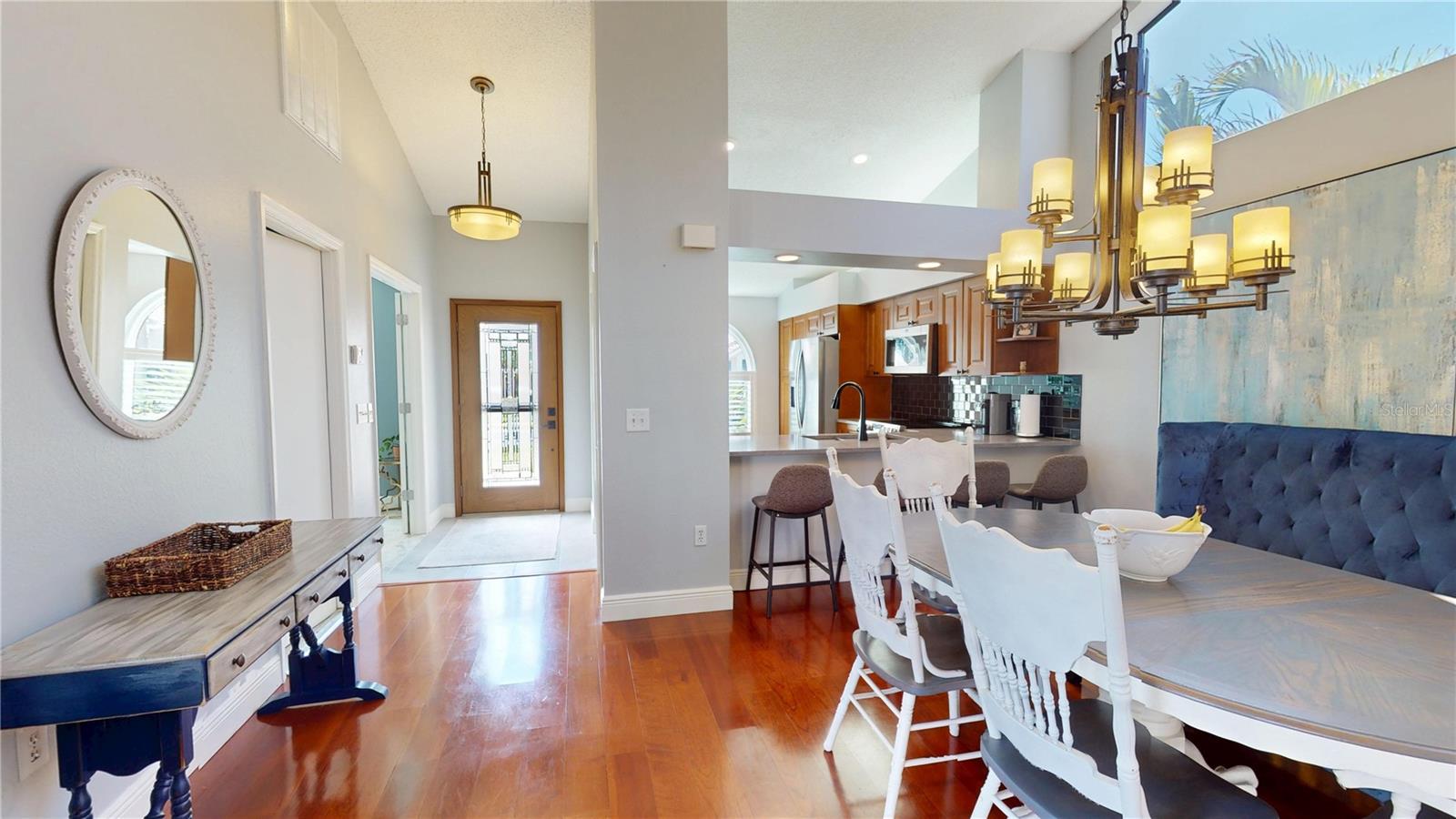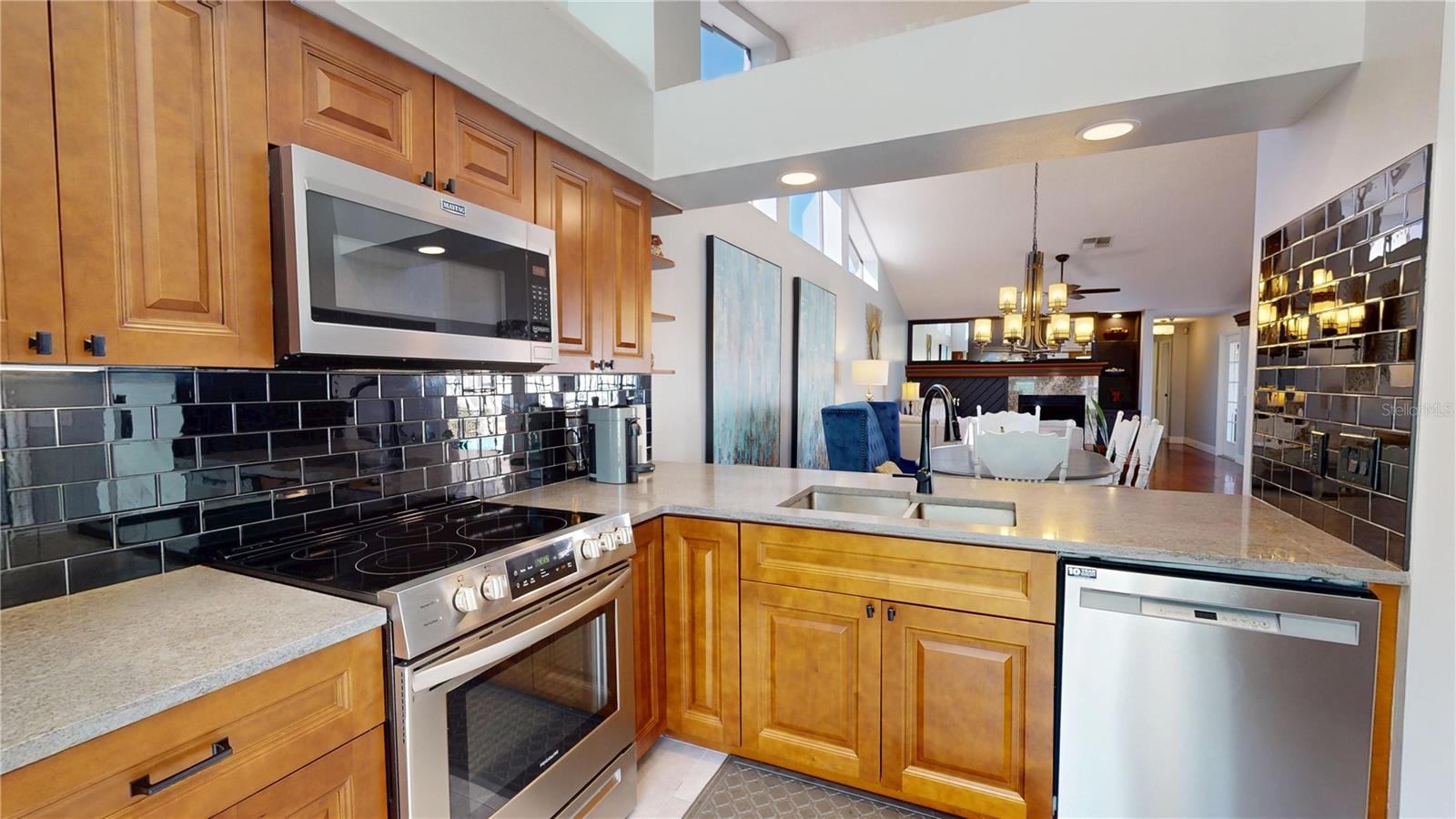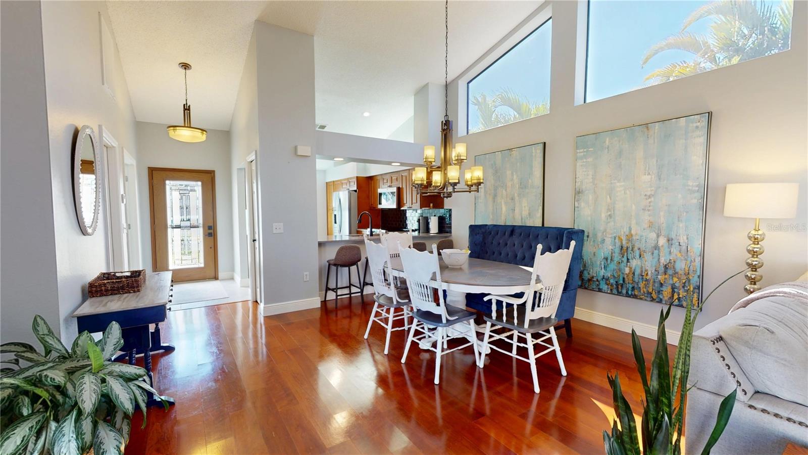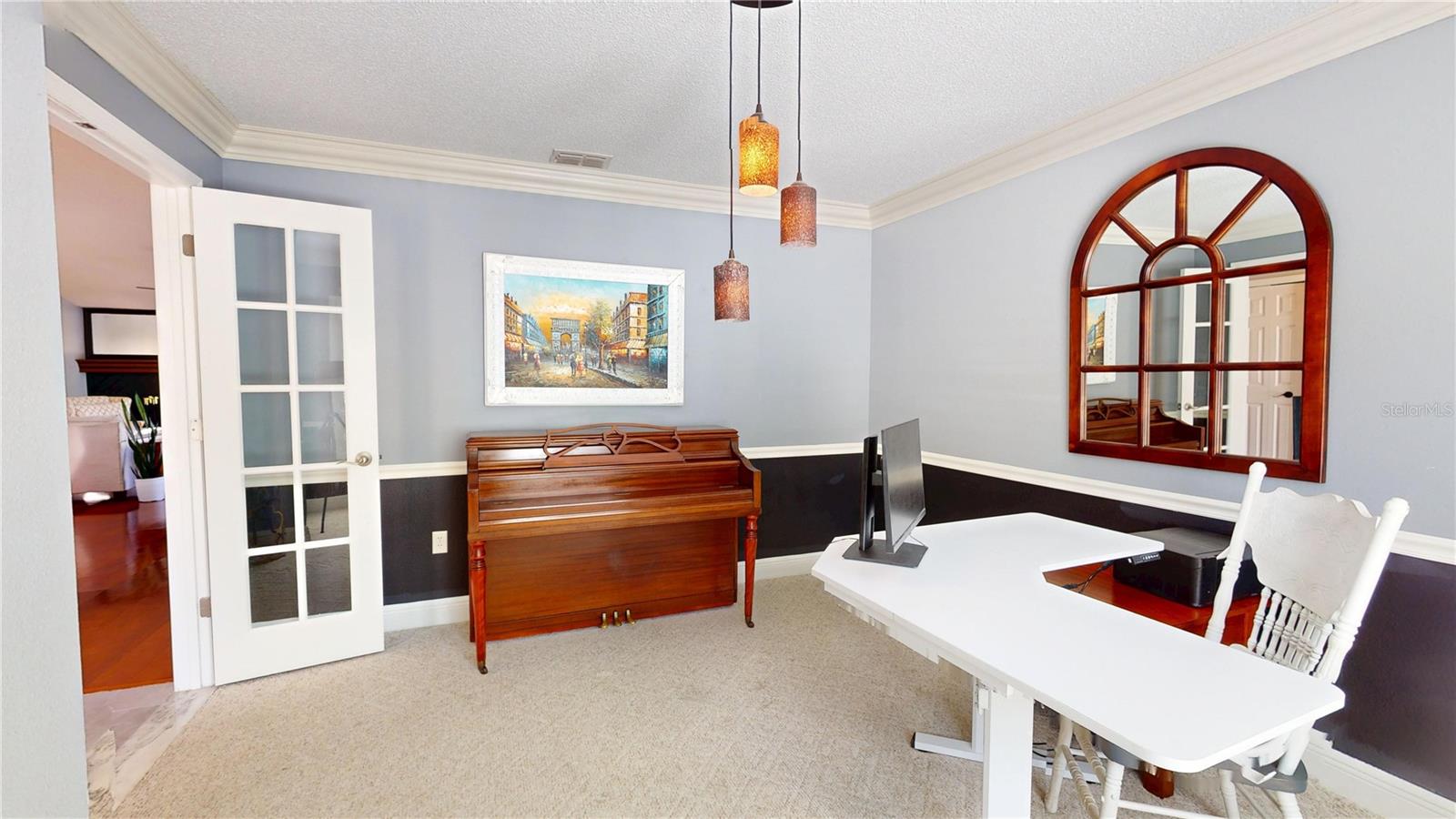 Maintenance free living is waiting in this gorgeous home located in highly desirable Chattam Landing! Natural light flows easily through the rooms with cathedral ceilings and French doors to the private, outdoor pool. The kitchen has been tastefully updated (June 2022) with quartz countertops, stainless steel appliances, and wood cabinets. Boasting 4 bedrooms (front bedroom is currently being used as an office) and two full baths, the use of space is amazing! The primary bedroom offers an ensuite with a walk-in shower, dual sinks, and private entrance to the pool and lanai area. Plantation shutters adorn the windows throughout the home. Recent upgrades include the tile roof (2018), water heater (2019), hurricane rated garage door (2021), and hurricane rated windows (2024). HVAC (2012) has been well maintained. WHOLE HOUSE GENERATOR that conveys with purchase. Chattam Landing HOA fees include lawn care, landscaping, and exterior maintenance of the home, all at a low monthly fee, and irrigation is well fed. Owners also enjoy the amenities of Ridgemoor, known for a variety of wildlife, a community park, tennis courts, and basketball courts. Please view our virtual tour at https://my.matterport.com/show/?m=wJN1zGLA7b6