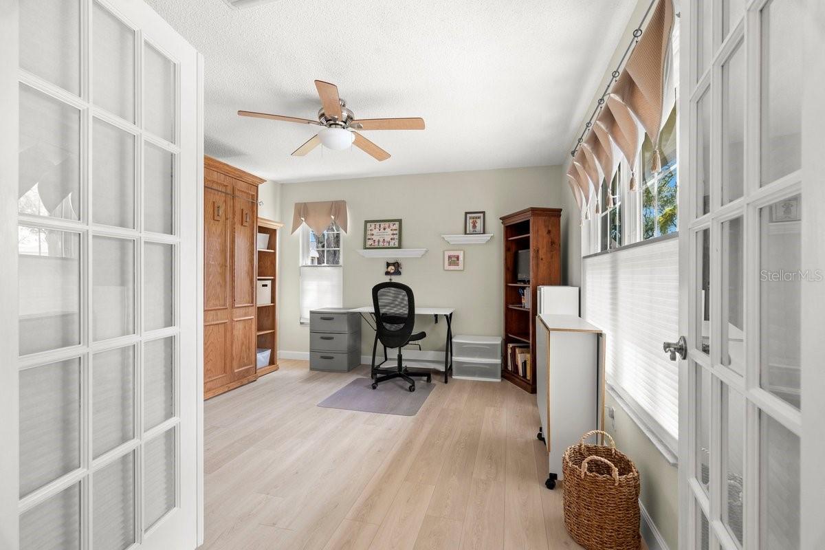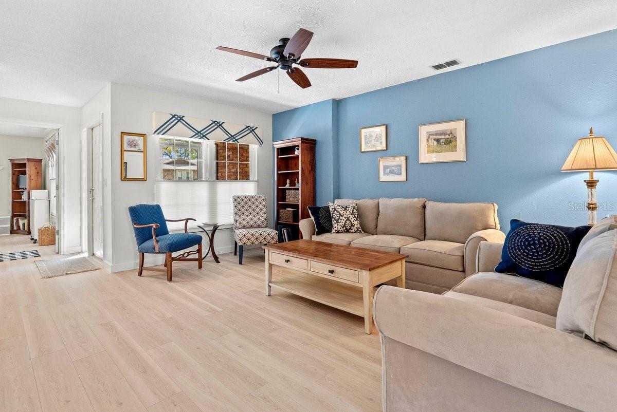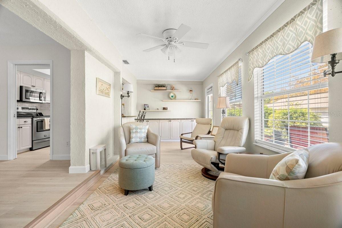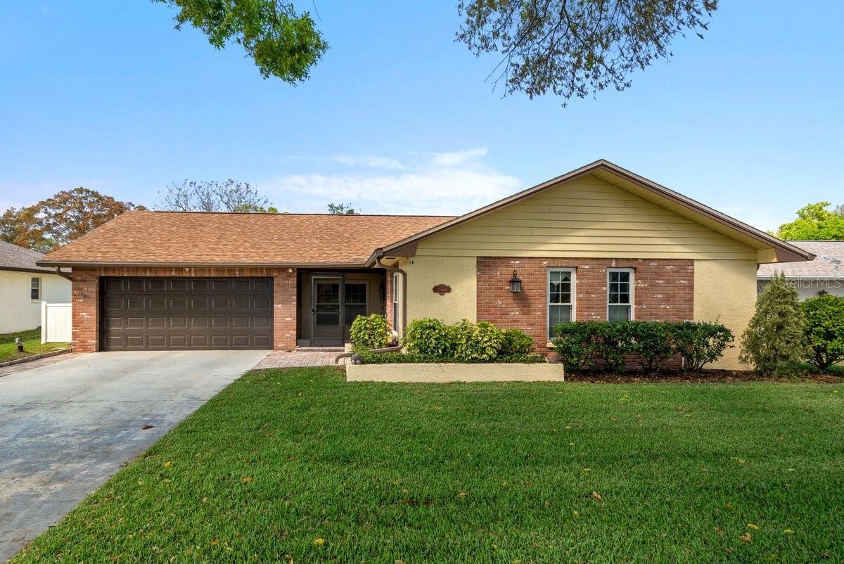 This immaculate, move-in ready 3/2/2 home can be found in the sought-after retirement community of Highland Lakes. It sits on a nicely landscaped .18 acre lot in a NON flood zone. It offers a captivating curb appeal with underground utilities and countless updates. The floor plan includes the following: front screened porch, welcoming foyer, large formal living room, adjacent dining area, updated galley kitchen with breakfast nook, bright Florida room, master suite with private bath and walk-in closet, guest bedroom with walk-in closet, guest or hall bath, office or 3rd bedroom with Murphy bed, den or study, laundry room, 2-car garage, PLUS a beautifully paved 34' rear patio PERFECT for your morning coffee and evening glass of wine. The abundant indoor and outdoor living spaces make this home great for entertaining. Property also features the following updates, KITCHEN: refinished cabinets with hardware, granite counters, backsplash, stainless double sink, faucet, and stainless steel appliances, MASTER BATH: vanity, faucets, mirrors, toilet, showerhead, and custom tiled shower with glass enclosure, HALL BATH: vanity, faucet, mirror, toilet, showerhead, and custom tiled walk-in shower, LAUNDRY ROOM: shaker cabinets with hardware, laundry tub, washer & dryer, INTERIOR: luxury vinyl floors, 6-panel doors with hardware, sliding doors, French doors, window shades, valences, vertical blinds, ceiling fans, light fixtures, newly painted garage floor, PLUS a new water heater (2025), EXTERIOR: hurricane rated garage door (2024), shingle roof (2022), paved patio & porch, and assorted tropical plants & shrubs... Highland Lakes is a meticulously maintained, active 55+ community. Membership includes: golf for two at the 27-hole executive course / NO greens fees, resort style temperature controlled pool, pavilion, whirlpool, tennis & pickleball courts, shuffleboard, bocce, and cornhole. Main clubhouse hosts countless indoor activities: bingo, cards, arts & crafts, ceramics, stained glass & oil painting, sewing, photography, fitness classes, auditorium shows, dances, movies, wood shop, library w/computers, book club, billiards, etc... There's a large variety of clubs and social events. The Lodge on Lake Tarpon is host to social gatherings and activities and includes a heated pool, picnic area with grills, horseshoe pit, fishing pier and dock with free pontoon tours of Lake Tarpon. There's also boat & RV storage for a nominal fee. Home is convenient to restaurants, shopping hubs, Gulf Beaches, Historic Tarpon Springs, Delightful Dunedin, Eclectic Safety Harbor, and TIA Airport. This is a MUST SEE for buyers seeking a move-in ready home with an active and vibrant lifestyle this property conveys.