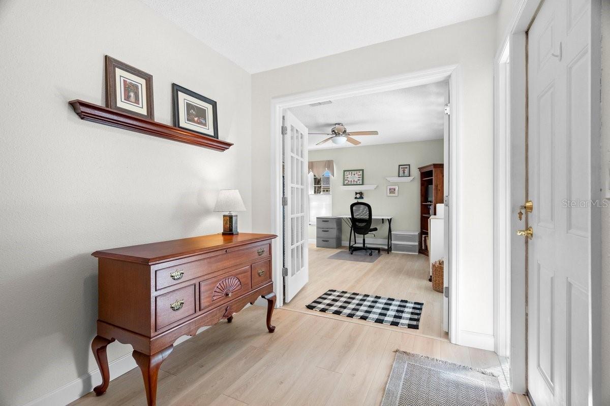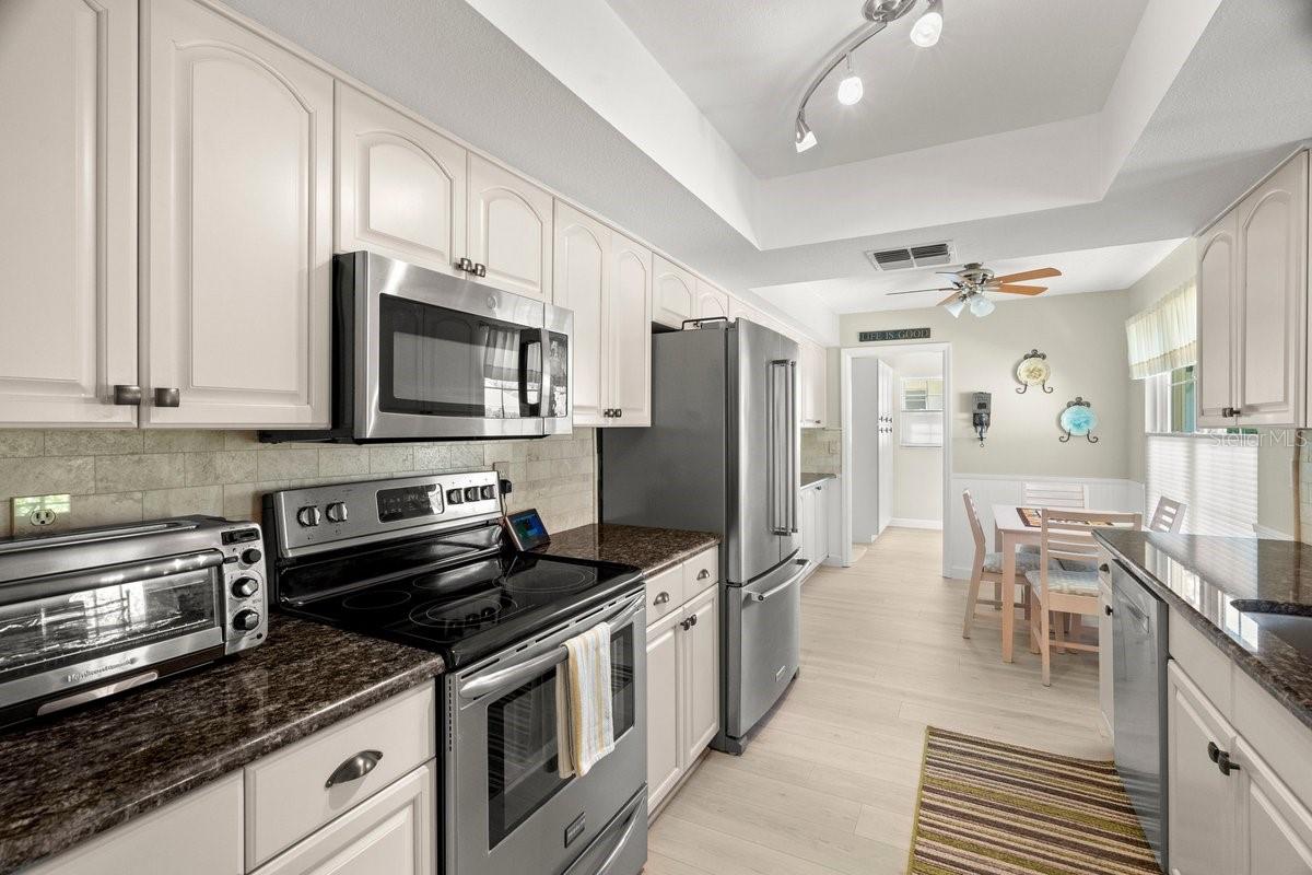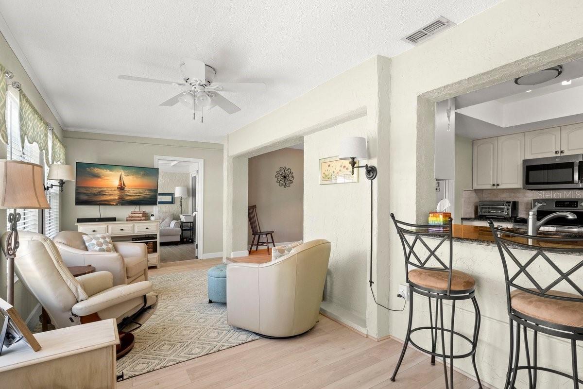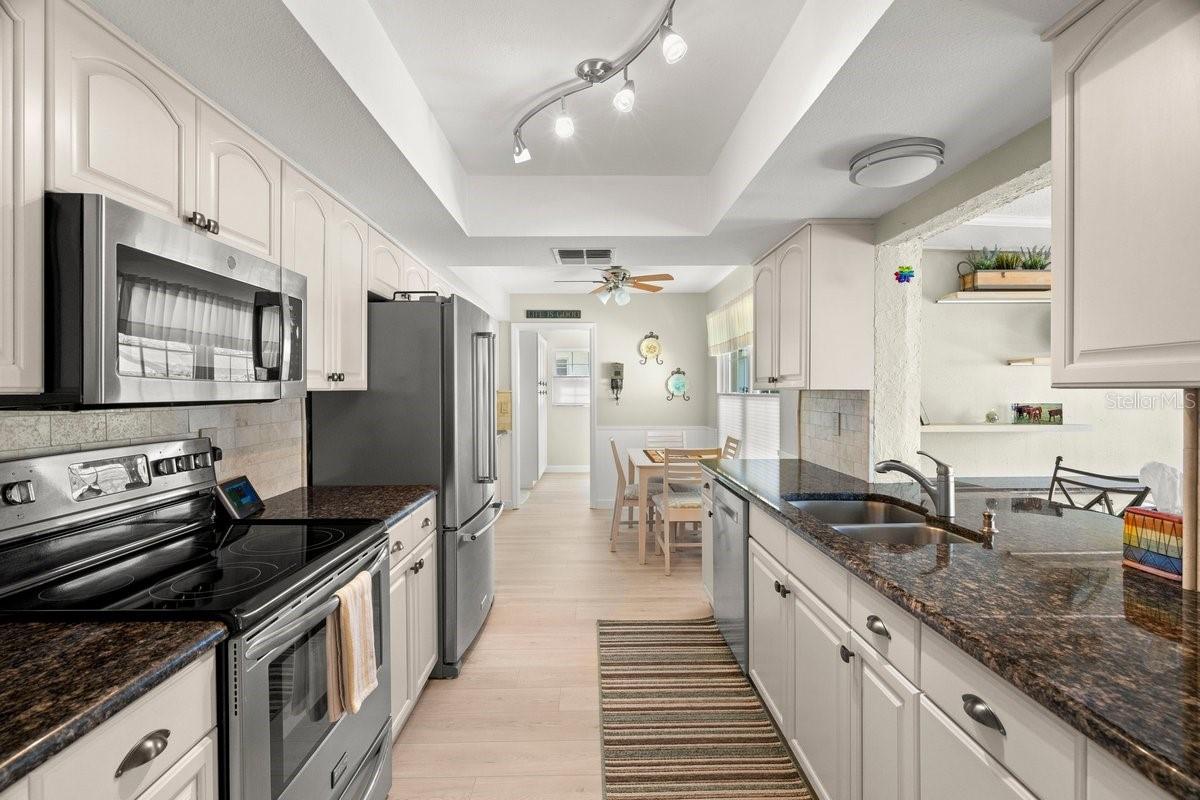 This immaculate, move-in ready 3/2/2 home can be found in the sought-after retirement community of Highland Lakes. It sits on a nicely landscaped .18 acre lot in a NON flood zone. It offers a captivating curb appeal with underground utilities and countless updates. The floor plan includes the following: front screened porch, welcoming foyer, large formal living room, adjacent dining area, updated galley kitchen with breakfast nook, bright Florida room, master suite with private bath and walk-in closet, guest bedroom with walk-in closet, guest or hall bath, office or 3rd bedroom with Murphy bed, den or study, laundry room, 2-car garage, PLUS a beautifully paved 34' rear patio PERFECT for your morning coffee and evening glass of wine. The abundant indoor and outdoor living spaces make this home great for entertaining. Property also features the following updates, KITCHEN: refinished cabinets with hardware, granite counters, backsplash, stainless double sink, faucet, and stainless steel appliances, MASTER BATH: vanity, faucets, mirrors, toilet, showerhead, and custom tiled shower with glass enclosure, HALL BATH: vanity, faucet, mirror, toilet, showerhead, and custom tiled walk-in shower, LAUNDRY ROOM: shaker cabinets with hardware, laundry tub, washer & dryer, INTERIOR: luxury vinyl floors, 6-panel doors with hardware, sliding doors, French doors, window shades, valences, vertical blinds, ceiling fans, light fixtures, newly painted garage floor, PLUS a new water heater (2025), EXTERIOR: hurricane rated garage door (2024), shingle roof (2022), paved patio & porch, and assorted tropical plants & shrubs... Highland Lakes is a meticulously maintained, active 55+ community. Membership includes: golf for two at the 27-hole executive course / NO greens fees, resort style temperature controlled pool, pavilion, whirlpool, tennis & pickleball courts, shuffleboard, bocce, and cornhole. Main clubhouse hosts countless indoor activities: bingo, cards, arts & crafts, ceramics, stained glass & oil painting, sewing, photography, fitness classes, auditorium shows, dances, movies, wood shop, library w/computers, book club, billiards, etc... There's a large variety of clubs and social events. The Lodge on Lake Tarpon is host to social gatherings and activities and includes a heated pool, picnic area with grills, horseshoe pit, fishing pier and dock with free pontoon tours of Lake Tarpon. There's also boat & RV storage for a nominal fee. Home is convenient to restaurants, shopping hubs, Gulf Beaches, Historic Tarpon Springs, Delightful Dunedin, Eclectic Safety Harbor, and TIA Airport. This is a MUST SEE for buyers seeking a move-in ready home with an active and vibrant lifestyle this property conveys.