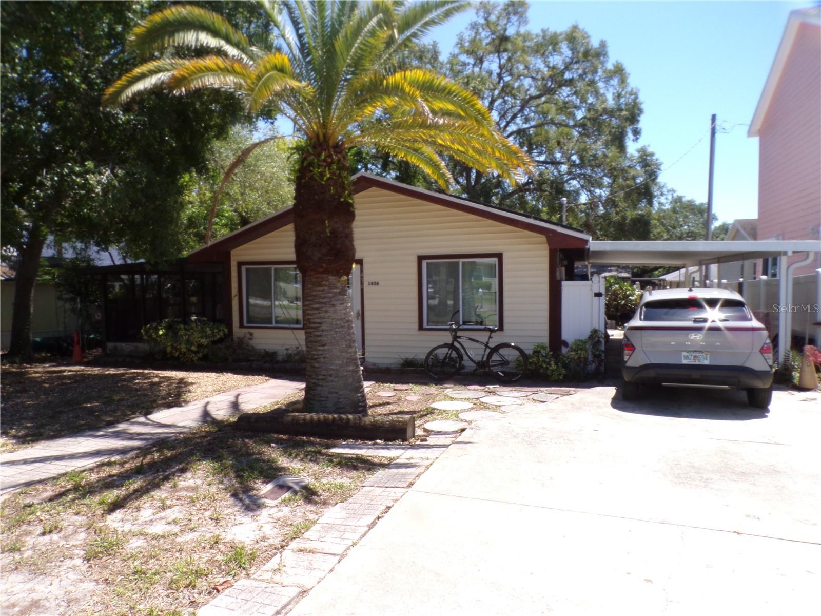 Outstanding Palm Harbor location on this adorable 3-bedroom bungalow full of charm and potential, ready to become the home you’ve been searching for and with a little vision this delightful bungalow exudes warmth and character, offering the perfect blend of vintage charm and modern convenience. A spacious primary suite addition serves as a peaceful retreat, featuring a generous sized bedroom, huge bedroom sized walk-in closet and an en-suite bath with a large walk-in shower and dual vanities. The inviting living room, complete with a cozy fireplace, sets the tone for relaxed evenings, while the updated kitchen boasts classic shaker style cabinetry, granite countertops, and stainless-steel appliances, making it both charming and functional. A separate family room offers additional space and can easily double as a third bedroom, providing versatility for your needs. Step outside to discover a screened-in porch and two additional patios/decks, perfect for sipping morning coffee or hosting family gatherings. A separate 400 + sq ft building in the backyard offers several possibilities with 50 amp electrical service and can also be tied into the nearby main utilities plumbing line. Thoughtfully equipped with a 2023 whole-house solar system in which will be paid in full by the seller, this home enjoys remarkably low electric bills, in addition a 15,000-watt generator ensures uninterrupted comfort during storms. With an AC system replaced in 2021, a roof updated in 2015, and double-pane windows and doors added the same year, this home is as practical as it is charming. Home is located in the outstanding Palm Harbor School district featuring Palm Harbor University High School, Palm Harbor Middle school and Ozona Elementary. Home is in a no flood zone and non-evacuation zone. No issues from the recent hurricanes. Nestled on a quiet street that's golf cart friendly yet just minutes from Historical downtown Palm Harbor, local shops, cozy cafés, and the beautiful Gulf beaches, this bungalow can be the perfect place to call home. Schedule your tour today and experience the warmth and possibilities for yourself.