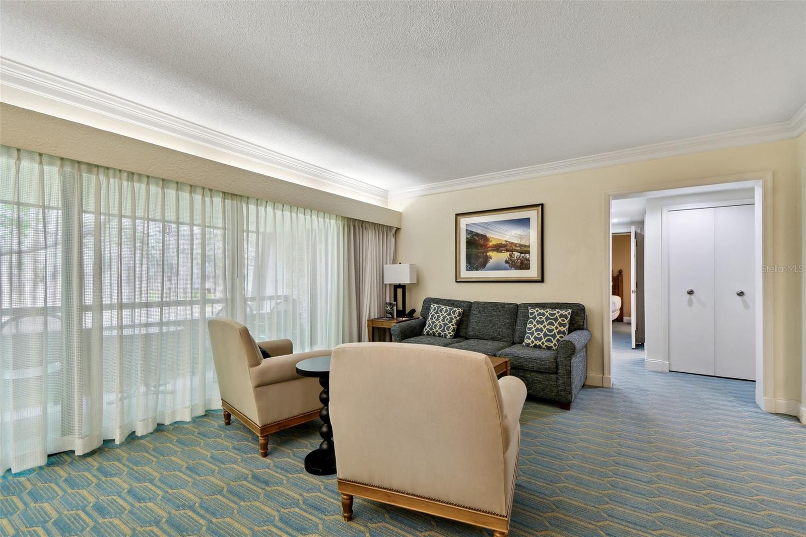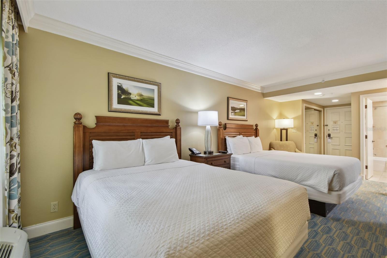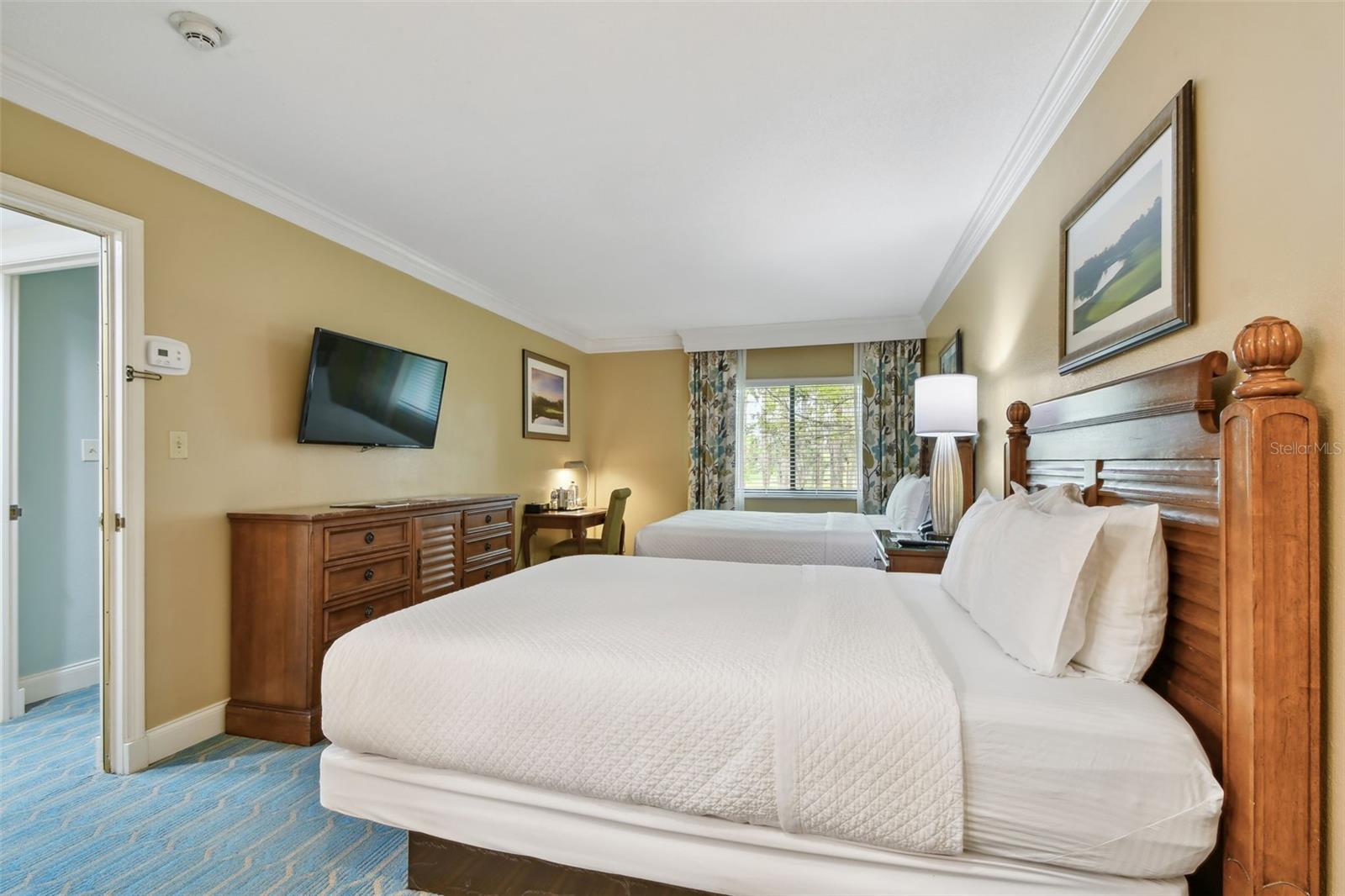 Two Bedroom/Two Bath "C" Unit - ISLAND GOLF COURSE VIEW, this beautifully appointed top floor unit in a two-story lodge, offers an interior renovated to the Resort's newest rental pool standards. Primary bedroom with two Queen size beds has a secondary door to the lodge hallway; Guest bedroom with Queen size bed with guest bath across the hall. Convenient coinless laundry room nearby. Just steps away from the Cypress lap swimming pool and the full-service SPA and Fitness center. Several levels of club memberships are available for purchase to participate in the Innisbrook amenities. Innisbrook condo owners have the option to participate in the Resort’s optional Rental Pool program (condos in lodges 1-24 only). Situated on 800 wooded acres of rolling hills and 70 acres of lakes, Innisbrook, A Salamander Golf and Spa Resort is located just 25 minutes from Tampa International Airport. Innisbrook features sixty-three holes of golf, including the PGA’s Valspar Championship Copperhead course, 280spacious guest suites and rooms, 5 restaurants and 3 bars including the FAIRWAYS COFFEE AND WINE BAR featuring STARBUCKS coffee, 10 Har-Tru TENNIS courts, 4 Hard-court PICKLEBALL Courts, 3 Indoor RACQUETBALL courts, a full-service Salamander SPA with 12 treatment rooms and Fitness Center, 6 Swimming POOL Complexes, and 2 Conference halls.