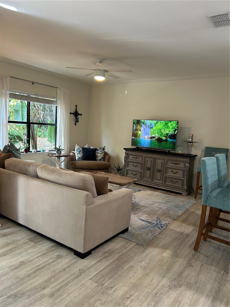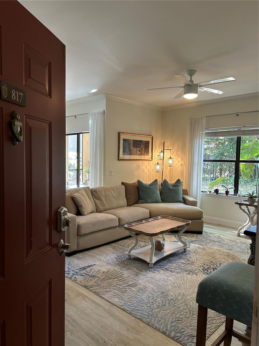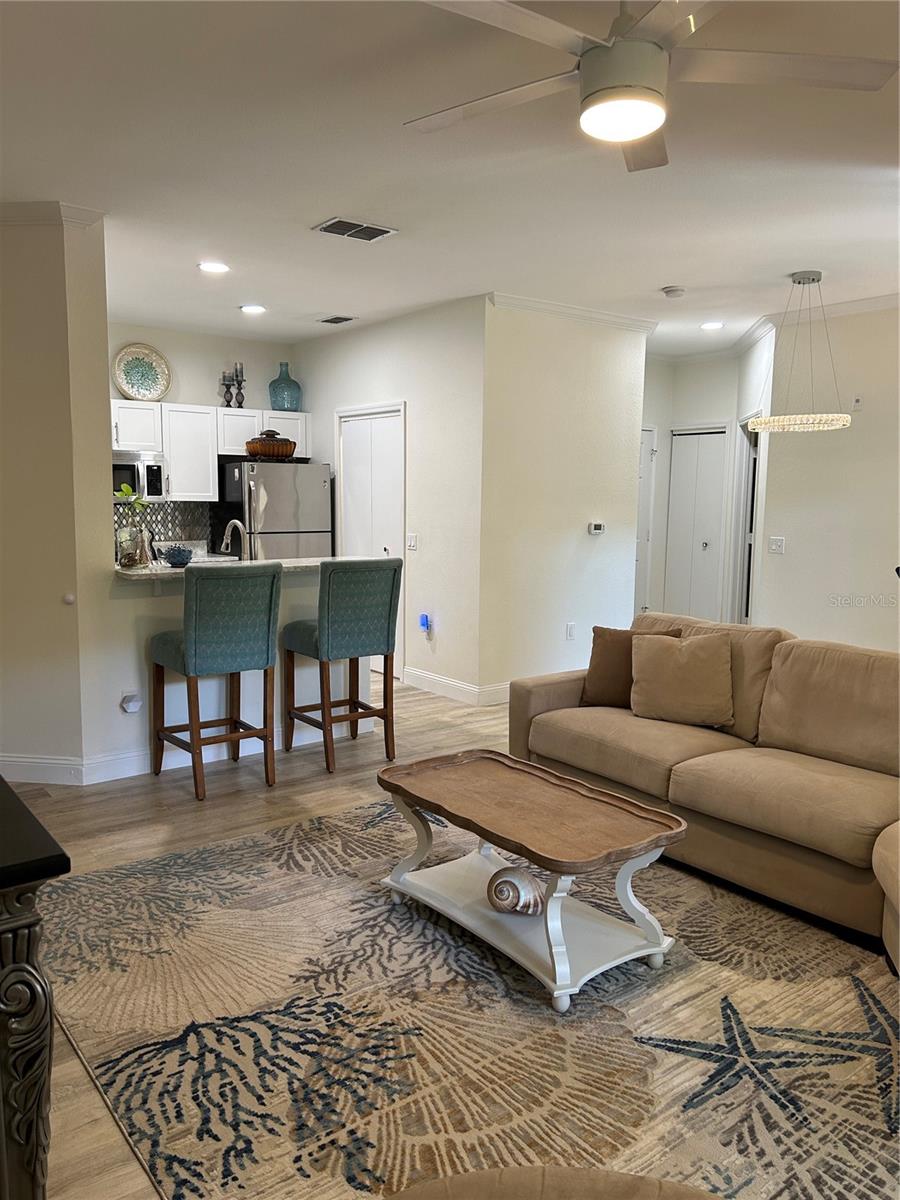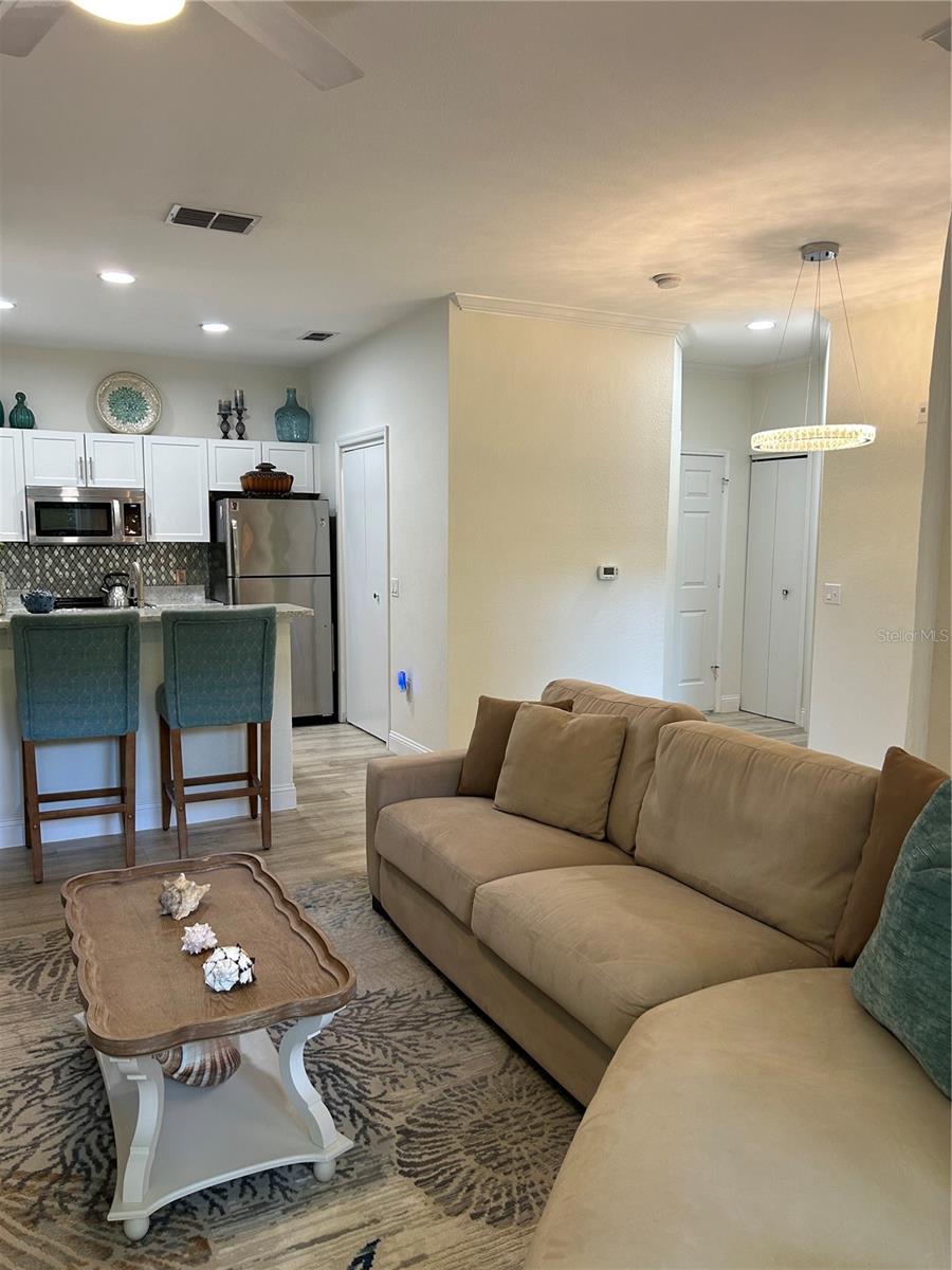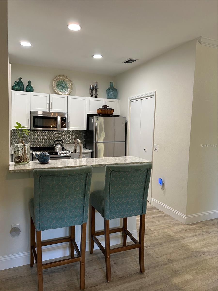 GATED Perfectly located clean, fresh, and bright 1st floor CORNER 1BR/1BTH unit in highly desirable Tuscany at Innisbrook Condo with its designated parking space. Full views of landscaped garden side of building from kitchen, living room, bedroom, and screened in patio. Home is move in ready – glorious kitchen Cambria Quartz counters and updated cabinets, professionally installed LVT throughout, water heater and Daikin 2 Ton A/C unit installed new in July of 2023. In unit laundry with washer and dryer that convey, LOW Monthly HOA which also includes internet, resort style amenities, access to two heated pools, one of which is a few steps from this unit and the other in adjacent part of the community. Beautifully landscaped with BBQ areas, dog park, ponds, tennis court, playground, fitness center, and more. Host friends and family in the guest suite at the club house nicely equipped with roomy space for small parties and gatherings, kitchen, business area and theater room. Near airports, beaches, Tarpon Springs, trails, parks and all the Tampa Bay area offers!