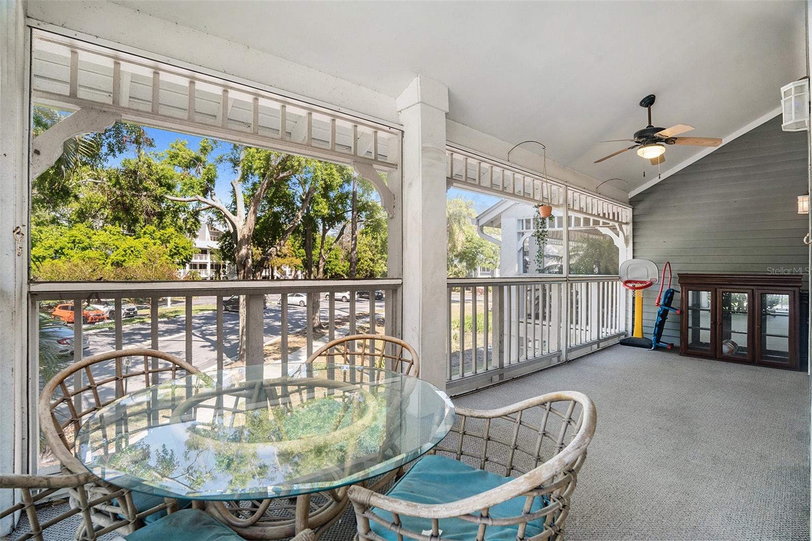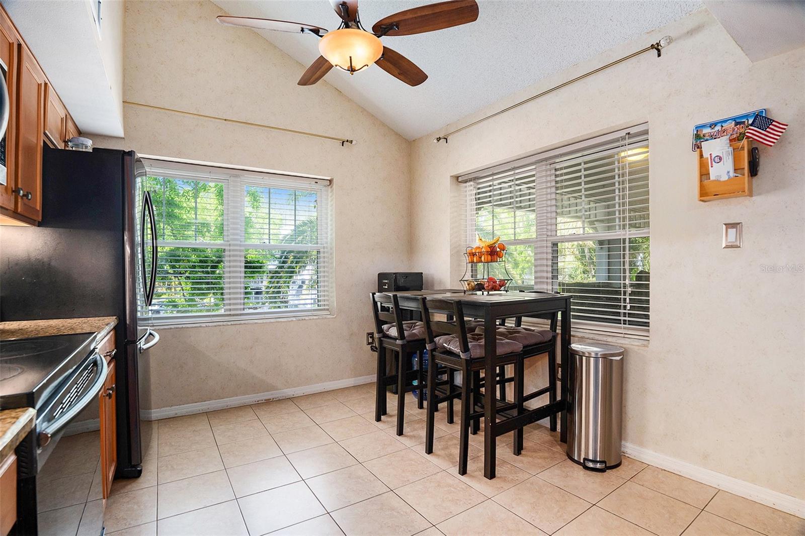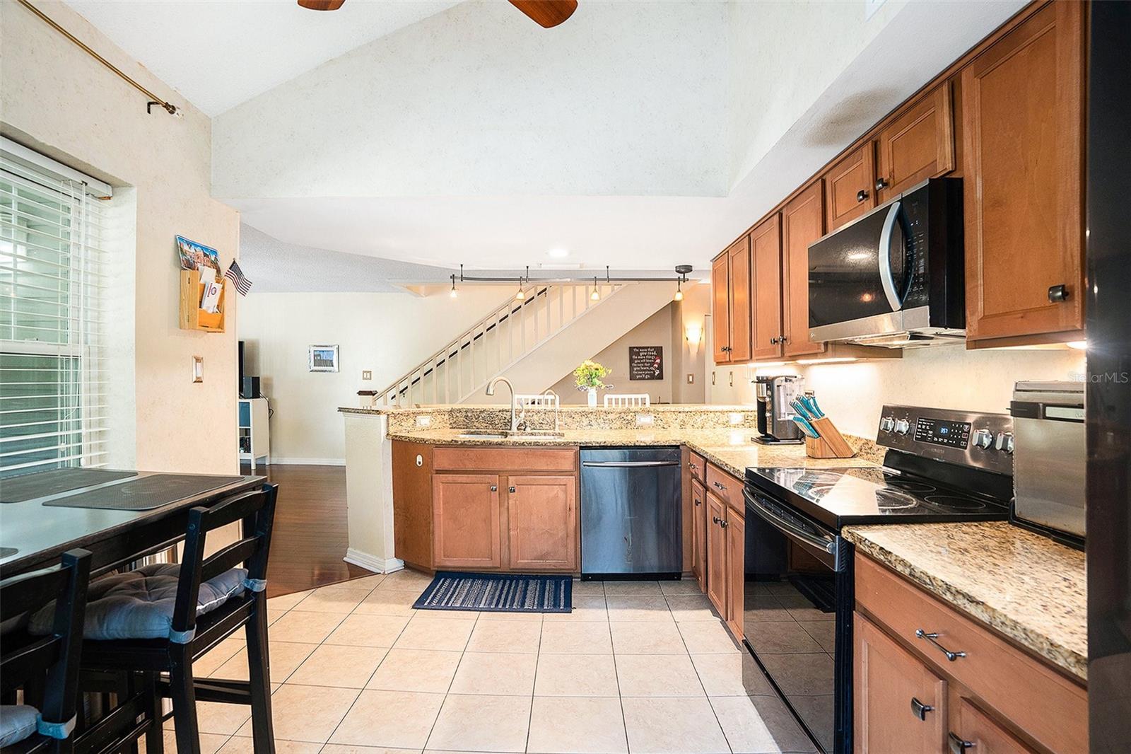 Welcome to this charming three-bedroom, three-bathroom end-unit condo in the desirable waterfront community of Dolly Bay in Palm Harbor. Situated on the second floor, this spacious home spans over 2,000 sq ft across three stories, providing the perfect balance of privacy and resort-style living. The building also features an elevator for easy access to the second floor. Upon entering, you'll be greeted by a welcoming foyer with a closet and an under-the-stairs nook for additional storage. The living room boasts beautiful wood floors and a large wrap-around balcony, fully screened to let you enjoy the Florida weather. Perfect for entertaining or relaxing, this outdoor space extends your living area and enhances the home’s appeal. The kitchen is a chef’s dream, complete with granite countertops, a breakfast bar, matching appliances, and an abundance of cabinetry for all your storage needs. A cozy breakfast nook provides a perfect spot to enjoy your morning coffee or casual meals. The primary bedroom is a peaceful retreat with high vaulted ceilings and an attached bathroom featuring extra storage space. The two additional bedrooms, also located on the second floor, are spacious and offer vaulted ceilings, creating an open and airy feel. All three bedrooms are well-sized and ideal for loved ones, guests, or a home office setup. The third floor offers a versatile loft space, which can be transformed into a fourth bedroom, office, playroom, or whatever suits your lifestyle. The condo also comes with an in-unit washer and dryer for added convenience. Dolly Bay offers a range of resort-style amenities, including direct access to Lake Tarpon, with boat slips available for annual rent (subject to availability). Enjoy a heated pool, clubhouse, tennis courts, an outdoor grill area, and a dock perfect for fishing and boating. The HOA fee covers water, sewer, trash, and more, ensuring low-maintenance living. Located in a prime Palm Harbor location, you’ll be close to a variety of dining options, shopping centers, and a quick drive to Downtown Palm Harbor with its charming local restaurants and breweries. Gulf Beaches are just a short drive away, making it easy to enjoy the best of Florida living. Don't miss out—schedule a showing today and experience everything this exceptional property has to offer!
