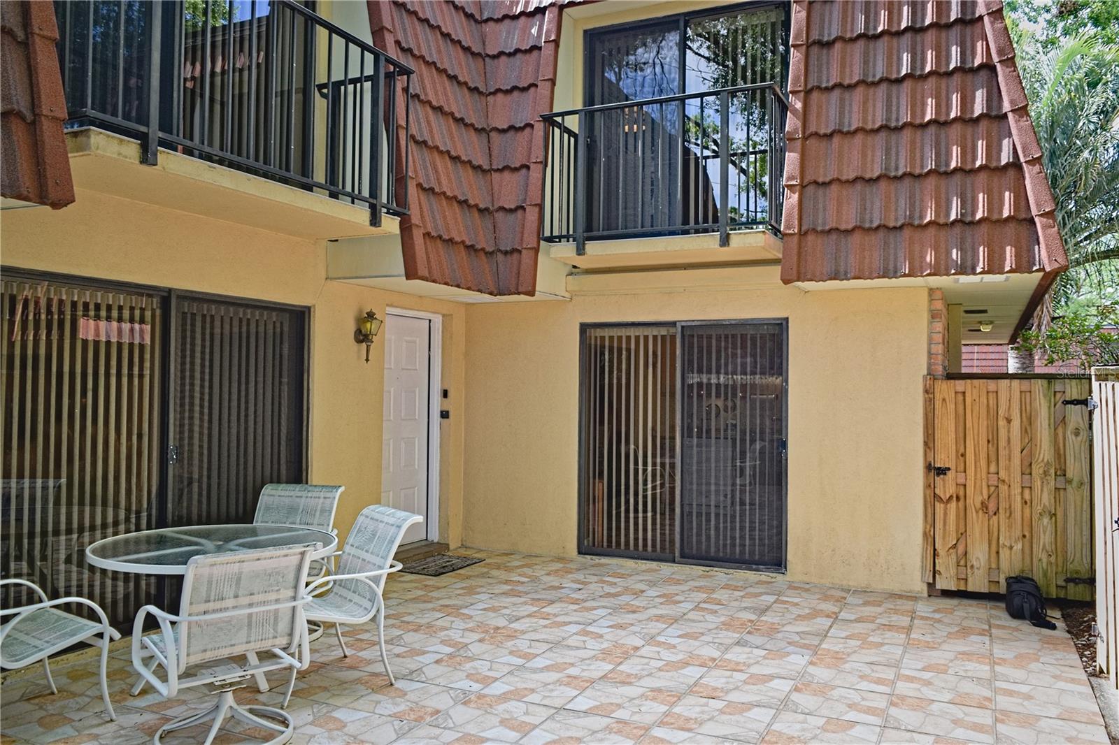 Welcome to this well-maintained, and move-in ready 2 bedroom, 2.5 bath Townhome; offering 1,344 Sq Ft of comfortable living space. Nestled in the back of this Tree lined Palm Harbor community. The home features a private courtyard entrance, with access from both the kitchen and living room -- perfect for entertaining or relaxing. Interior highlights include wood flooring throughout most of the living areas, and an open concept kitchen with solid wood cabinets, as well as an updated laundry room / half bath on the 1st floor. Adjacent the laundry room is a large, under-stair, storage closet. Upstairs, the primary bedroom features an en suite bathroom, walk-in closet, and private balcony overlooking the courtyard. Opposite the Primary is the 2nd full bathroom, and 2nd bedroom complete with it's own balcony overlooking the courtyard. Excellent location in the back of the community adjacent to large green space for extra privacy and tranquility. Non-Flood Zone. Located in one of Palm Harbor's most sough after areas. Close to Top Rated Schools, Shopping, and Dining. Don't miss this opportunity. This is a must see!