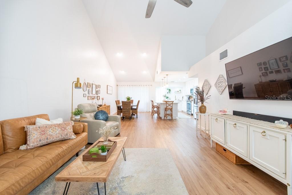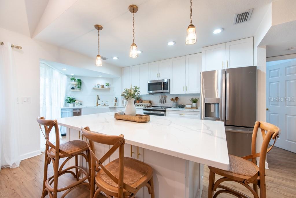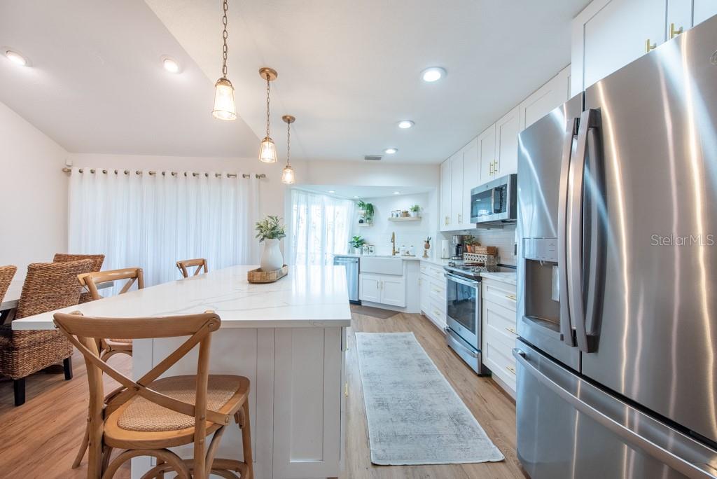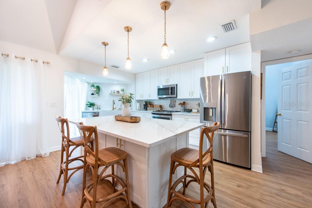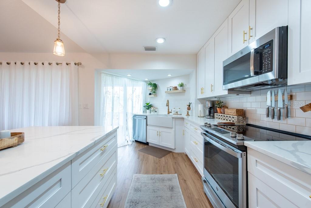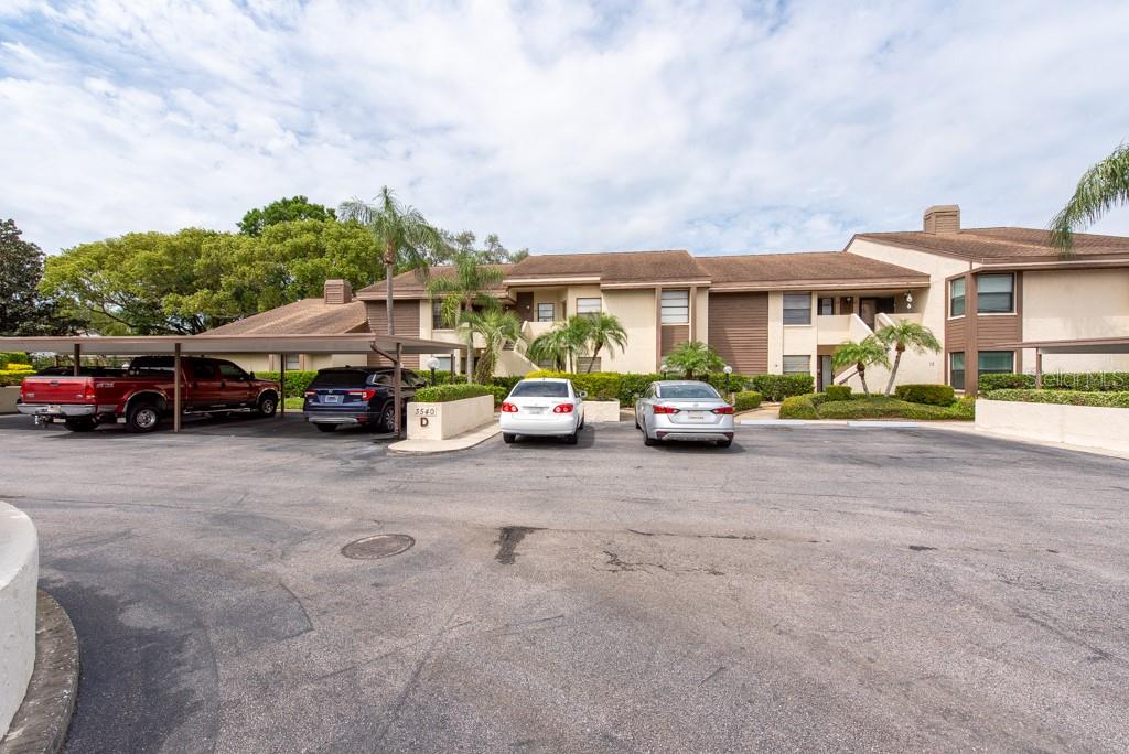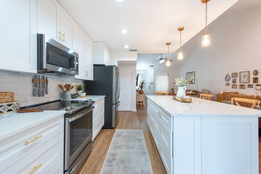 Don’t miss this beautifully renovated 2-bedroom, 2-bathroom condo in the highly sought-after Countrybrook Condos community. Located on the 2nd floor and offering 1,230 square feet of stylish, open living space, this unit blends contemporary upgrades with everyday comfort—and it’s ready for you to move right in. Step inside to find vinyl flooring with cork underlayment throughout, creating a warm and quiet ambiance. The 16-foot vaulted ceilings in the living room, dining area, and master bedroom elevate the space with natural light and airy charm. The spacious family room opens seamlessly to a large screened-in porch through glass sliding doors—perfect for morning coffee or evening unwinding. The kitchen features an oversized white cabinet with gold hardware, stunning white and gray granite countertops, and a large kitchen island with double-sided storage. A porcelain farm-style sink and stainless-steel appliances complete the look. The adjoining dining area offers the perfect setting for entertaining. Retreat to the primary bedroom, generously sized to fit a king bed, and offering a walk-in closet. The ensuite bath boasts a walk-in tiled shower, white cabinetry, granite countertops, and chic gold finishes. The second bedroom also features vinyl flooring and access to the updated guest bathroom with a shower/tub combo. Additional upgrades include dimmable light switches, updated light fixtures throughout, and an in-unit washer and dryer, which stay with the home. For added convenience, the unit includes covered parking. The Countrybrook Condos community offers a heated pool, lush landscaping, and a tranquil setting with well-maintained amenities. The HOA covers lawn care, landscaping, building maintenance, cable and internet, road upkeep, and access to the sparkling community pool. Whether you're looking for a full-time residence or a seasonal getaway, this condo checks all the boxes for style, comfort, and location. Schedule your private showing today!