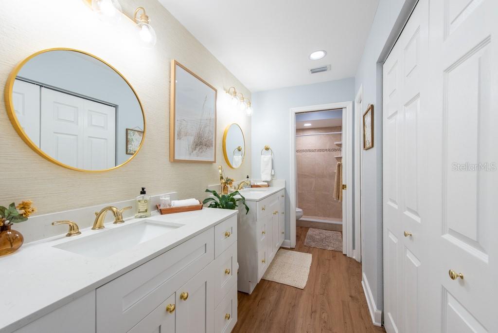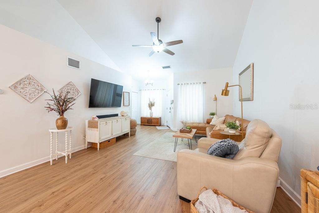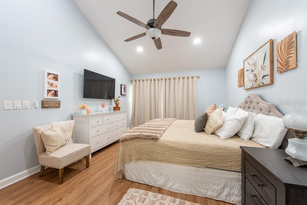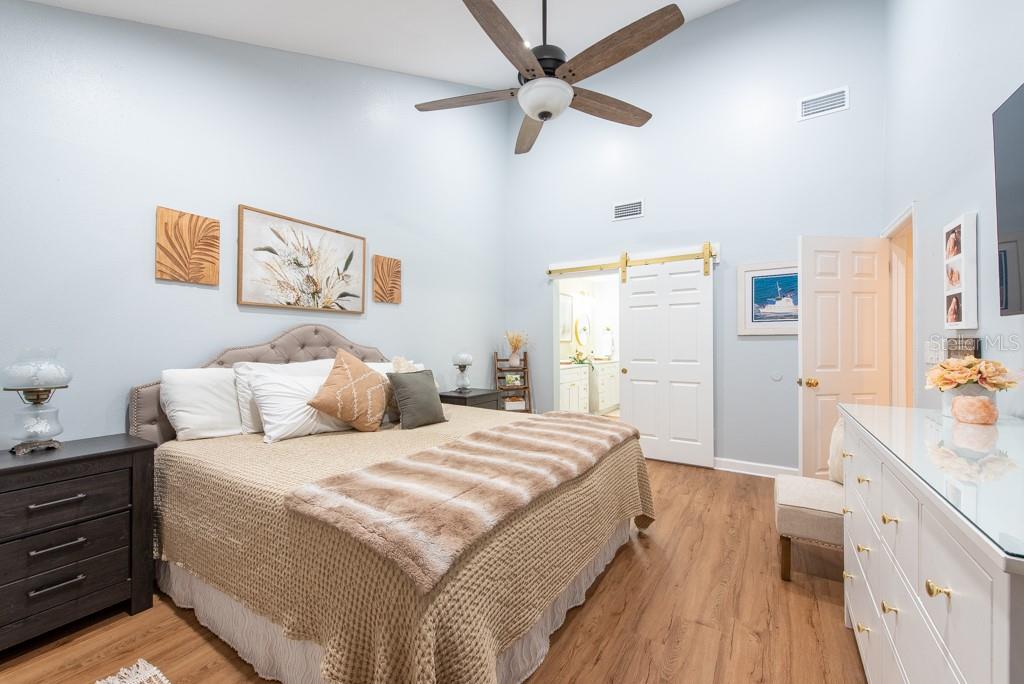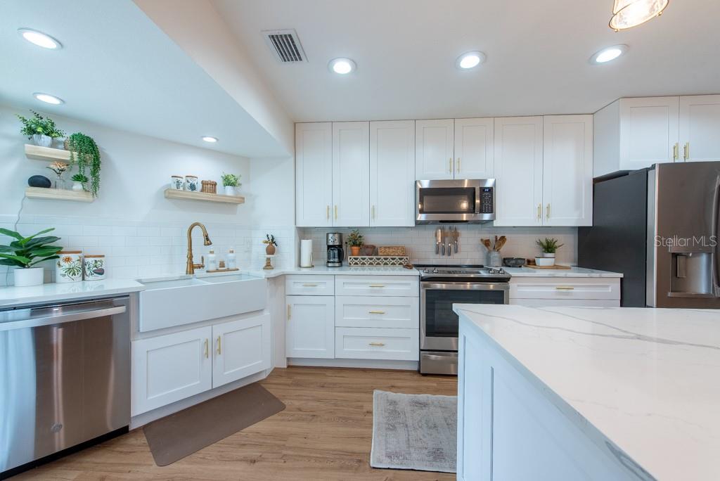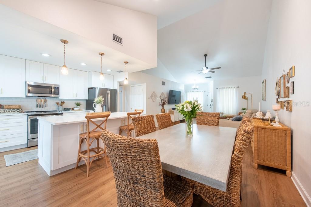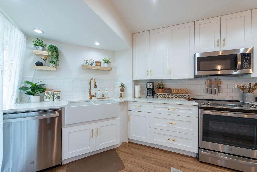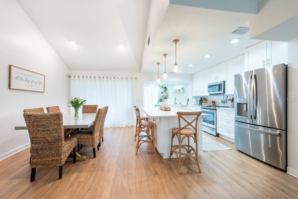 Don’t miss this beautifully renovated 2-bedroom, 2-bathroom condo in the highly sought-after Countrybrook Condos community. Located on the 2nd floor and offering 1,230 square feet of stylish, open living space, this unit blends contemporary upgrades with everyday comfort—and it’s ready for you to move right in. Step inside to find vinyl flooring with cork underlayment throughout, creating a warm and quiet ambiance. The 16-foot vaulted ceilings in the living room, dining area, and master bedroom elevate the space with natural light and airy charm. The spacious family room opens seamlessly to a large screened-in porch through glass sliding doors—perfect for morning coffee or evening unwinding. The kitchen features an oversized white cabinet with gold hardware, stunning white and gray granite countertops, and a large kitchen island with double-sided storage. A porcelain farm-style sink and stainless-steel appliances complete the look. The adjoining dining area offers the perfect setting for entertaining. Retreat to the primary bedroom, generously sized to fit a king bed, and offering a walk-in closet. The ensuite bath boasts a walk-in tiled shower, white cabinetry, granite countertops, and chic gold finishes. The second bedroom also features vinyl flooring and access to the updated guest bathroom with a shower/tub combo. Additional upgrades include dimmable light switches, updated light fixtures throughout, and an in-unit washer and dryer, which stay with the home. For added convenience, the unit includes covered parking. The Countrybrook Condos community offers a heated pool, lush landscaping, and a tranquil setting with well-maintained amenities. The HOA covers lawn care, landscaping, building maintenance, cable and internet, road upkeep, and access to the sparkling community pool. Whether you're looking for a full-time residence or a seasonal getaway, this condo checks all the boxes for style, comfort, and location. Schedule your private showing today!