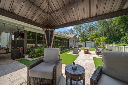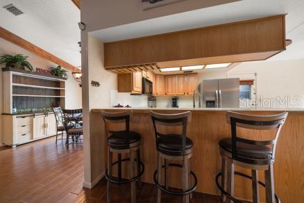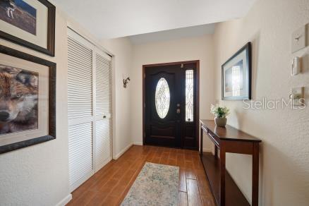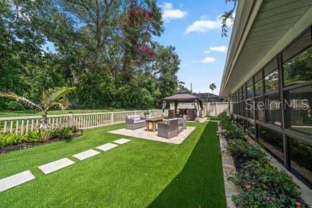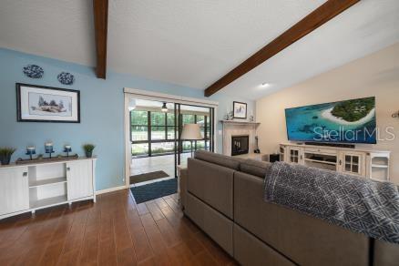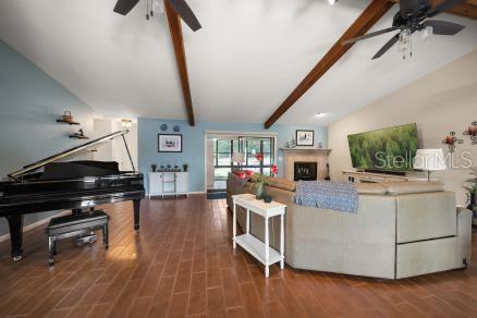 An unparalleled opportunity awaits you here! You can embrace a carefree lifestyle in the 3/2/2 with a PERSONALITY All its own. With a Rustic, open floor plan, BEAMED Vaulted Ceiling and a fireplace to add to the ambiance, knowing the ROOF, AC System are NEWER...adds to your PEACE of MIND. This immaculate home has been loved and you can tell, as you enter and experience its light and airy feeling. The kitchen is well-equipped with stainless steel appliances, breakfast bar and an informal dining area. A full-sized, front-loading washer and dryer will be installed in the adjoining closet area prior to closing. The interior access to the spacious 2-car garage is from the kitchen area. With a true SPLIT Floor Plan, 2 bedrooms and the main bath are separated from the Primary Bedroom/Bath, which is a generous size, by the Large Living Rm/Great Rm., that features a real-working fireplace and is open to the formal Dining Room. The Sliders & French Doors give you a peek at ANOTHER World beyond the Cozy Interior of this home as you see the beauty of the back yard. Perfect for your enjoyment, entertainment & low maintenance, the vinyl fencing, anchored gazebo, side deck area & HOT TUB (which can remain with the sale)are sure to please. Fall in LOVE with the PRIVACY and LUSH Greenery that adjoins the back side of this home's lot, as it is a CONSERVATION Area, providing Nature as your ONLY Neighbors, something MANY OF US only DREAM About! Don't delay in seeing this TODAY...you'll be glad you did.