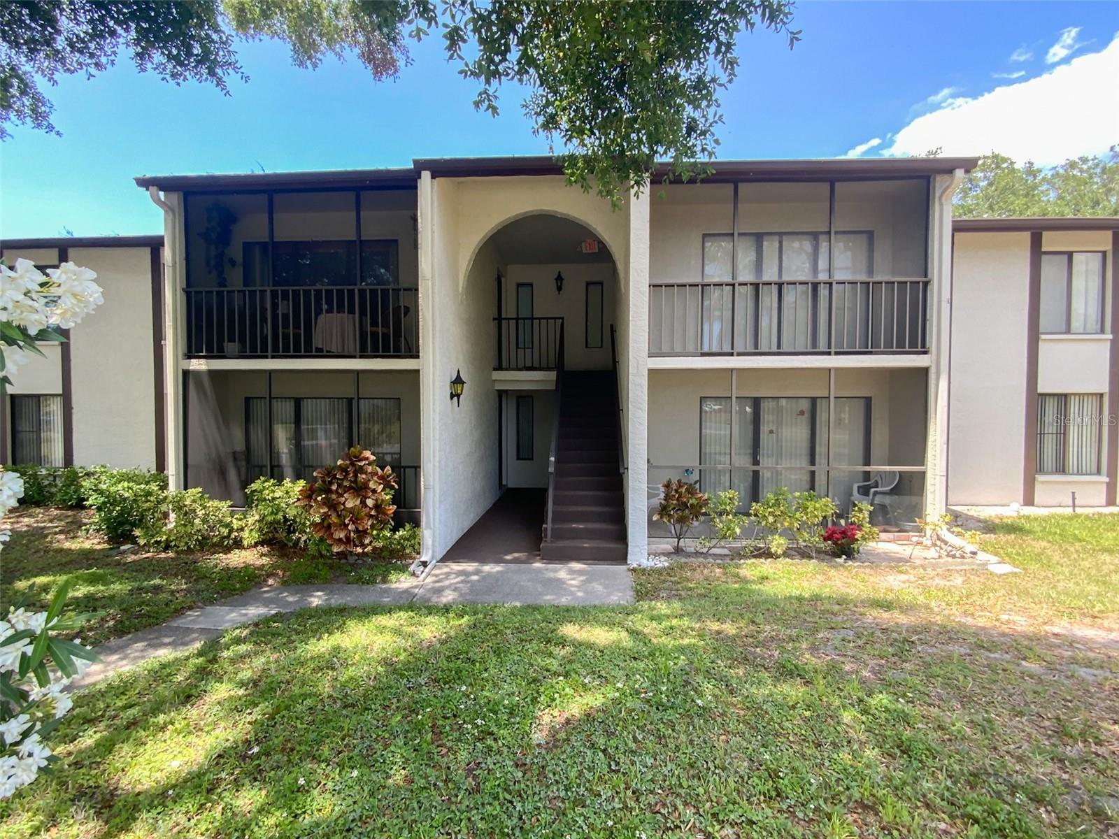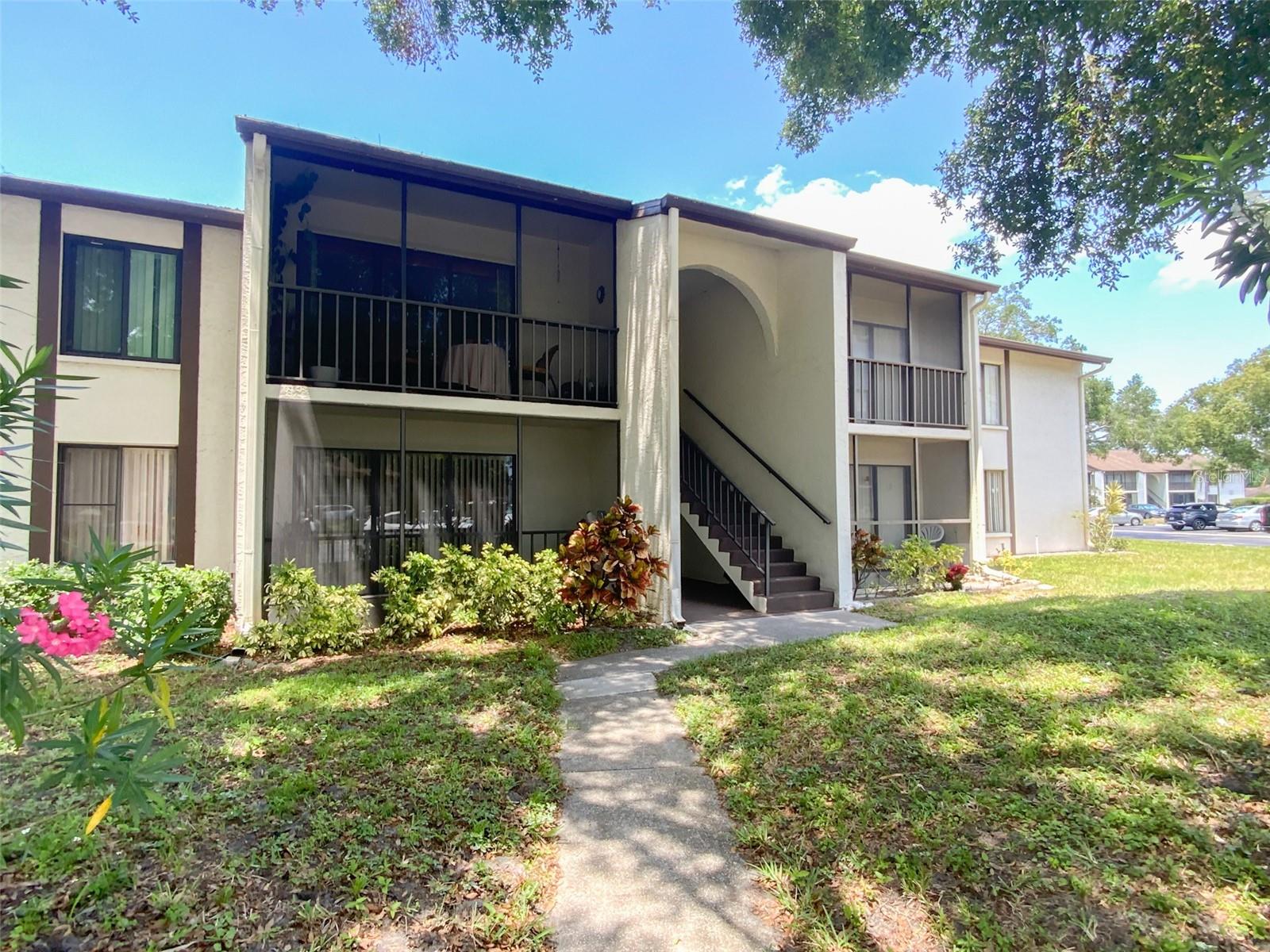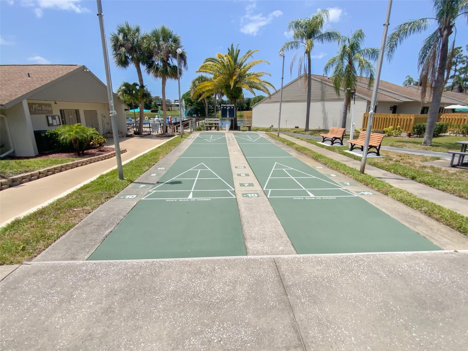 Gorgeous 2/2 end-unit condo in the beautifully maintained 55+ community at Pine Ridge! You will love the open living area with sliding glass doors leading to a screen-enclosed balcony! The kitchen has an eat-in space with plenty of cabinet storage with ample counter space. The dining area is very spacious and flows into the cozy living area! The owner's en-suite bedroom features an extra-large walk-in closet with attic access! The private primary bathroom offers a walk-in shower stall. The second bedroom shares a guest bathroom with a tub/shower combination. An interior laundry room offers room for a full size washer and dryer plus storage space. This ground floor condo is tucked away in the rear of the community and has peaceful views of the green-space courtyard! LOW condo fees include water, trash, sewer, roof, cable and internet, heated pool, spa, clubhouse, shuffleboard, on-site property manager, grounds and exterior maintenance. Active socials. One pet allowed with a max weight of 25lbs. Close to shopping, entertainment, restaurants, medical services, beaches, parks, and airports. No flood insurance in this highly elevated complex. A must see!