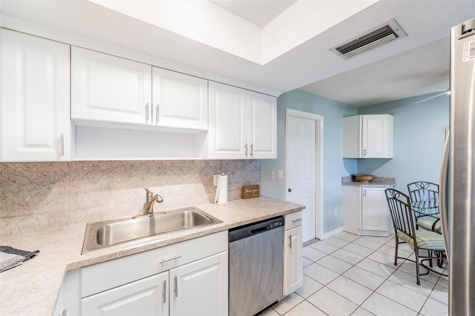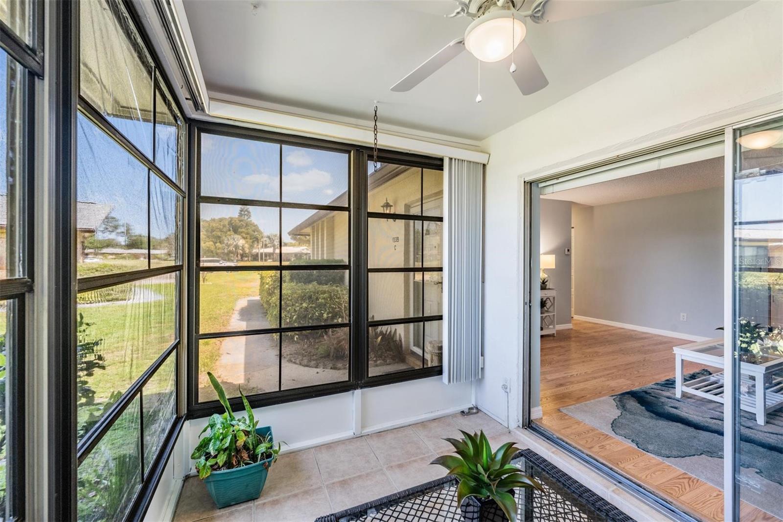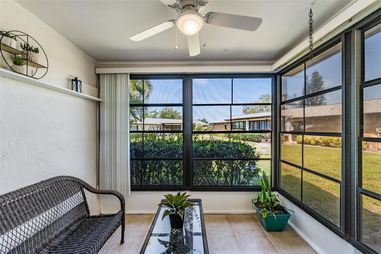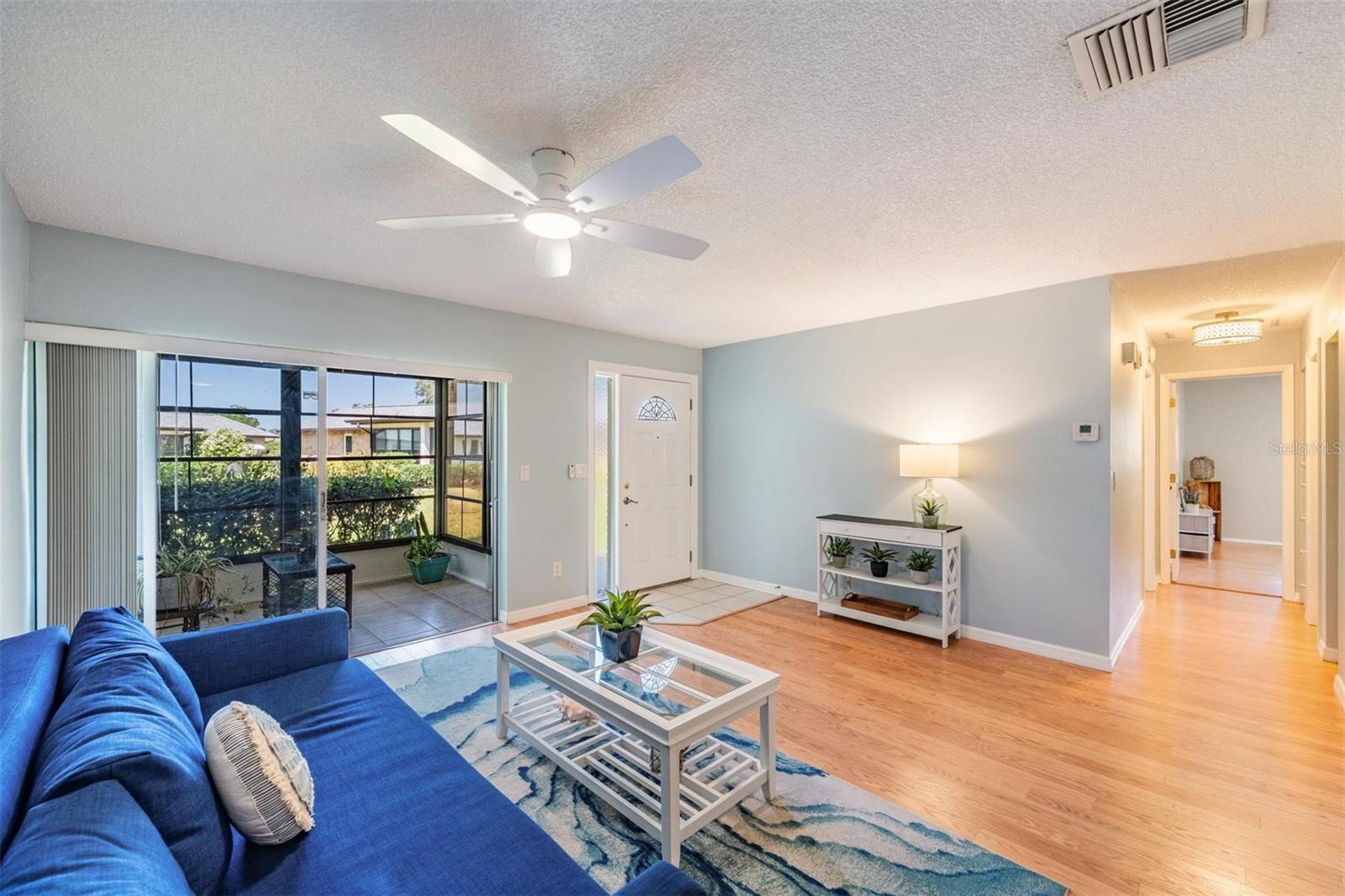 Welcome to Andover Village in the popular Highland Lakes active 55+ community. This thoughtfully and tastefully updated two bedroom condo offers two full bathrooms, an open and airy floor plan, an extended one car garage, and lovely screened lanai which creates a natural extension of living space off the living room. You'll be impressed by the light and bright fresh interior paint, ceiling fans and lighting fixtures. The kitchen has been updated with stainless steel appliances and new recessed lighting. The primary ensuite bathroom with walk in shower was upgraded with a new vanity and fogless LED mirror. Updates go beyond "the pretty" with a brand new (2025) electrical panel. Owners can choose between the Andover Village community ammenities or the Highland Lakes Club for your fun in the sun activities including golf, tennis, swimming or one of the many events on the community activities calendar.