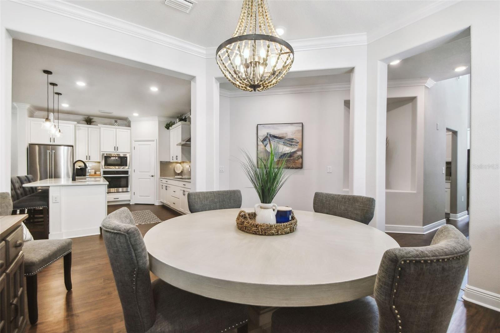 Positioned just steps from the clubhouse and pool, and set on a prime pond-view lot in Ozona Village, this 3-bedroom, 3-bathroom townhome offers a rare combination of thoughtful upgrades, pristine condition, and low-maintenance living in one of Palm Harbor’s most walkable coastal communities. The exterior was just freshly repainted, and the HOA is decreasing to $500 monthly. Built in 2019 and carefully maintained ever since, the home offers over 2,300 square feet of living space with an intuitive layout and tasteful finish selections throughout. Rich dark laminate flooring anchors the main living areas, while upgraded carpeting with plush padding brings comfort to the bedrooms. The kitchen is both elegant and efficient—featuring an extended counter-height island with elegant Carrera quartz, soft-close cabinetry, a built-in oven and microwave, wine fridge, cooktop with range hood, and a striking glass backsplash. The main floor includes a private bedroom and full bath, ideal for guests or multi-generational living. Upstairs, a versatile loft space serves as a dedicated work zone or study nook. The primary suite is a standout, with tray ceilings, a custom walk-in closet, and a serene pond view. Closets throughout the home include smart storage systems, and the upgraded staircase adds a subtle architectural accent. Step outside to the extended lanai—clean lines, a tranquil water view, and ample green space create an easy backdrop for morning coffee or evening conversation. Behind the scenes, this home is equally well cared for: pavers are professionally cleaned, sealed, and sanded yearly; the HVAC system is serviced annually and now includes a HALO UV purification system (2025); and fresh interior paint (ceilings and main floor, 2025) ensures a turnkey experience for the next owner. Flood insurance isn’t required (X zone), and the property has remained unaffected by recent storms. Located within one of the top-rated school zones in the state and just minutes from the coast, the home also sits in the heart of Ozona’s vibrant golf cart district—where marinas, live music, and the Pinellas Trail are all part of daily life. For those seeking a low-maintenance home without compromise, 612 Ozona Village Dr delivers on every level.