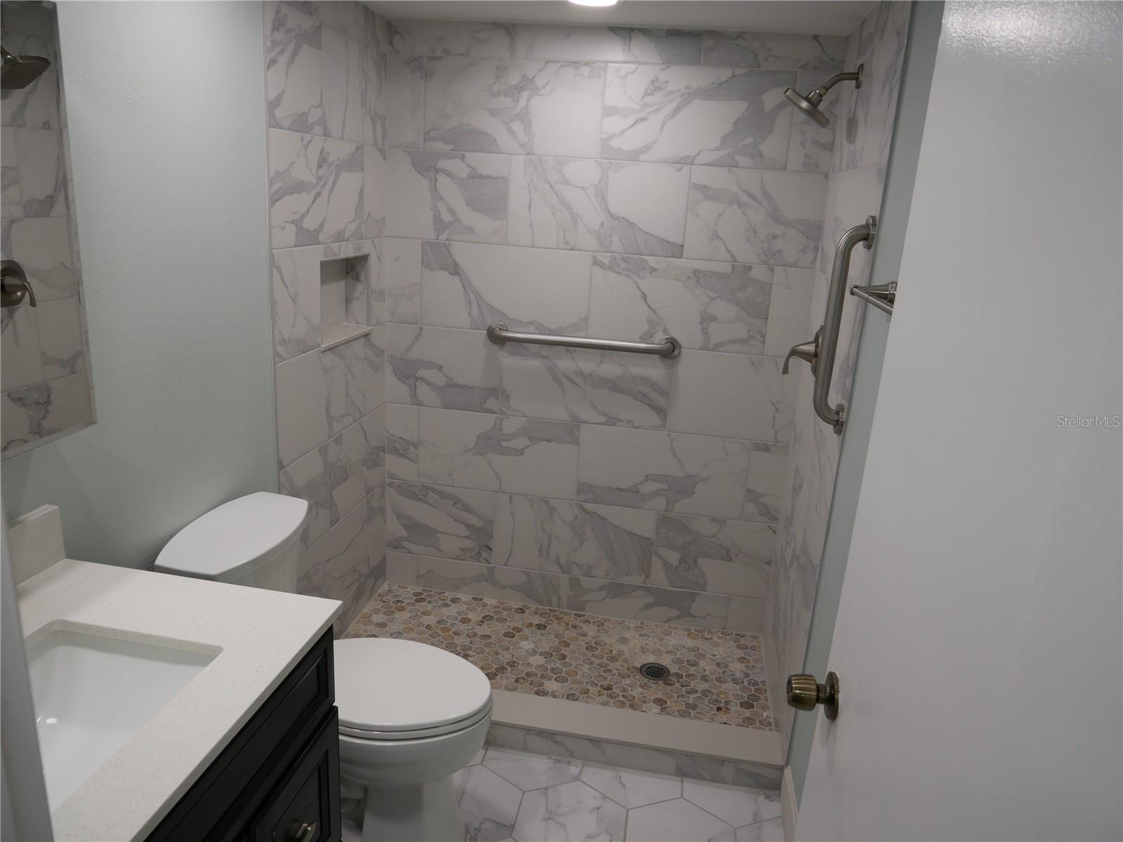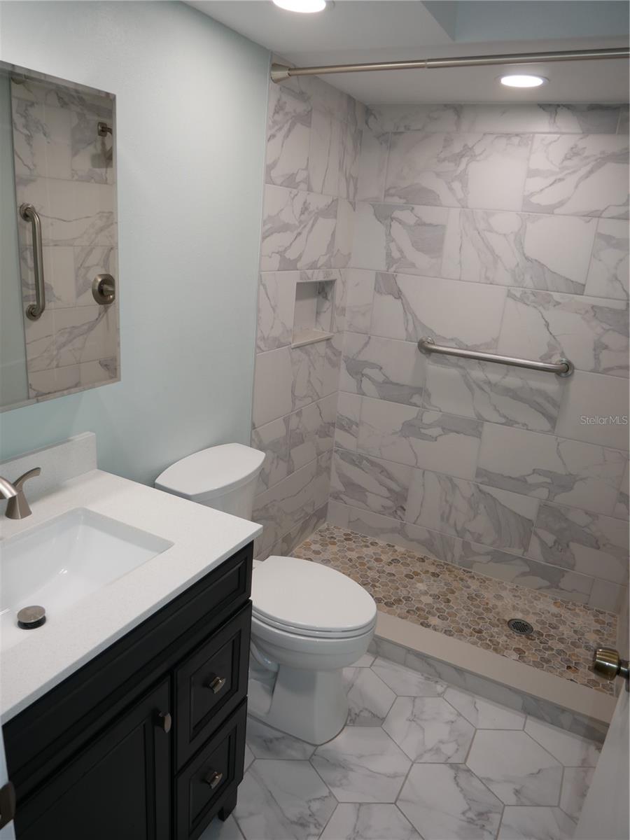 One or more photo(s) has been virtually staged. Highland Lakes is a coveted retirement community in northern Pinellas County! This spacious two bedroom, two bath villa's updates include completely renovated 2nd bathroom with walk-in shower, new easy to maintain luxury vinyl flooring throughout, new quartz kitchen countertops, new kitchen sink and faucet, and fresh paint throughout. Situated on a tree-draped courtyard, this villa includes a spacious living room/dining room combo, bonus room, full sized laundry room, exterior storage closet and assigned covered parking space. Eat-In kitchen includes space for a breakfast table. The Master Bedroom has 3 closets and an en-suite bathroom. Enjoy your morning coffee or evening drinks on your back patio. Not in a flood zone. Located in the highly desirable 55+ Highland Lakes community with access to incredible sun and fun amenities including award winning executive golf courses (GREENS FEES ARE INCLUDED WITH YOUR MONTHLY HOA), shuffleboard and tennis courts, bocce ball, billiards, and a geo-thermal heated Olympic sized pool with heated spa. The Arts & Crafts Building (Annex) includes ceramics, painting, stained glass, and a fully equipped woodworking shop. Almost 100 clubs and groups plan a wide range of social events that bring residents together. The active clubhouse hosts a vibrant calendar of social events, activities, dances, shows, card games, bingo, etc. RV and boat enthusiasts can park their actively used recreational vehicles or watercraft in the fenced RV/Boat Lot and may use the boat-launch ramp into Lake Tarpon. Also included in the HOA, the Lodge on Lake Tarpon features picnic tables, grills, pier, enclosed porch with a panoramic view of Lake Tarpon. Relax and enjoy a scenic ride on a resident volunteer piloted 24-foot pontoon boat. Located close to restaurants, shopping, medical offices, and theatres. Condo fees include water, sewer, trash, basic cable, high speed internet, building insurance, maintenance of the exterior, and reserves. Being Sold As-Is with right to inspect. Room sizes are approximate. Square footage is approximate and includes bonus room. Some photos have been virtually staged (including some lighting fixtures).