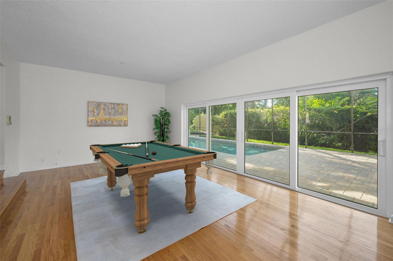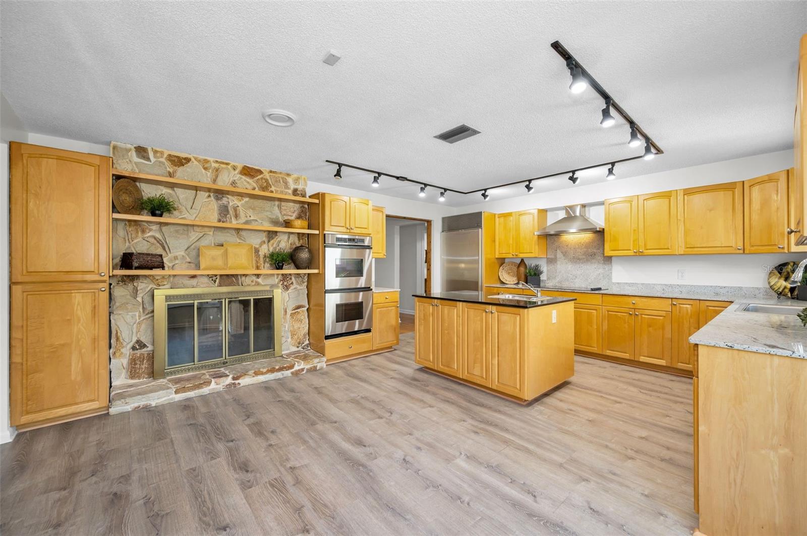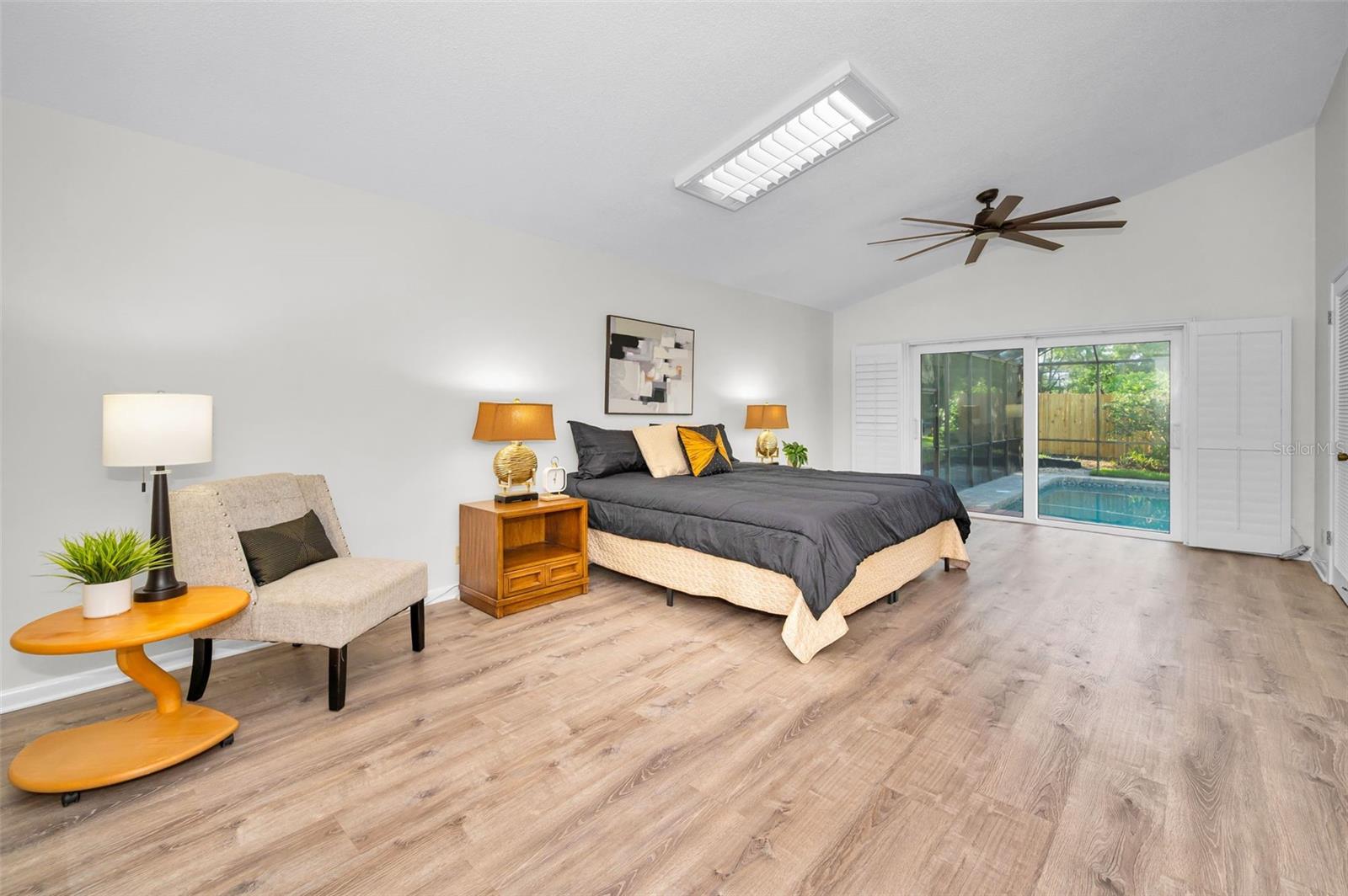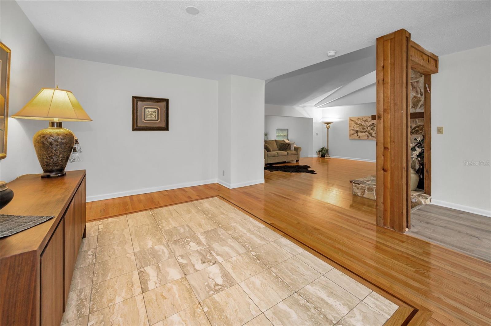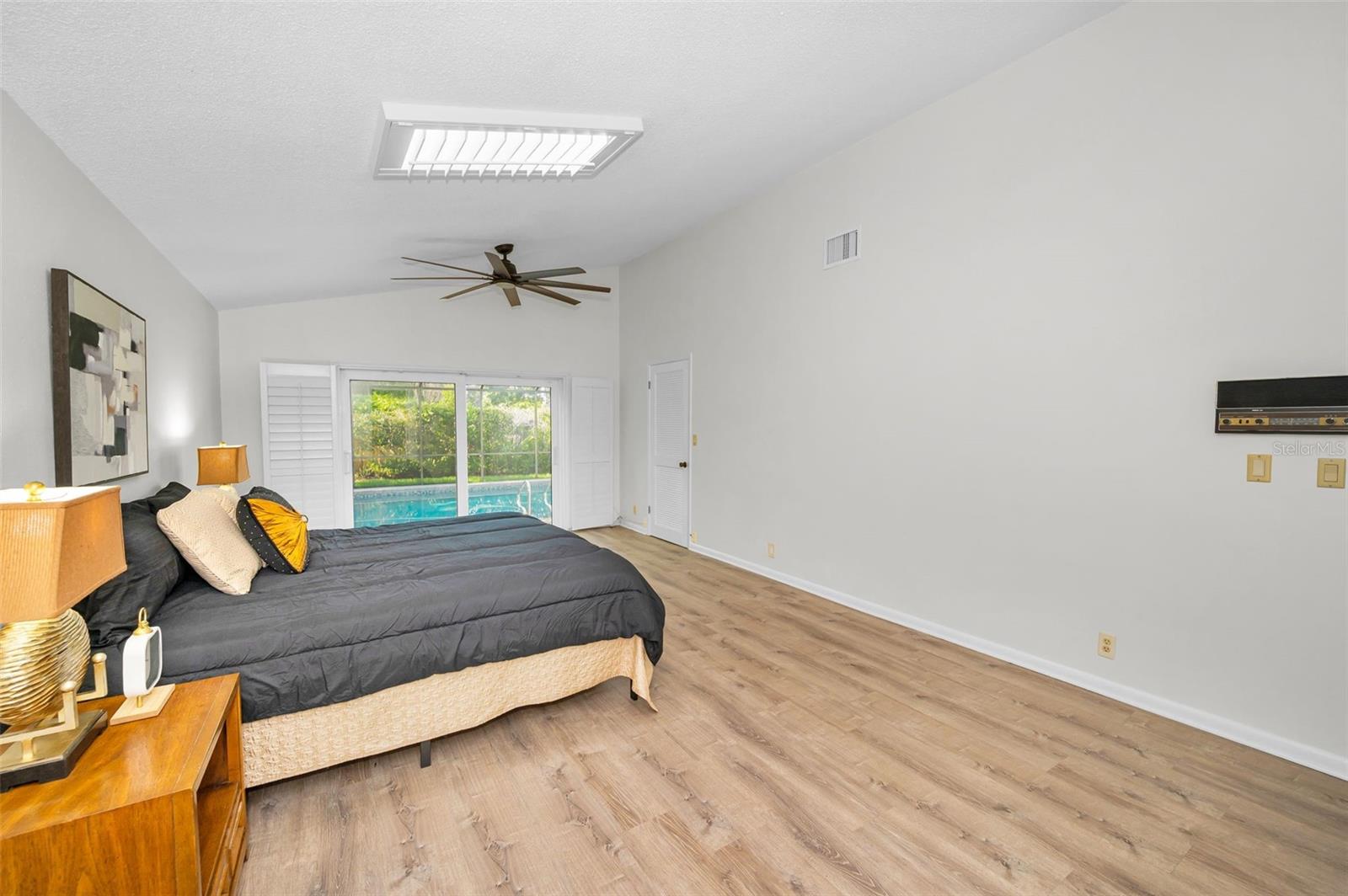 One or more photo(s) has been virtually staged. Back on the market due to Buyer's financing! Boasting myriad updates including NEW exterior coach lights (2025), NEW roof and flat roof (2024), NEW exterior and interior paint (2024), NEW landscaping (2025), NEWER HVAC (2023), NEWER hot water heater and electrical panel, and NEWER windows (2018), this 4 bedroom/3.5 bath home sits on a 0.2686-acre lot and shines with architectural interest -- inside and out. A sweeping pavered courtyard introduces the stunning stained glass double door entry. Inside, solid wood floors gleam beneath the living room’s vaulted ceilings while the two-sided, wood burning fireplace warms both the living room and the kitchen. A sunken bonus room is nestled behind the living room revealing a wall of sliders to access the alfresco space. Ideal as the dance floor for your next party or as a home entertainment area (large enough for a pool table), this room features lovely light, a wet bar, and a wine frig concealed behind decorative cabinets. The separate formal dining room was treated to a spectacular inlaid tile design in its hardwood flooring. As for the spacious eat-in kitchen, a center island with a sink is surrounded by gorgeous cabinetry and an amazing wall of built-in cabinets furnished with glass. Ample shelving above the fireplace is perfect for displaying treasured mementos. Stainless appliances and track lighting complete this welcoming picture. The expansive master suite is beautifully appointed with a skylight, its own set of sliders to the pool (hidden behind plantation shuttered doors), and a large walk-in closet outfitted with plenty of glorious storage space including sets of drawers, baskets, and shoe ledges. The ensuite is decked out like a spa with a deep, jetted tub, dual sinks, heated towel bars, and a shower room accented with glass block and multi-directional shower heads. The three-way split of the remaining three bedrooms offers privacy to guests and family members. All the bedrooms are filled with Florida sunshine. The second and third bedrooms have great walk-in closets and share a Jack and Jill bathroom. The fourth bedroom presents with its own bath that also leads out to the pool and the hot tub on the screened lanai. Besides a whole house vacuum system and a wonderful laundry room, this unique home has been very well maintained. In this lush and leafy community, Westlake Village offers a variety of amenities like a clubhouse, park, playground, pool, walking trail, picnic areas, and tennis/basketball courts. The school district is also highly rated. All this beauty in sought-after Palm Harbor, one of the jewels of Pinellas County.