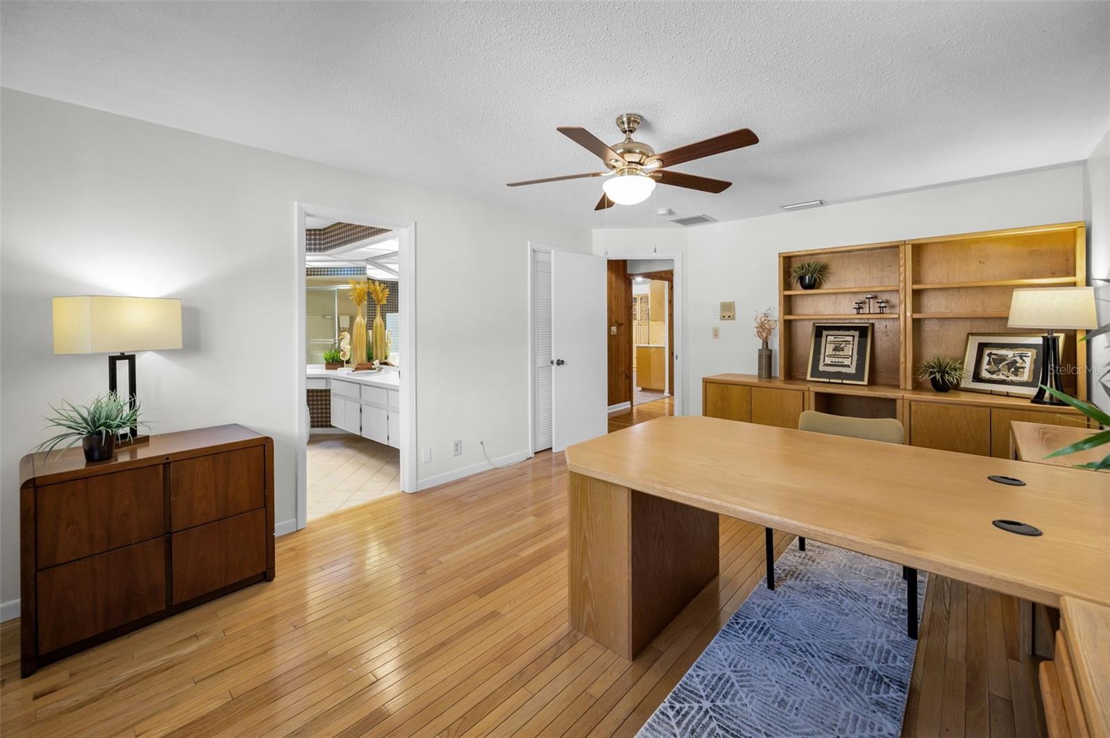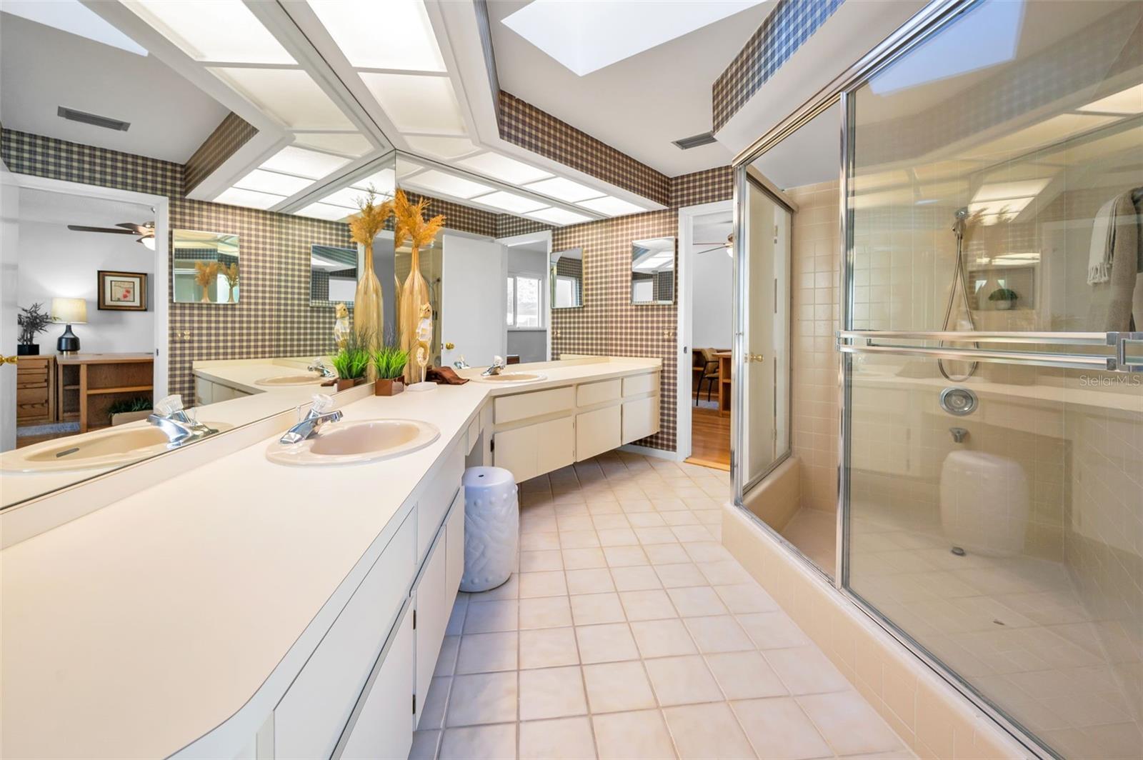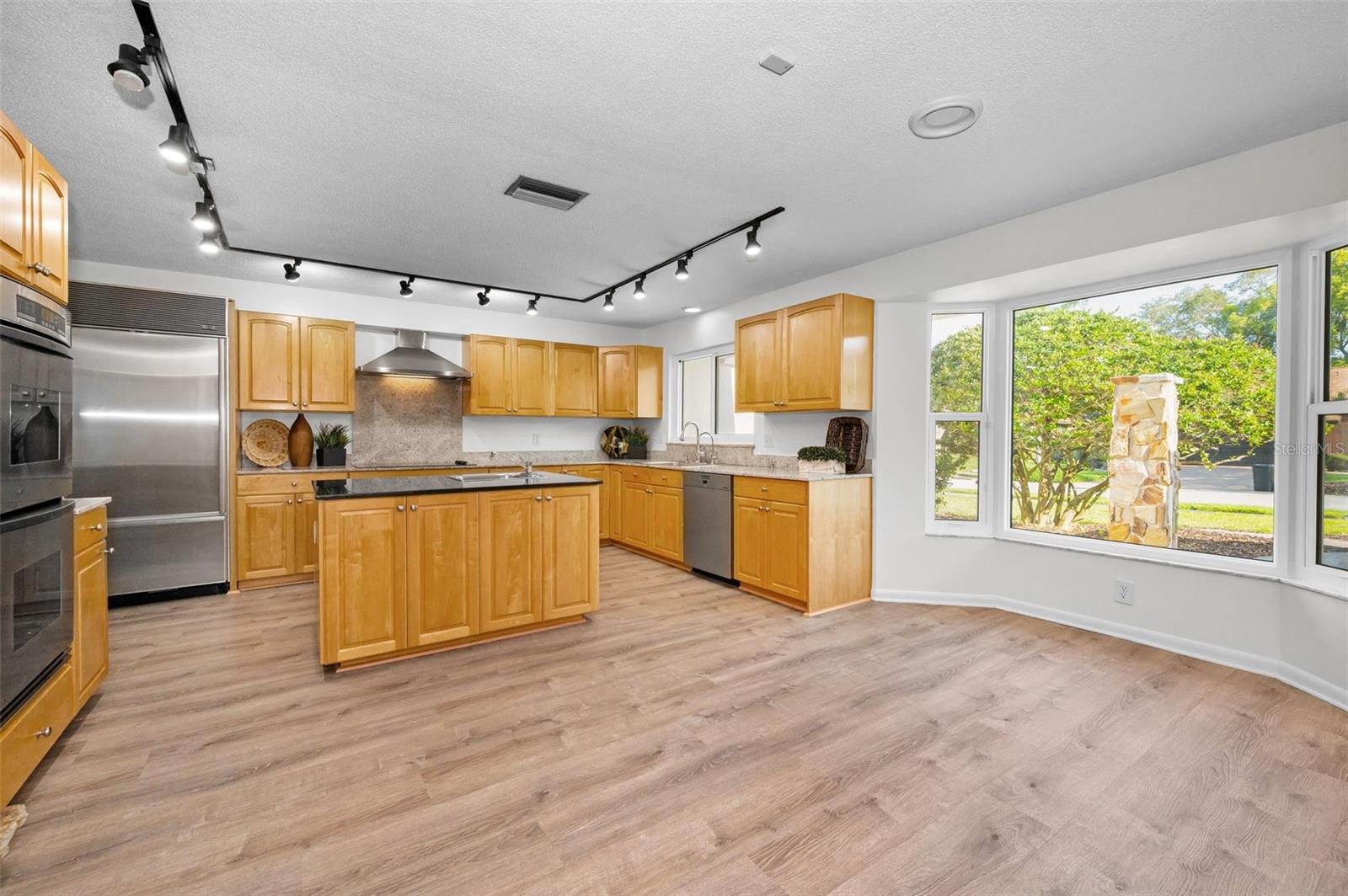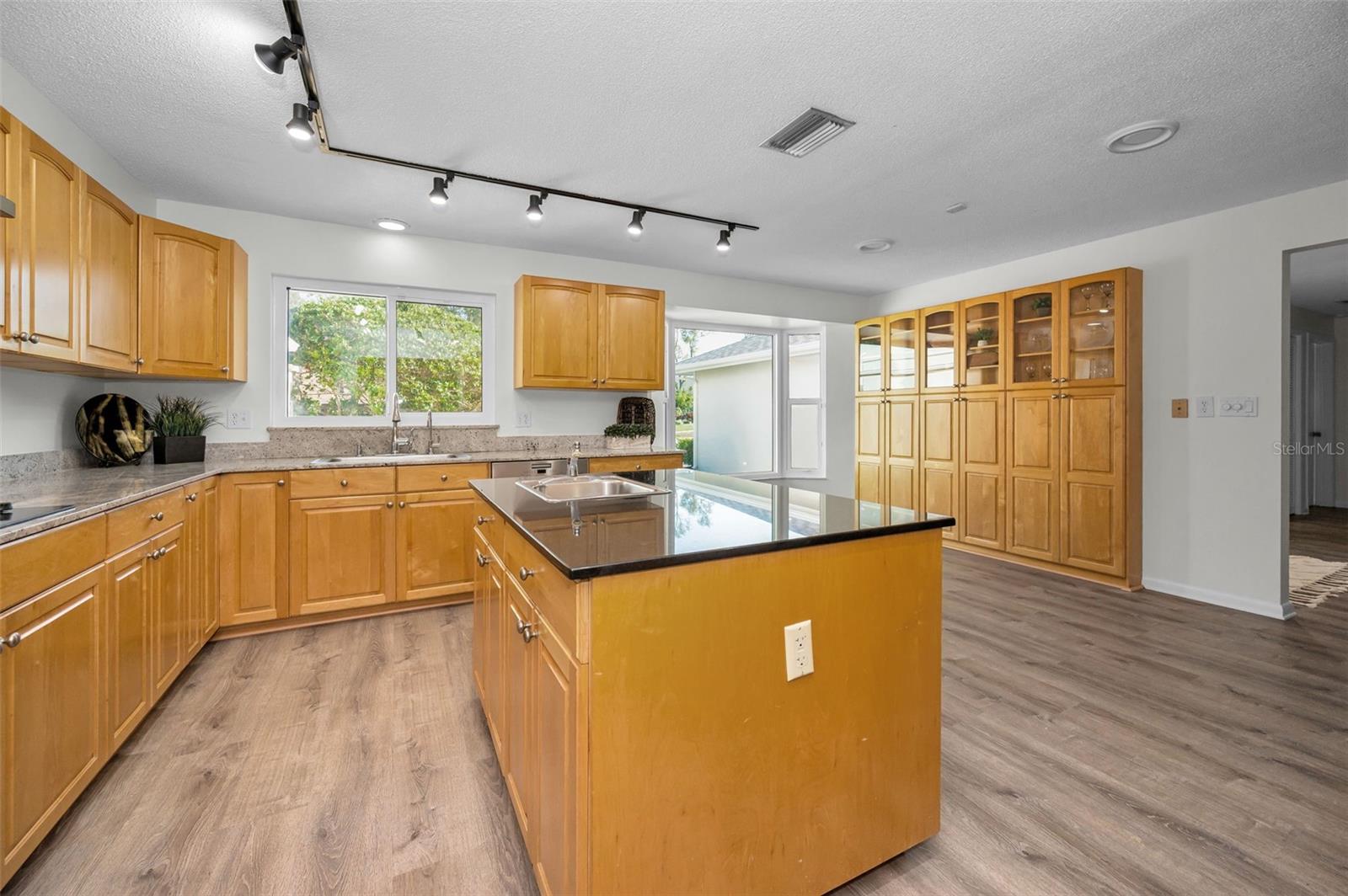 One or more photo(s) has been virtually staged. Back on the market due to Buyer's financing! Boasting myriad updates including NEW exterior coach lights (2025), NEW roof and flat roof (2024), NEW exterior and interior paint (2024), NEW landscaping (2025), NEWER HVAC (2023), NEWER hot water heater and electrical panel, and NEWER windows (2018), this 4 bedroom/3.5 bath home sits on a 0.2686-acre lot and shines with architectural interest -- inside and out. A sweeping pavered courtyard introduces the stunning stained glass double door entry. Inside, solid wood floors gleam beneath the living room’s vaulted ceilings while the two-sided, wood burning fireplace warms both the living room and the kitchen. A sunken bonus room is nestled behind the living room revealing a wall of sliders to access the alfresco space. Ideal as the dance floor for your next party or as a home entertainment area (large enough for a pool table), this room features lovely light, a wet bar, and a wine frig concealed behind decorative cabinets. The separate formal dining room was treated to a spectacular inlaid tile design in its hardwood flooring. As for the spacious eat-in kitchen, a center island with a sink is surrounded by gorgeous cabinetry and an amazing wall of built-in cabinets furnished with glass. Ample shelving above the fireplace is perfect for displaying treasured mementos. Stainless appliances and track lighting complete this welcoming picture. The expansive master suite is beautifully appointed with a skylight, its own set of sliders to the pool (hidden behind plantation shuttered doors), and a large walk-in closet outfitted with plenty of glorious storage space including sets of drawers, baskets, and shoe ledges. The ensuite is decked out like a spa with a deep, jetted tub, dual sinks, heated towel bars, and a shower room accented with glass block and multi-directional shower heads. The three-way split of the remaining three bedrooms offers privacy to guests and family members. All the bedrooms are filled with Florida sunshine. The second and third bedrooms have great walk-in closets and share a Jack and Jill bathroom. The fourth bedroom presents with its own bath that also leads out to the pool and the hot tub on the screened lanai. Besides a whole house vacuum system and a wonderful laundry room, this unique home has been very well maintained. In this lush and leafy community, Westlake Village offers a variety of amenities like a clubhouse, park, playground, pool, walking trail, picnic areas, and tennis/basketball courts. The school district is also highly rated. All this beauty in sought-after Palm Harbor, one of the jewels of Pinellas County.