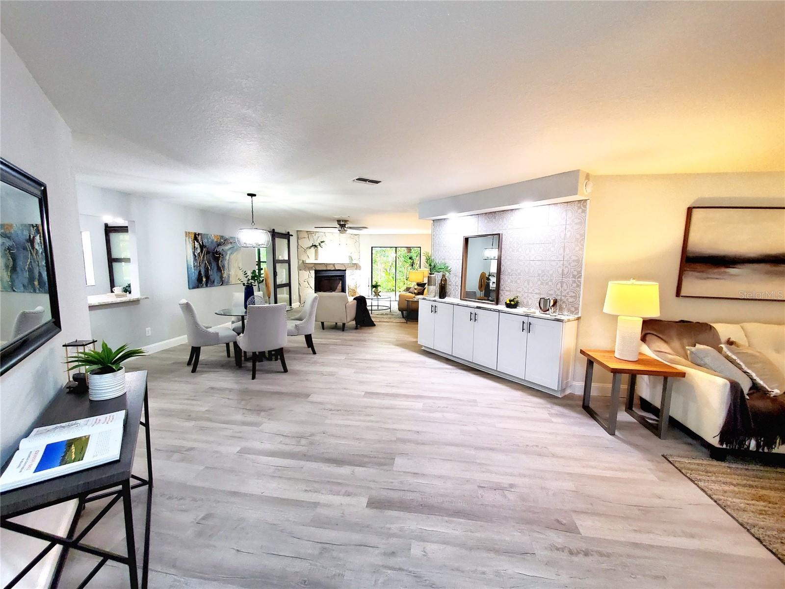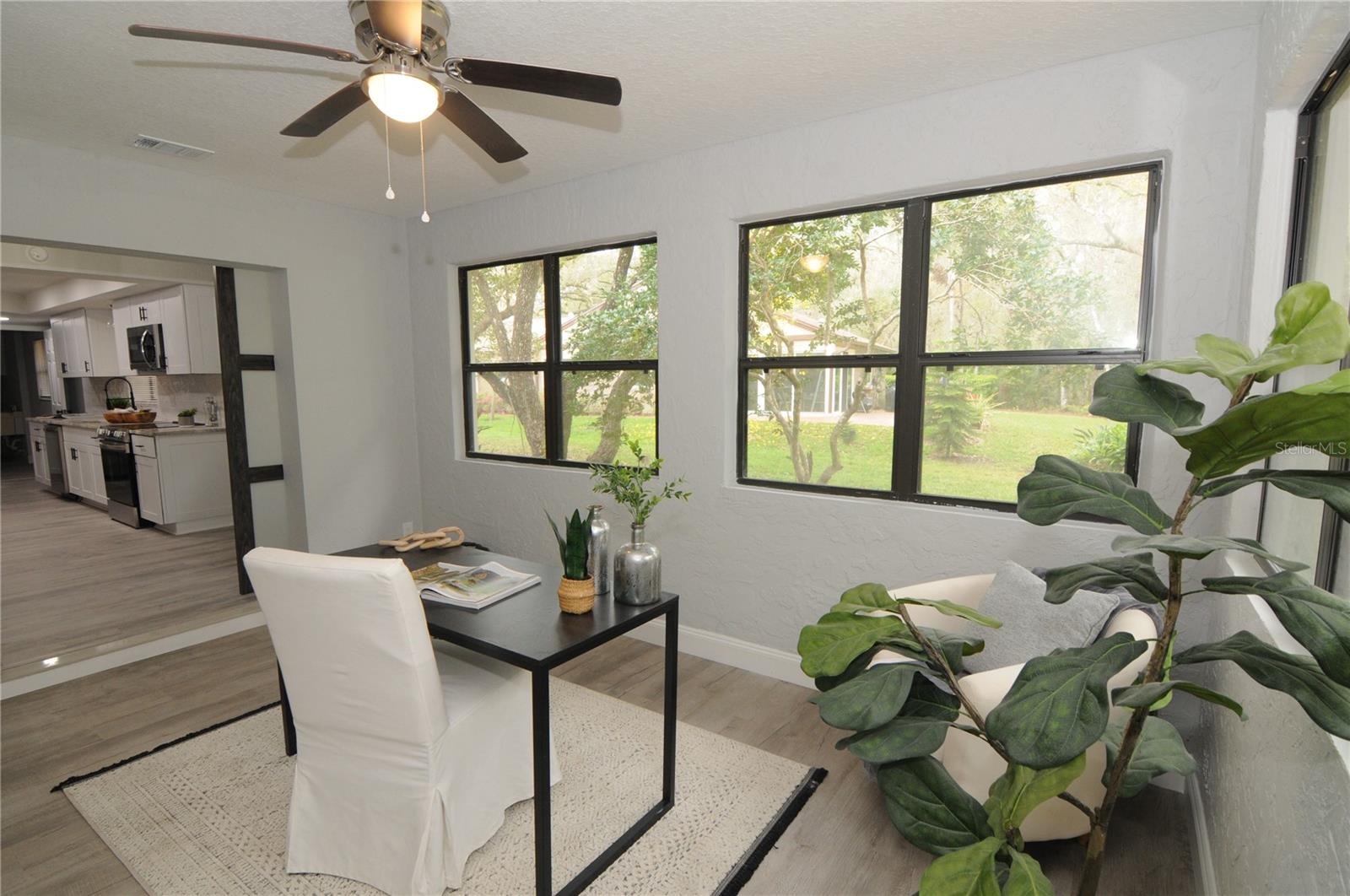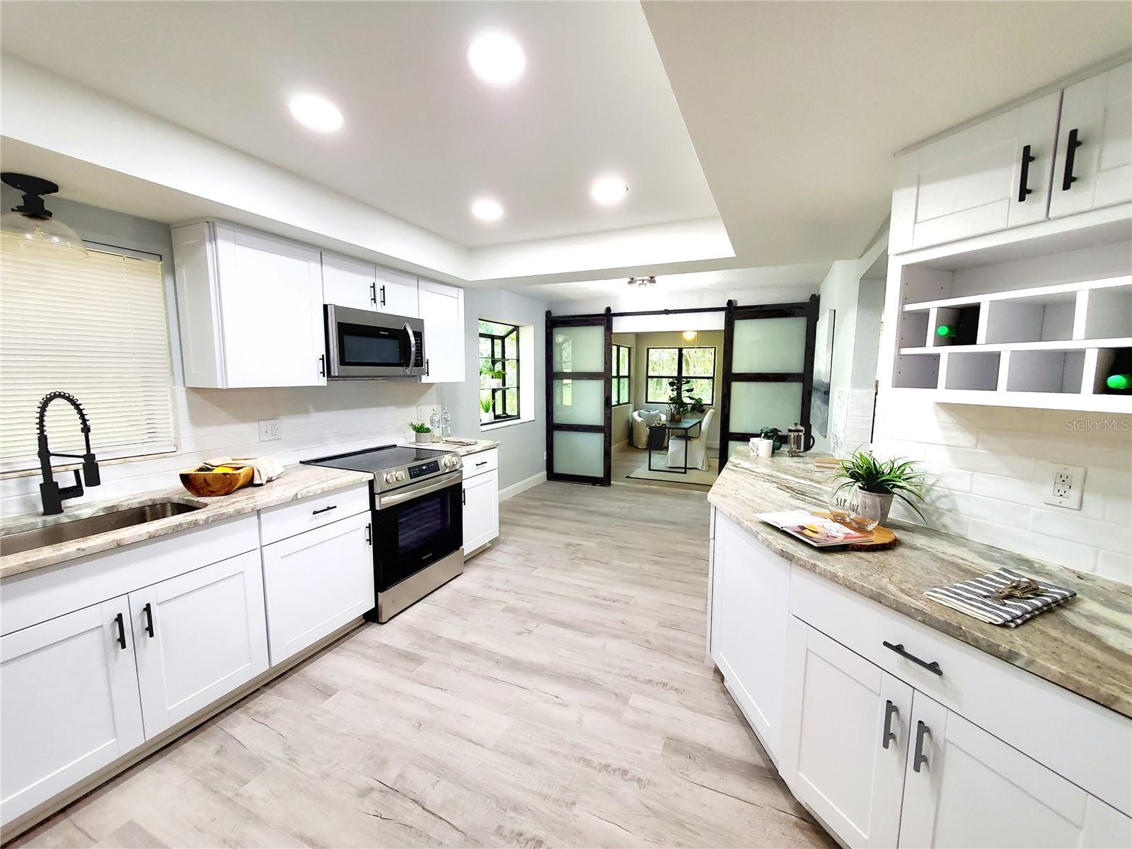 ** HEART OF EAST LAKE!! ** TOTALLY REMODELED and MAINTENANCE FREE! Take advantage of the best schools in the county! Golf, shopping, restaurants, etc all within a 5-min drive from your front door! Completely updated in 2025....2-bedroom PLUS office! Tucked away on a cul-de-sac in a small private neighborhood called The Meadows in Tarpon just off the East Lake corridor! 1/4-acre pool-sized lot that backs to Brooker Creek conservation! New St Augustine sod in front and side yard! Quarterly HOA covers all your yard maintenance....just sit back and enjoy the scenic views and pet a peacock! Exterior and interior have undergone a complete makeover! Exceptional curb appeal complete with a fresh new paint job and brand-new dimensional shingle roof! The long newly painted driveway offers plenty of parking for visiting family and friends! Enjoy cocktails by the fire pit out back or grill out on your newly paved patio! Incredibly private backyard with a jaw-dropping view! Step inside and it only gets better! The home has an open floor plan that has been professionally staged to proudly display its maximum potential! The entire 2,300 sf interior has been meticulously renovated floor to ceiling! New texture/paint, new flooring, new baseboards, new kitchen, new bathrooms, new doors, new lighting.....the list goes on! Exceptional house for entertaining! Not only does it have a large kitchen but also a dining area complete with a brand-new bar! 2 distinct living areas....living room up front with a family room in the back! Family room has sliders to the new patio and a corner fireplace! Frosted glass barn doors lead you to the office/3rd bedroom (no closet)! Work at home? Office has a private back entrance for clients and a wall full of stunning views to keep you motivated! The brand-new kitchen is enormous and is complete with all new cabinetry, granite counters, wine bar with mini fridge, and stainless-steel appliances! Have a hobby? The utility/laundry room is huge and would be great space for all your special projects! There are 2 bedroom suites with access to their own private bathrooms! Split-bedroom design perfect for an in-law or teen retreat! The community pool is just a short golf cart ride around the corner! Oversized 2-car garage affords extra room for storage! Sprinkler system (as is) and newer Carrier A/C (2019)! Commuters dream location....close to everything!
