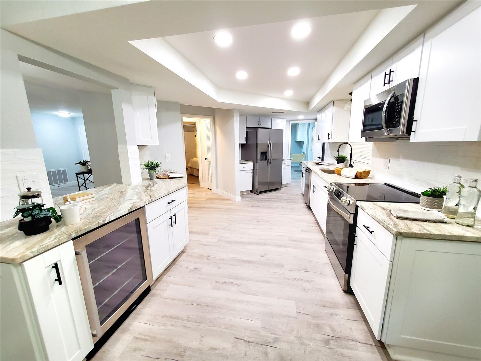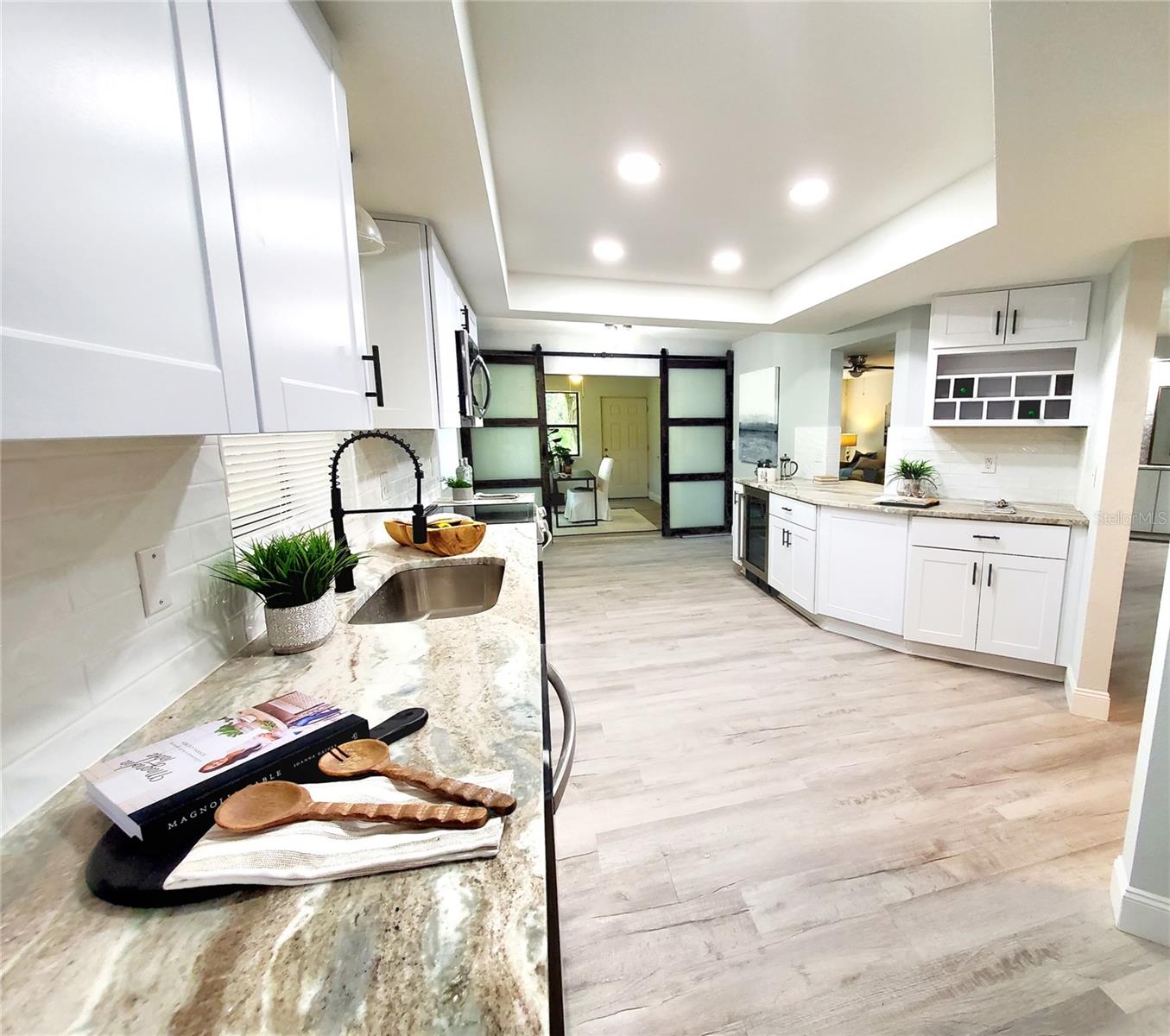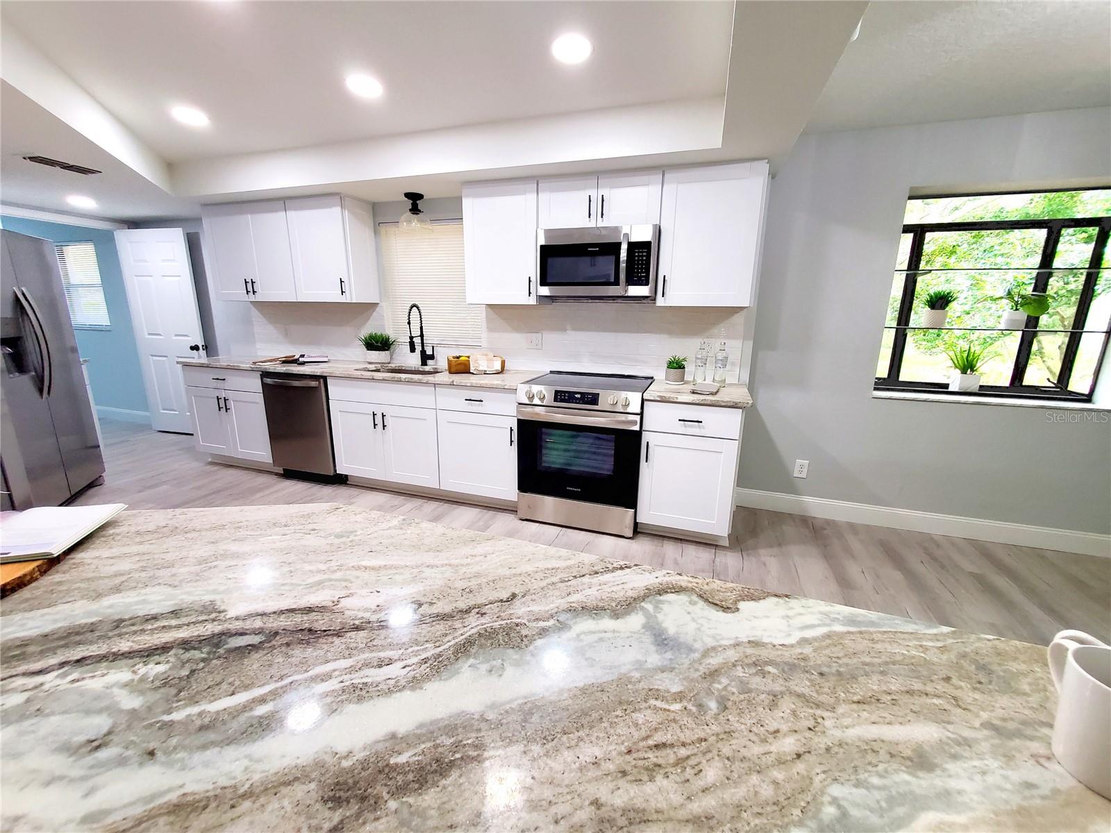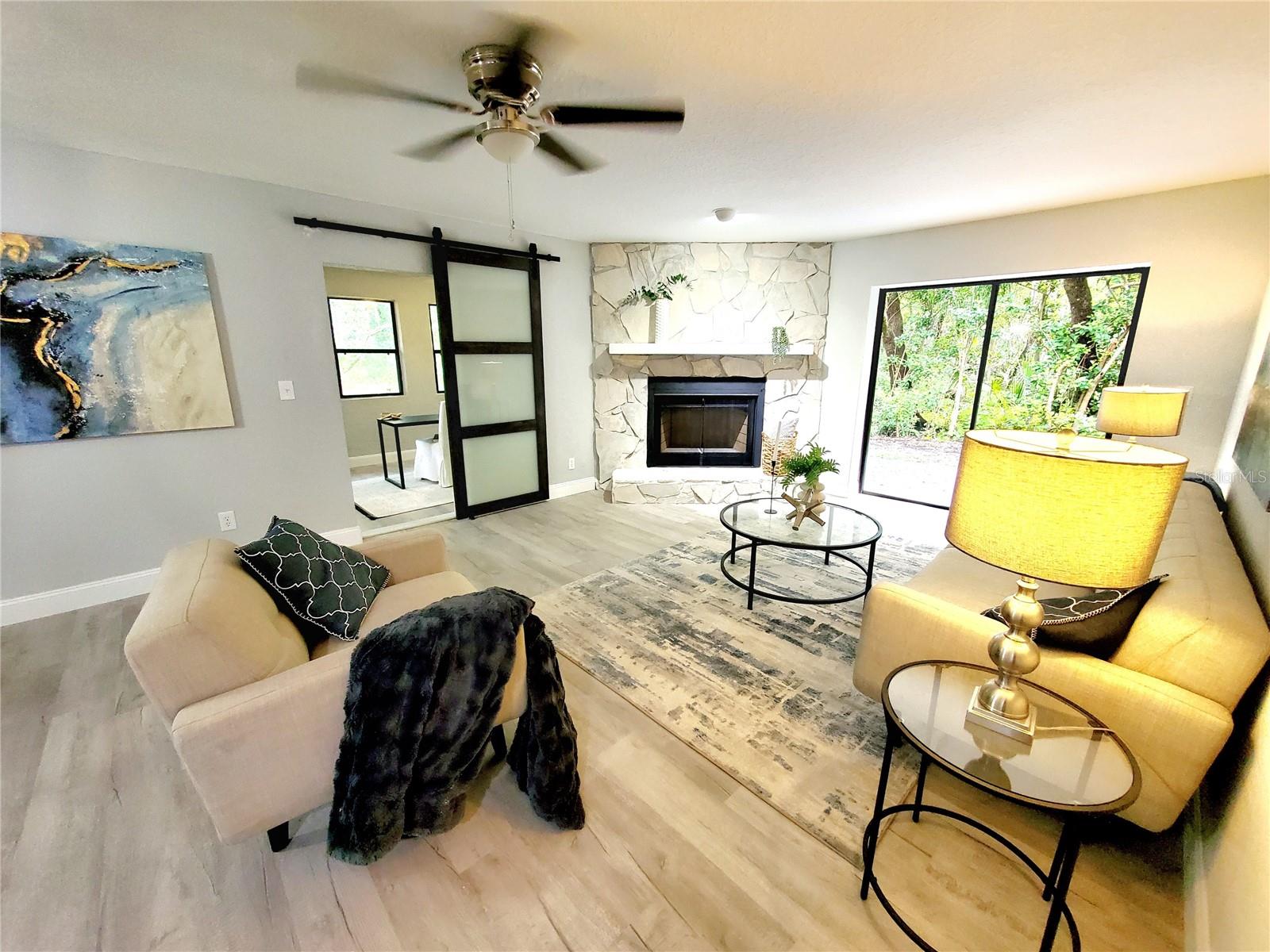 ** HEART OF EAST LAKE!! ** TOTALLY REMODELED and MAINTENANCE FREE! Take advantage of the best schools in the county! Golf, shopping, restaurants, etc all within a 5-min drive from your front door! Completely updated in 2025....2-bedroom PLUS office! Tucked away on a cul-de-sac in a small private neighborhood called The Meadows in Tarpon just off the East Lake corridor! 1/4-acre pool-sized lot that backs to Brooker Creek conservation! New St Augustine sod in front and side yard! Quarterly HOA covers all your yard maintenance....just sit back and enjoy the scenic views and pet a peacock! Exterior and interior have undergone a complete makeover! Exceptional curb appeal complete with a fresh new paint job and brand-new dimensional shingle roof! The long newly painted driveway offers plenty of parking for visiting family and friends! Enjoy cocktails by the fire pit out back or grill out on your newly paved patio! Incredibly private backyard with a jaw-dropping view! Step inside and it only gets better! The home has an open floor plan that has been professionally staged to proudly display its maximum potential! The entire 2,300 sf interior has been meticulously renovated floor to ceiling! New texture/paint, new flooring, new baseboards, new kitchen, new bathrooms, new doors, new lighting.....the list goes on! Exceptional house for entertaining! Not only does it have a large kitchen but also a dining area complete with a brand-new bar! 2 distinct living areas....living room up front with a family room in the back! Family room has sliders to the new patio and a corner fireplace! Frosted glass barn doors lead you to the office/3rd bedroom (no closet)! Work at home? Office has a private back entrance for clients and a wall full of stunning views to keep you motivated! The brand-new kitchen is enormous and is complete with all new cabinetry, granite counters, wine bar with mini fridge, and stainless-steel appliances! Have a hobby? The utility/laundry room is huge and would be great space for all your special projects! There are 2 bedroom suites with access to their own private bathrooms! Split-bedroom design perfect for an in-law or teen retreat! The community pool is just a short golf cart ride around the corner! Oversized 2-car garage affords extra room for storage! Sprinkler system (as is) and newer Carrier A/C (2019)! Commuters dream location....close to everything!