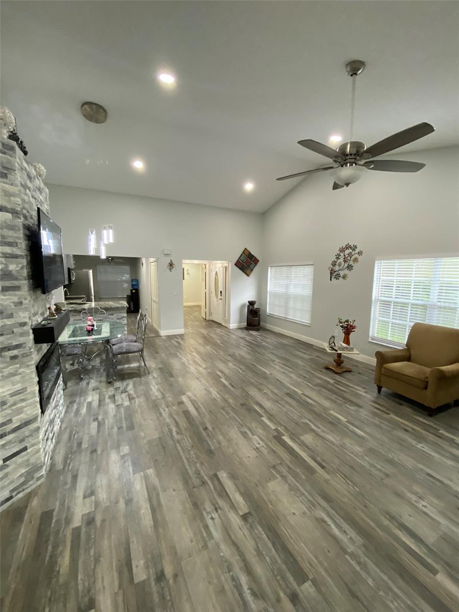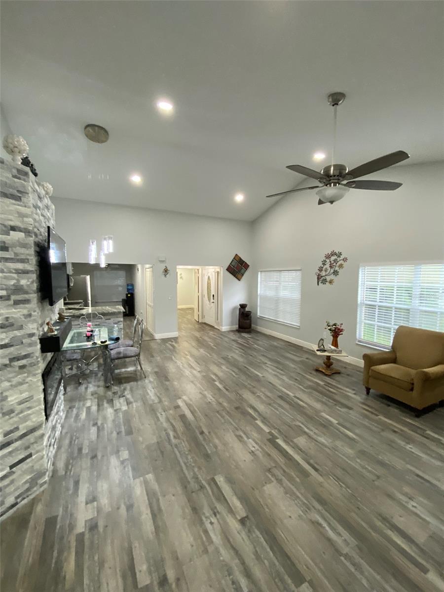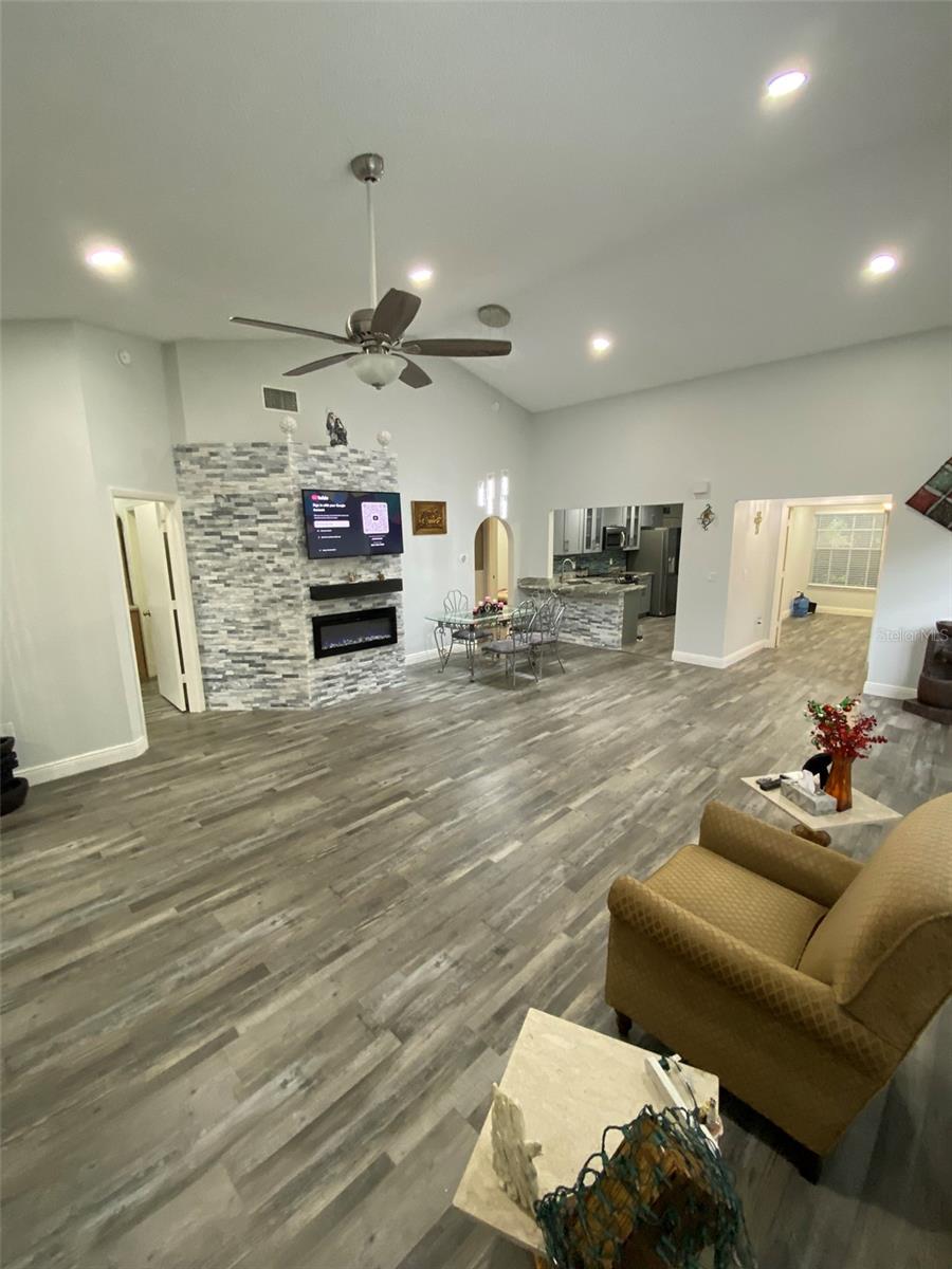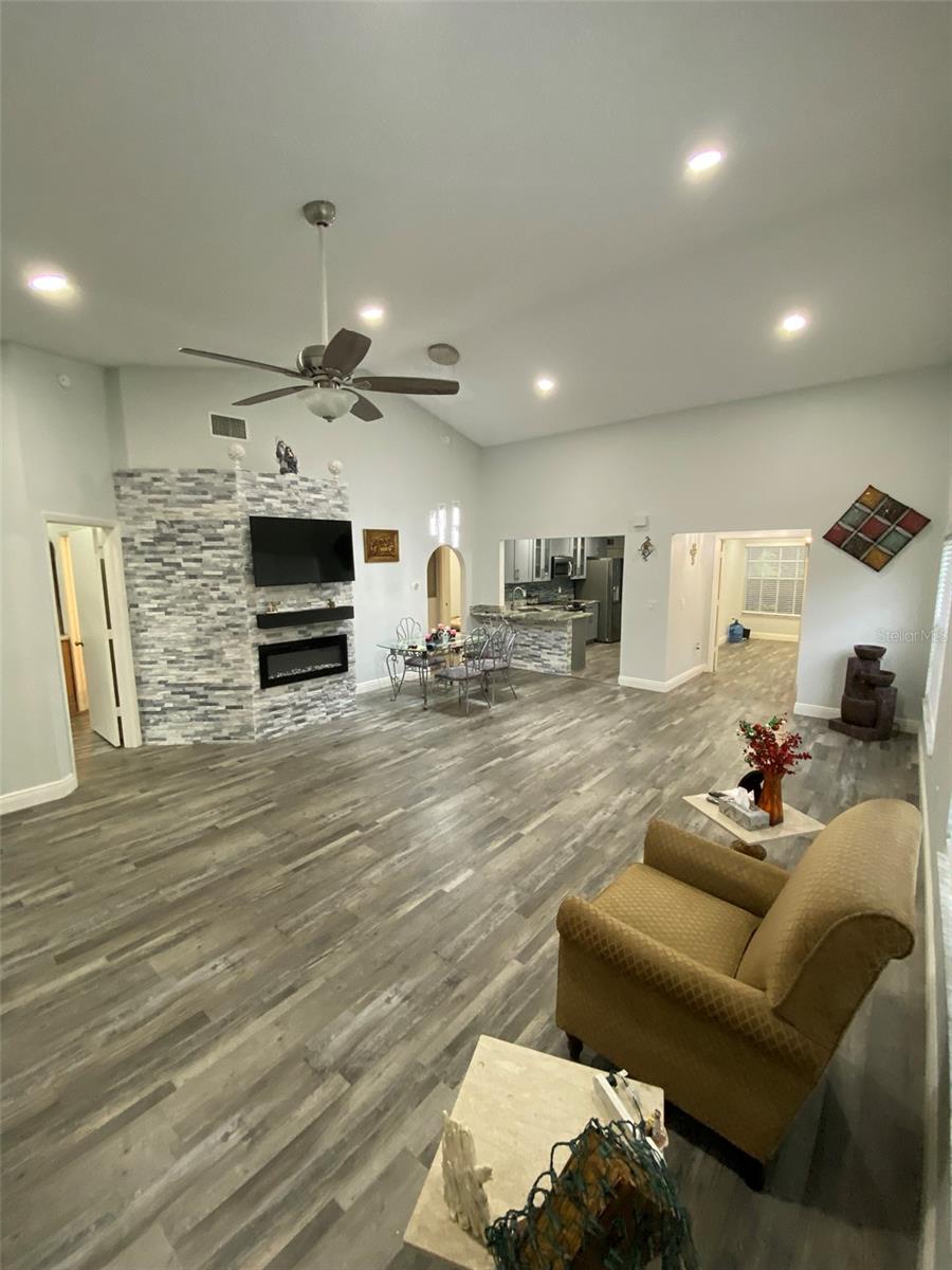Discover this beautifully renovated 3-bedroom, 2-bath villa in highly sought-after Palm Harbor! Featuring soaring ceilings, an elegant chandelier, and an open-concept layout, this home blends style and comfort. The chef’s kitchen shines with wood cabinetry, granite counters, stainless steel appliances, and a designer backsplash. Enjoy the warmth of a modern fireplace and the luxury of a spacious primary suite with a walk-in closet and a spa-inspired ensuite with dual sinks and a garden tub/shower combo. Two additional bedrooms offer flexibility, including one with double-entry doors—perfect for guests or a home office. Step outside to a screened lanai, storage room, BBQ area, and a large backyard—ideal for entertaining or relaxing. ROOF 2019, AC 2016 WELL MAINTAINED AND RELIABLE. HOA includes cable, internet, water, sewer, trash, lawn care, pool, jacuzzi, tennis courts, and more—providing unbeatable value! Meticulously upgraded and move-in ready, this gem won’t last long!