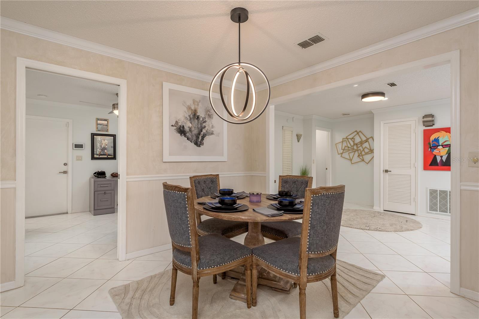 Welcome to your DREAM VILLA nestled in the sought after neighborhood of Meadows of Tarpon Woods in the Brooker Creek Preserve surrounded by the Tarpon Woods Golf Course - the perfect blend of comfort, style, and tranquility. There are TWO MASTER SUITES, 2 BATHS plus a PRIVATE OFFICE, this home delivers elegant living with peace of mind. Step inside to discover a spacious open floor plan with high ceilings, featuring newer wood laminate and tile flooring throughout and a new DRY BAR for entertaining. The REMODELED KITCHEN is a chef's delight, showcasing sleek QUARTZ COUNTERTOPS, STAINLESS STEEL appliances, modern cabinetry and a generous pantry. SUITE 1 features a spa-like ENSUITE BATHROOM and ample walk-in closet. Both bathrooms have been enhanced with QUARTZ COUNTERTOPS, NEW SINKS & NEW TOILETS. The laundry room includes lots of storage closets and a utility sink. Outdoor living and entertaining is paramount with a HUGE SCREENED PORCH, screened courtyard/patio and additional rear patio with views of the golf course. Enjoy energy efficiency and safety with the NEW (2024) ELECTRICAL PANEL with circuit protection, recessed LED lighting and updated plumbing valves including a new main shut-off valve. Additional upgrades include a NEW A/C, WATER HEATER and WATER SOFTENER (2024). Exterior enhancements include refreshed landscaping and new outdoor lighting. This is true maintenance free living with low HOA fees, a sparkling community pool nestled in a tranquil setting close to golf courses, restaurants, shopping and beaches. Don't miss this opportunity to own your slice of Florida paradise!