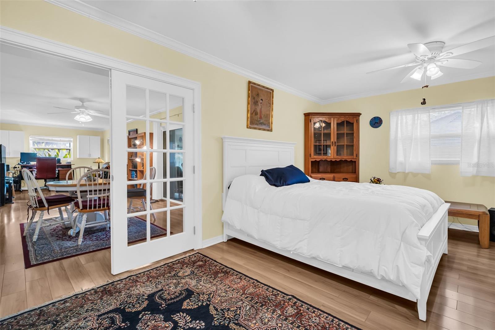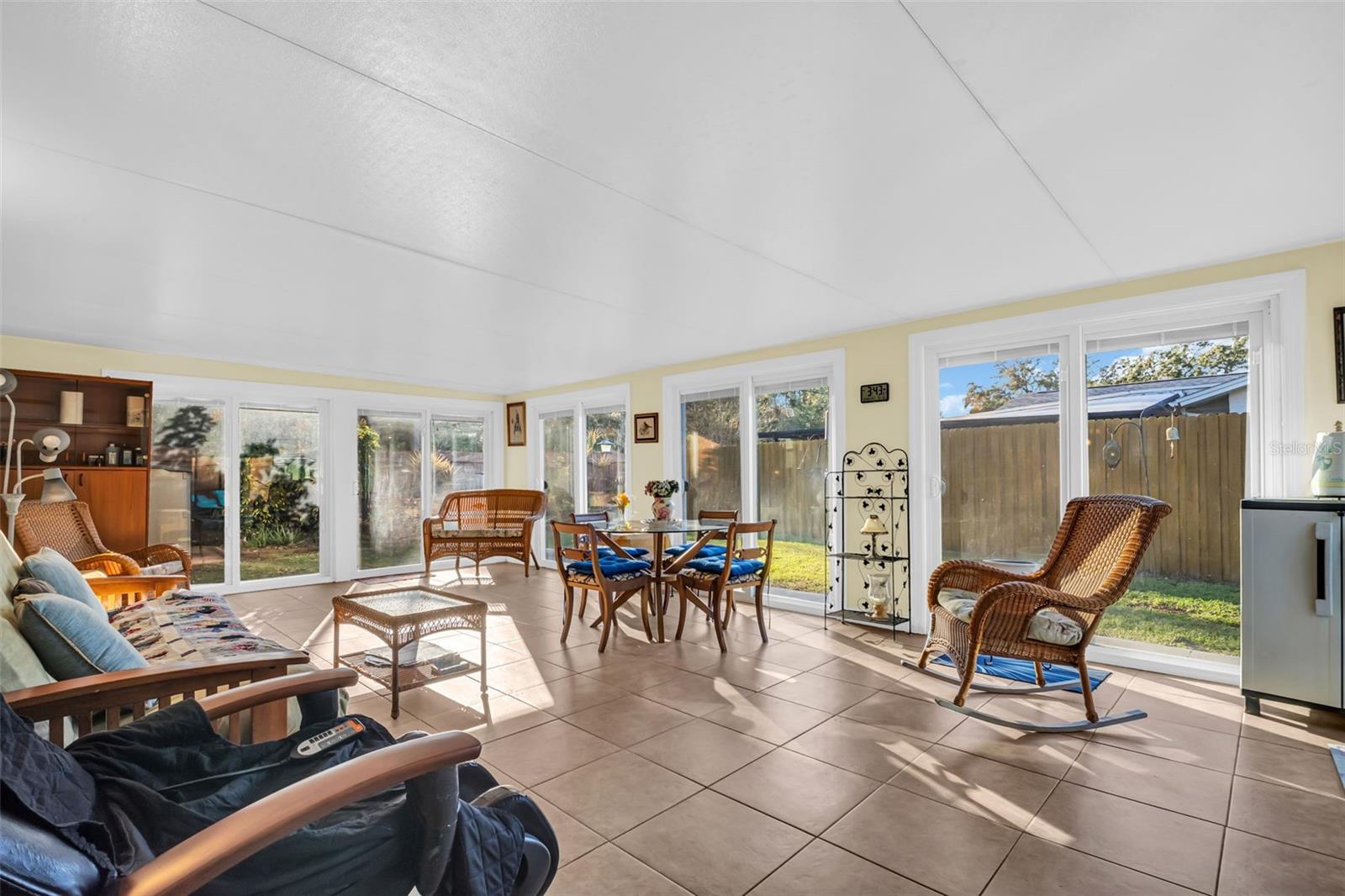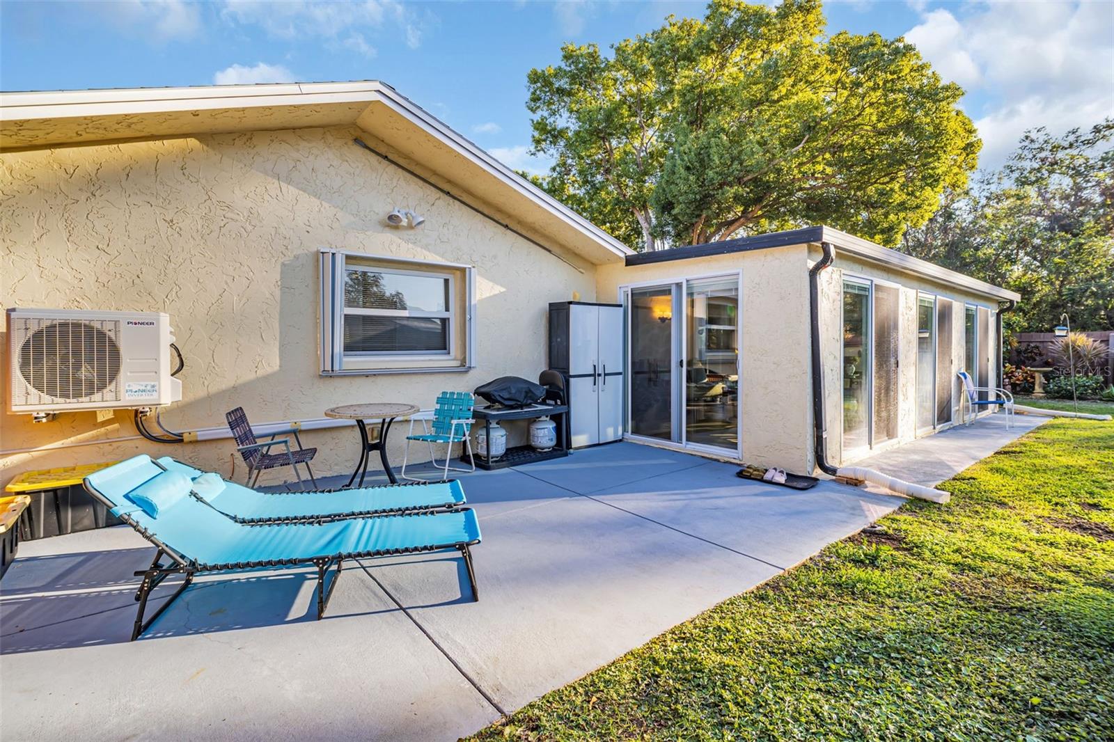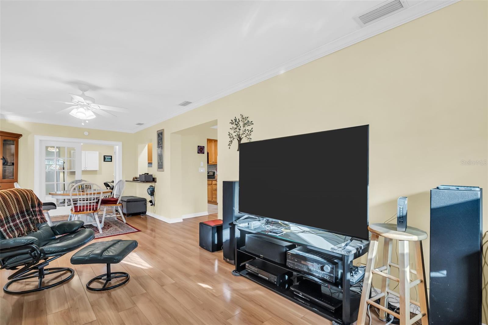 UNBELIEVABLE OPPORTUNITY!! Don't miss this beautifully updated 2-bedroom, 2-bathroom home with a 1-car garage, located in the HIGHLY DESIRED, Friendly, Social 55+ Community! HIGH AND DRY WITH NO PRIOR FLOODING EVER! Could EASILY BE CONVERTED TO 3 BEDROOMS IF DESIRED. This QUIET neighborhood offers a Clubhouse, a GORGEOUS, LARGE Pool, Pool Table, Library, Game Area, Friendly Neighbors and a variety of Social Events. With a LOW HOA fee of only $500 per year, this is an amazing place to call home. This charming CORNER LOT home is directly across from John Chestnut Park, a beautiful park situated on Lake Tarpon. Enjoy scenic trails, boardwalks, boat ramps, and abundant wildlife, including deer that often roam into the neighborhood. Inside, you'll find no carpet—just updated laminate and tile flooring throughout, along with crown molding for an elegant touch. The home also boasts a heated and cooled finished lanai with sliders featuring built-in blinds, providing extra living space. The roof was replaced in 2020, and the AC is 5 years old, ensuring comfort and efficiency. Plus, a tankless hot water heater (only 1 year old) and a new washing machine adds to the home's modern amenities. The house is equipped with hurricane shutters on all doors and windows for peace of mind. Home also includes a water filtration system. The fully fenced backyard offers privacy. There is a well that is used for sprinklers/irrigation. This 55+ community requires at least one resident to be 55 or older, making it the perfect place for those seeking a peaceful, in a friendly, well-maintained environment. Hurry, this won't last long!